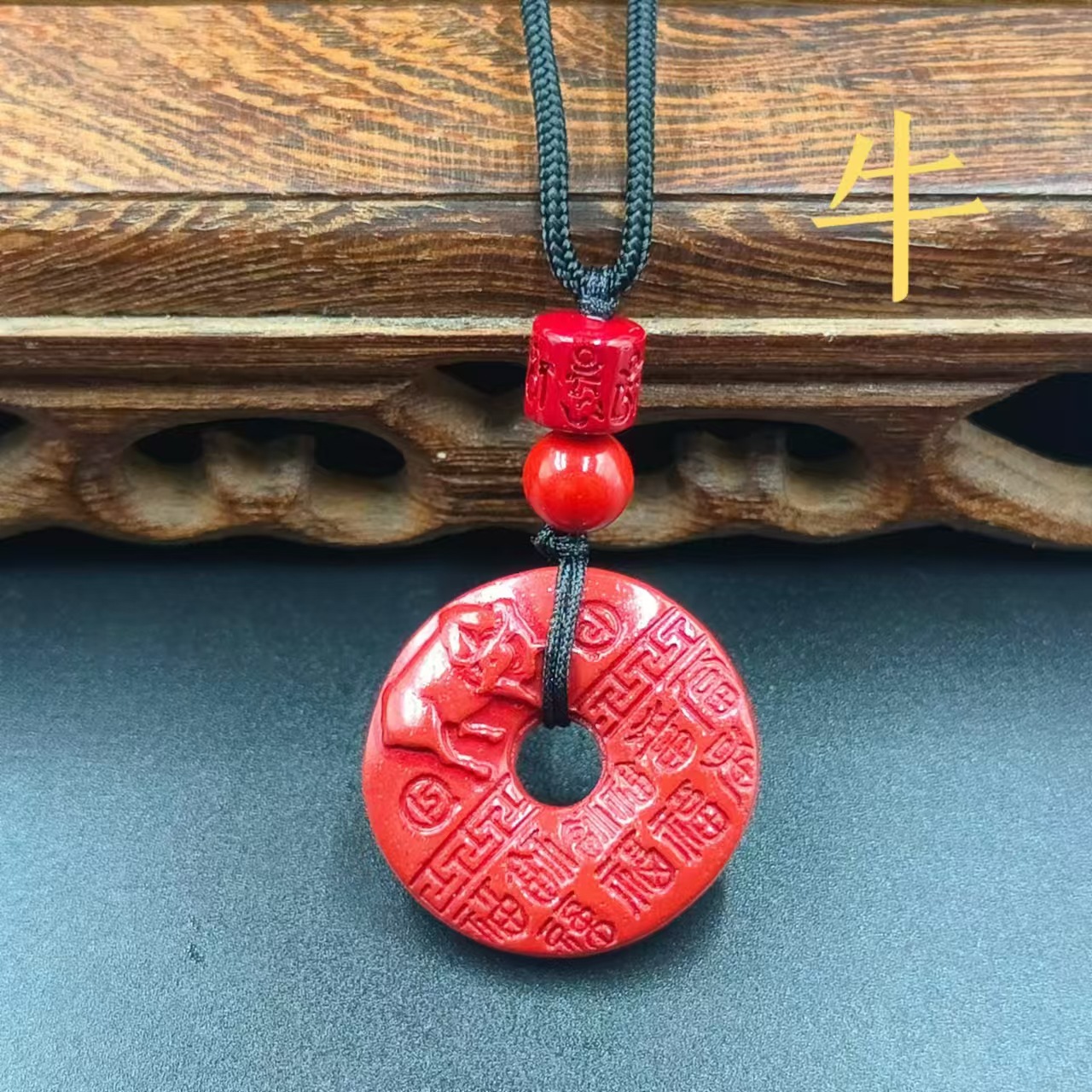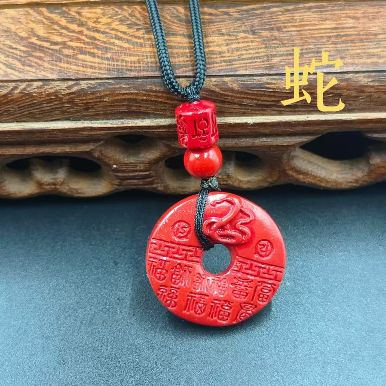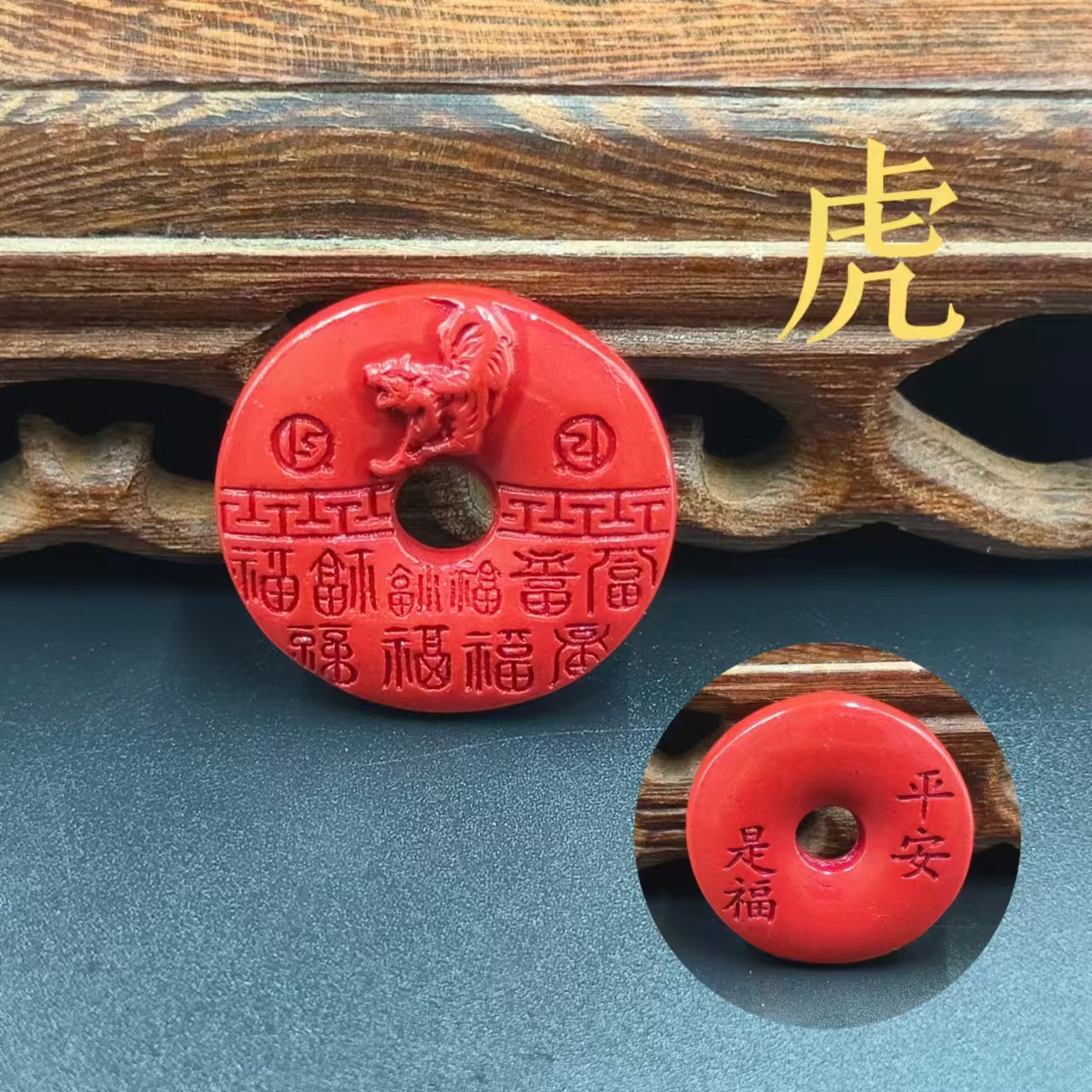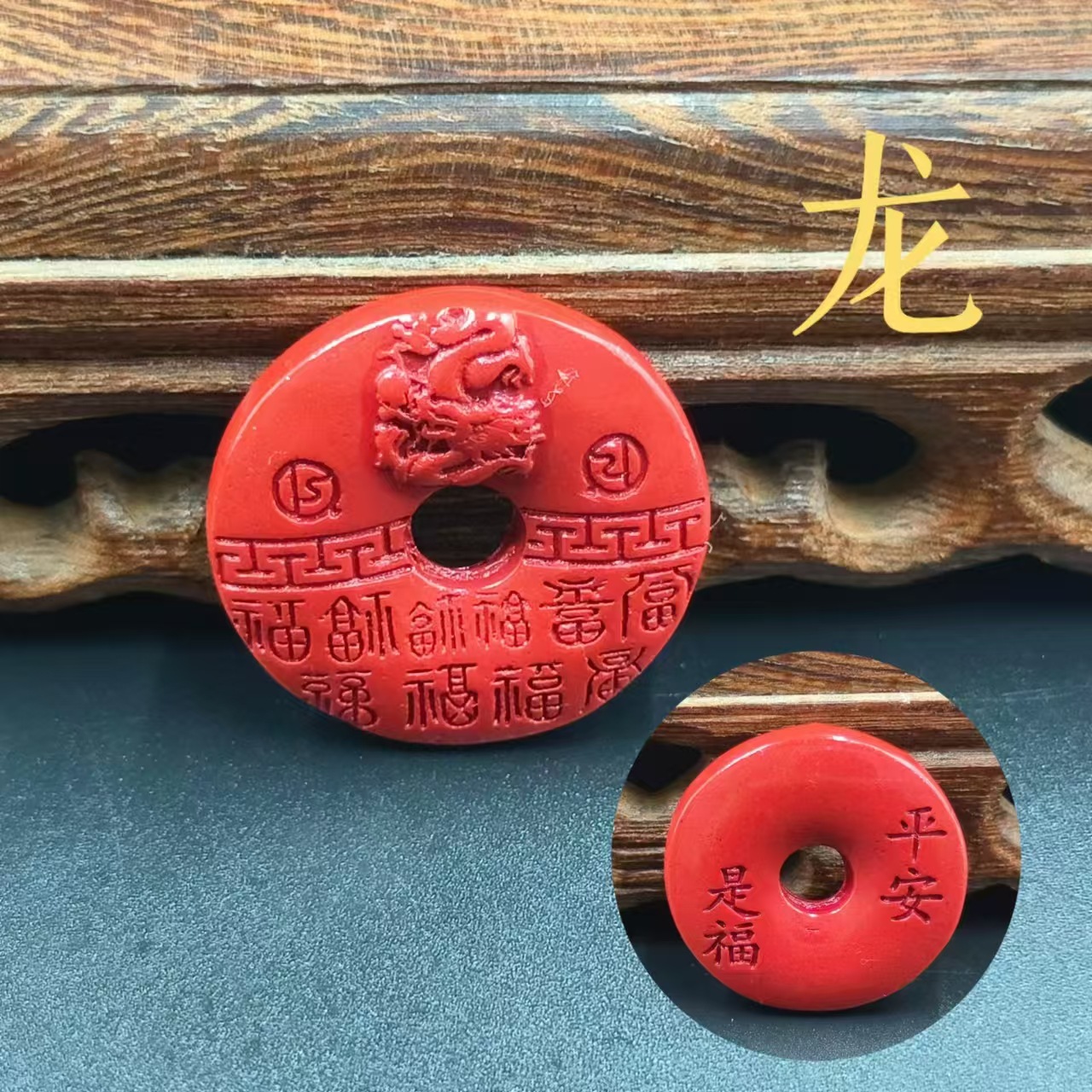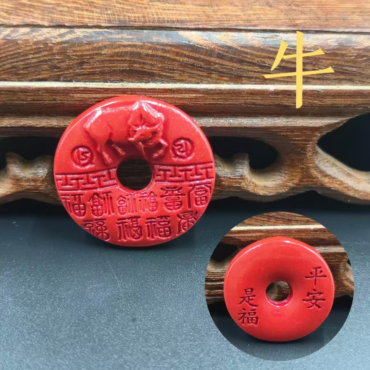 朱砂紫金砂十二生肖福字平安扣吊坠挂件本命年男女款项链直播批发