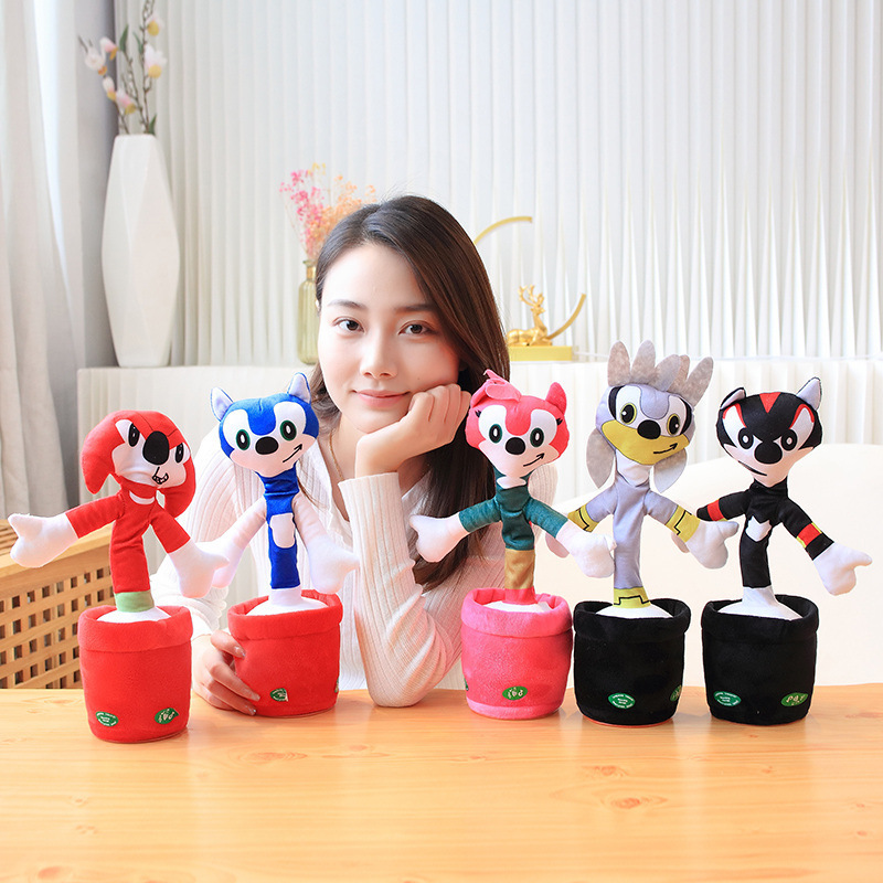 跨境爆款索尼克公仔可爱会唱歌跳舞毛绒玩具公仔玩偶女卡通多功能
