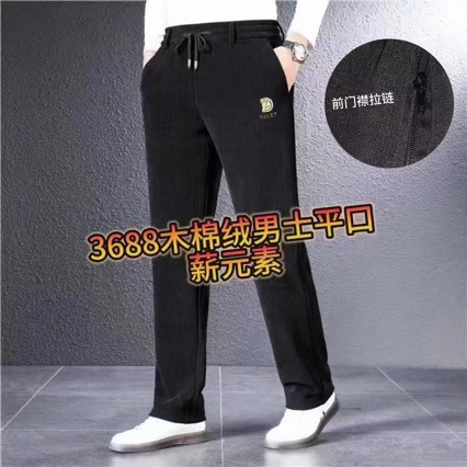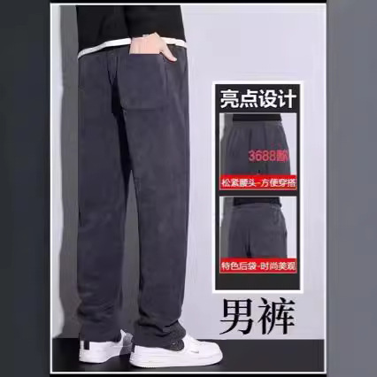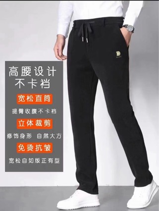 男士木棉绒卫裤秋季中年弹力休闲裤春秋款爸爸裤子男裤直筒裤