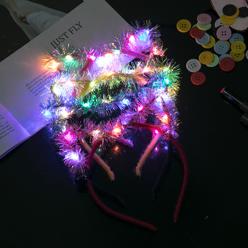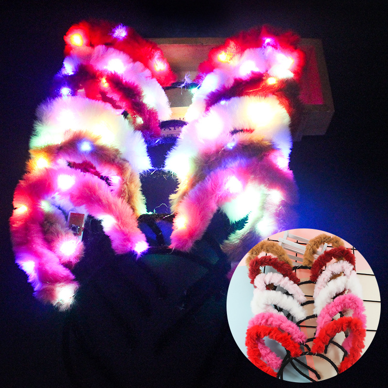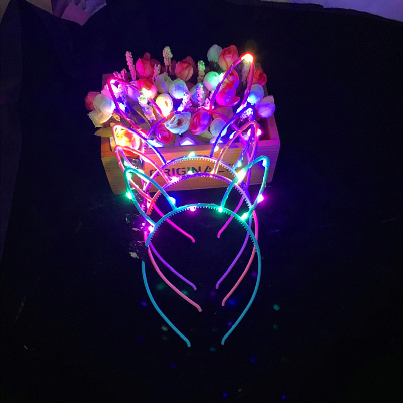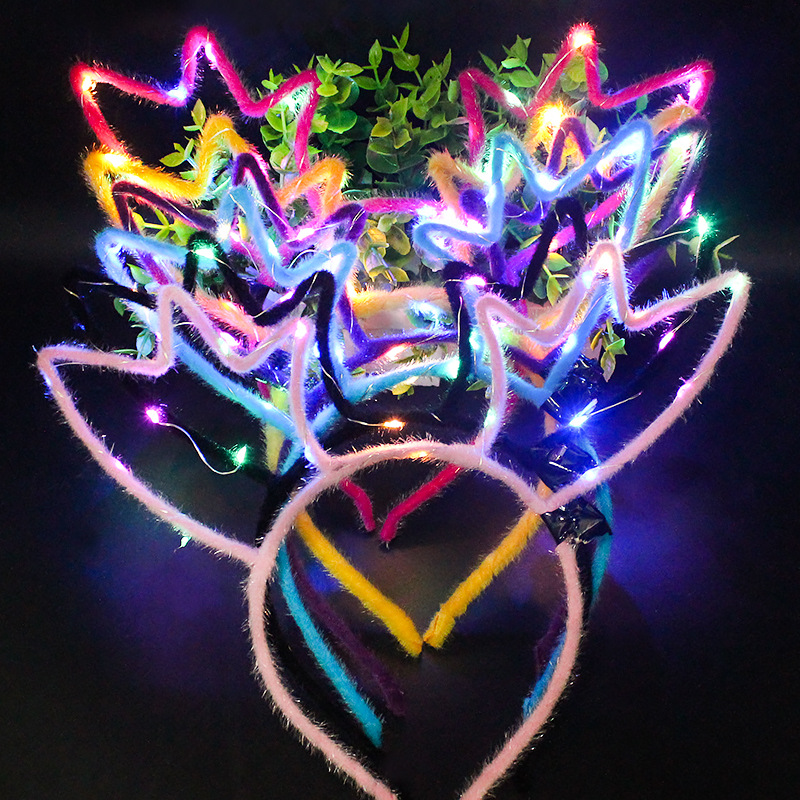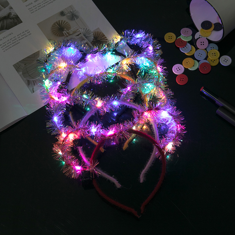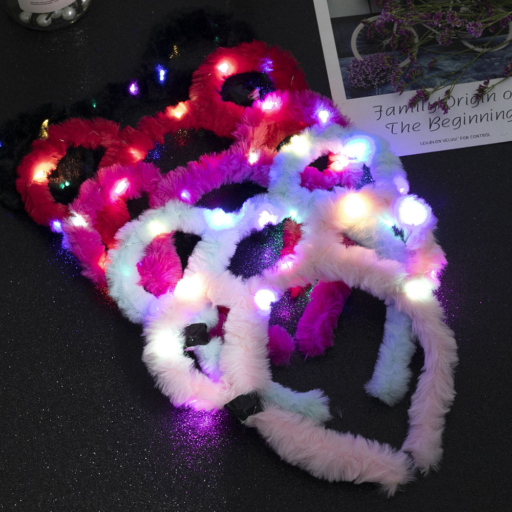 厂家批发抖音闪光熊猫耳朵LED灯发光兔耳朵发箍地摊儿童花环头饰
