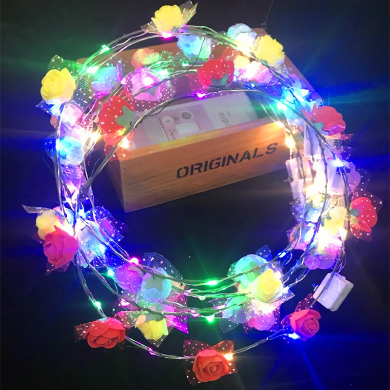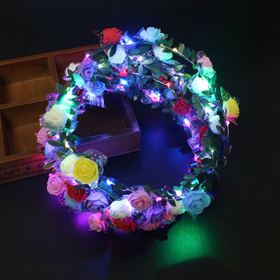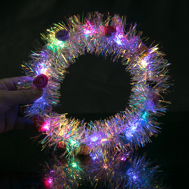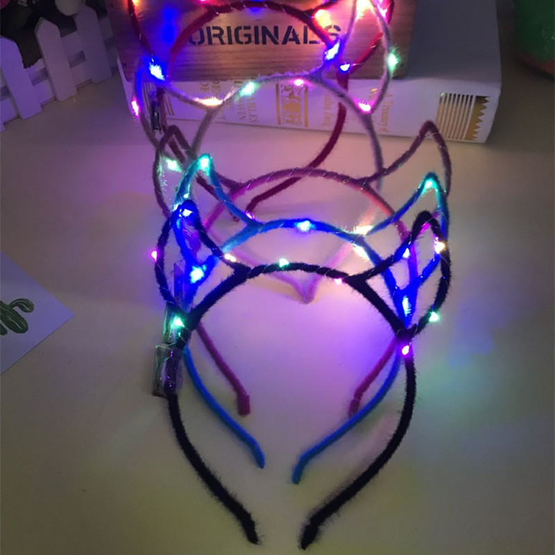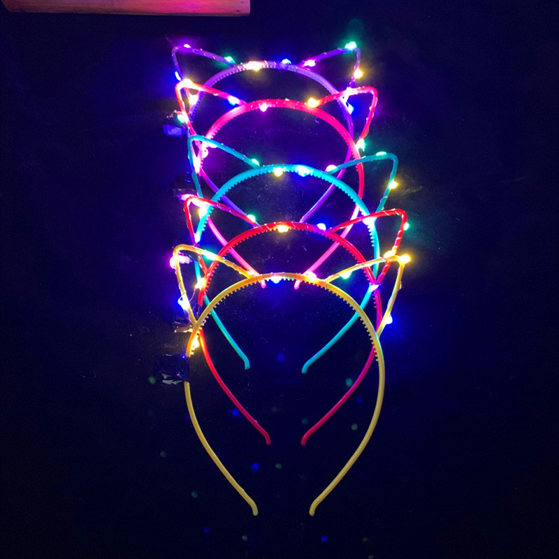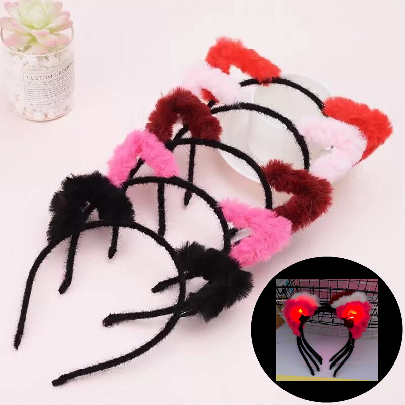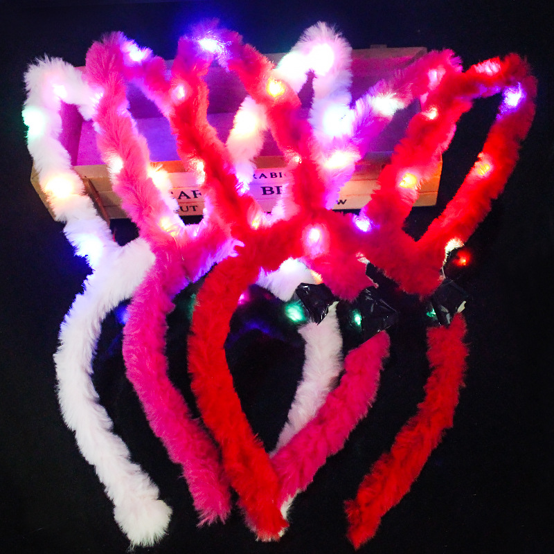 厂家批发抖音闪光熊猫耳朵LED灯发光兔耳朵发箍地摊儿童花环头饰