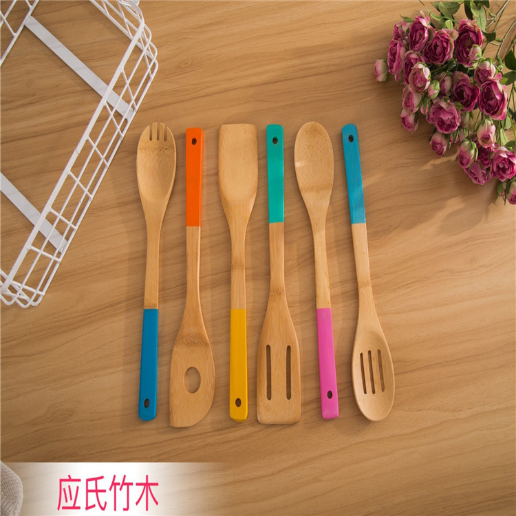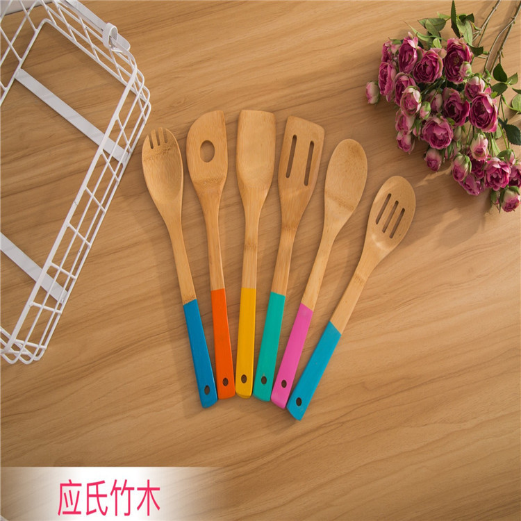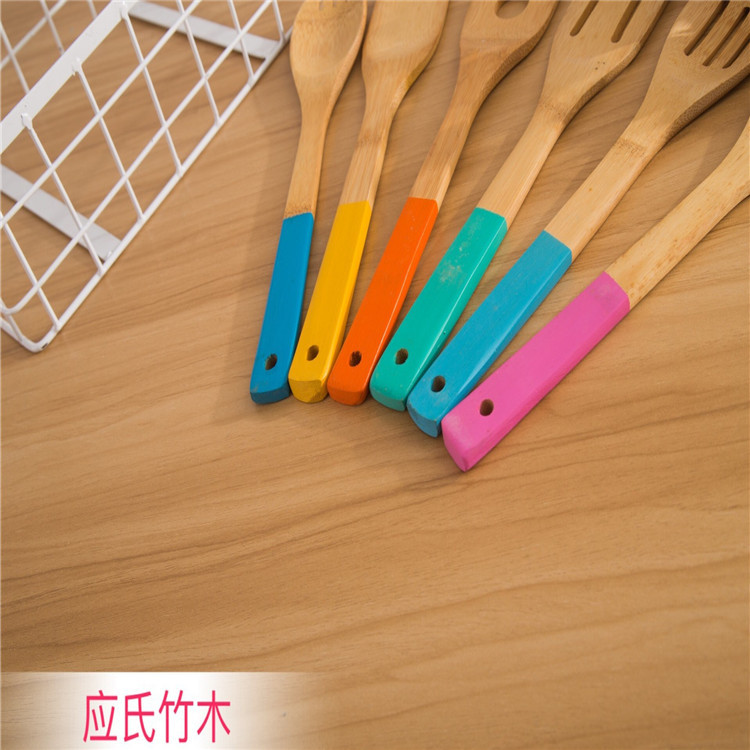 竹铲竹勺单支彩色手柄竹木铲个性化竹勺不粘锅铲