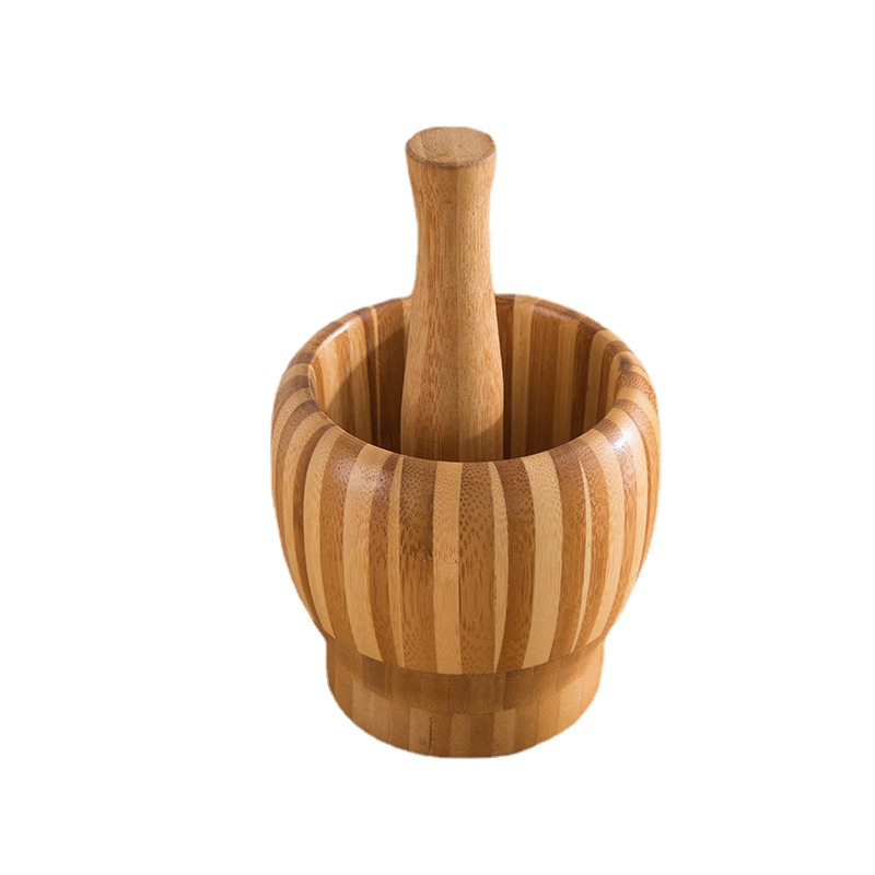 厨房条纹蒜钵竹质批发捣蒜捣药器蒜臼药罐研磨器蒜泥器泰味