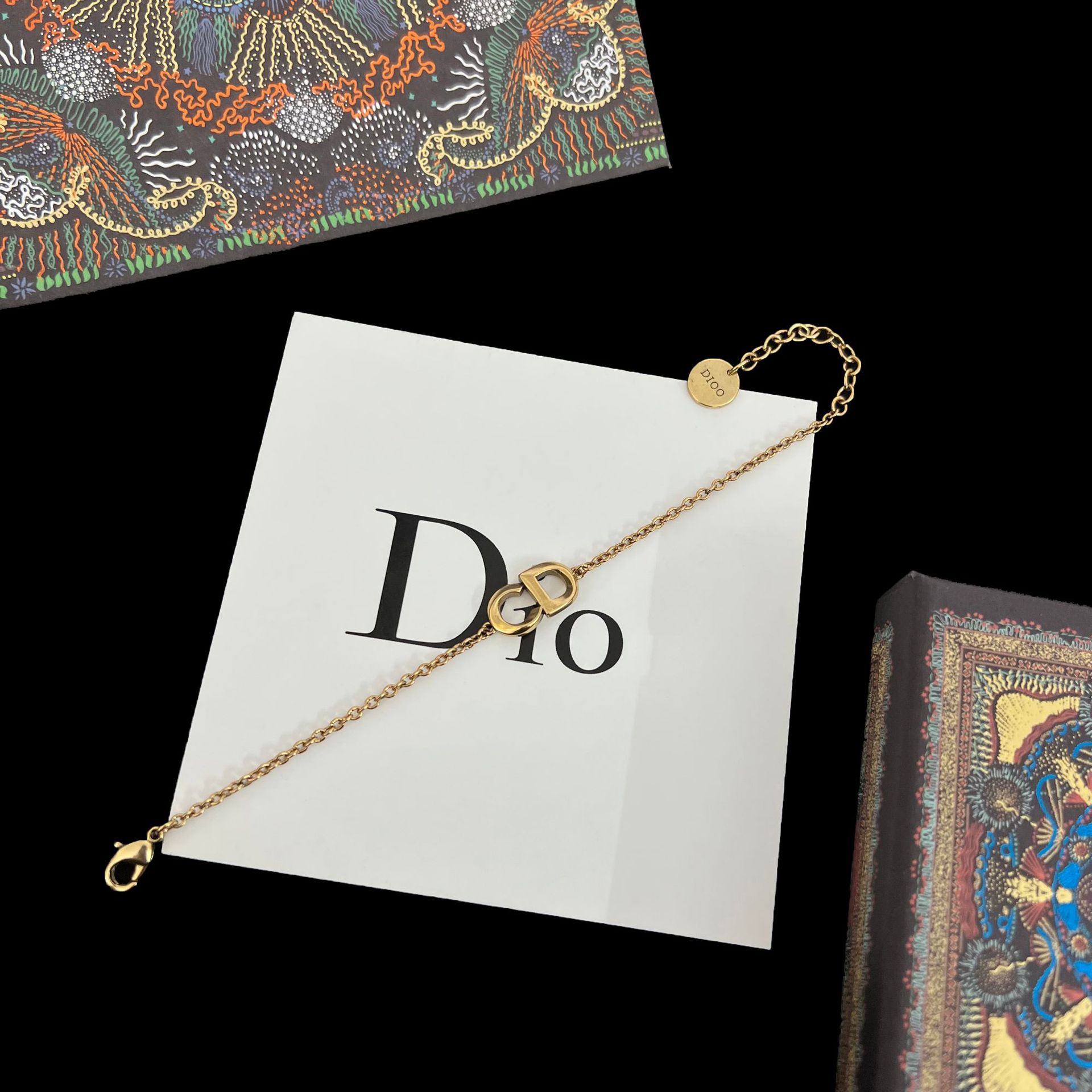 D家/迪家复古字母项链女 CD字母珍珠耳钉耳环黄铜材质字母手链潮