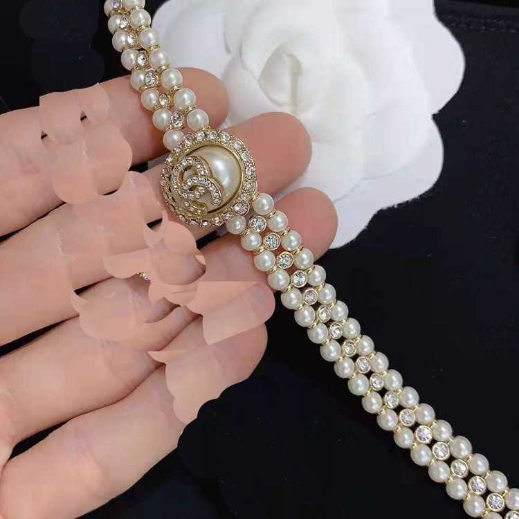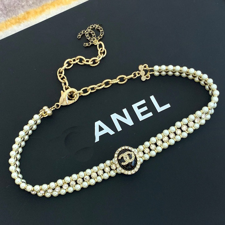 2020新款香家小香风双层珍珠水钻黑色白色锁骨项链女网红