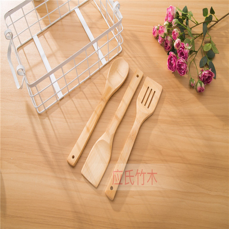 竹木铲勺三只装竹铲套装健康厨房用品批发吸卡包装竹勺锅铲炒菜铲