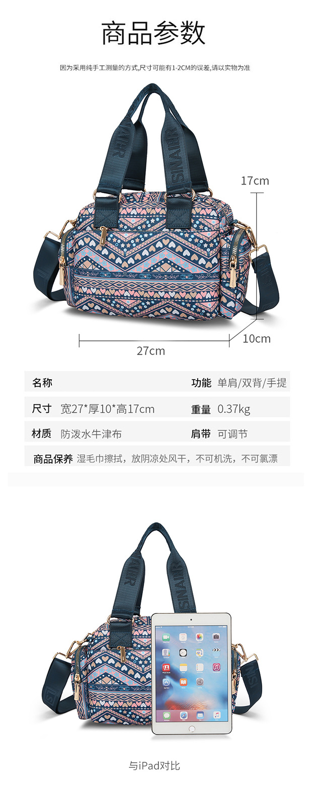 手提女包潮流尼龙女包牛津布斜跨包单肩帆布包大容量妈妈包包