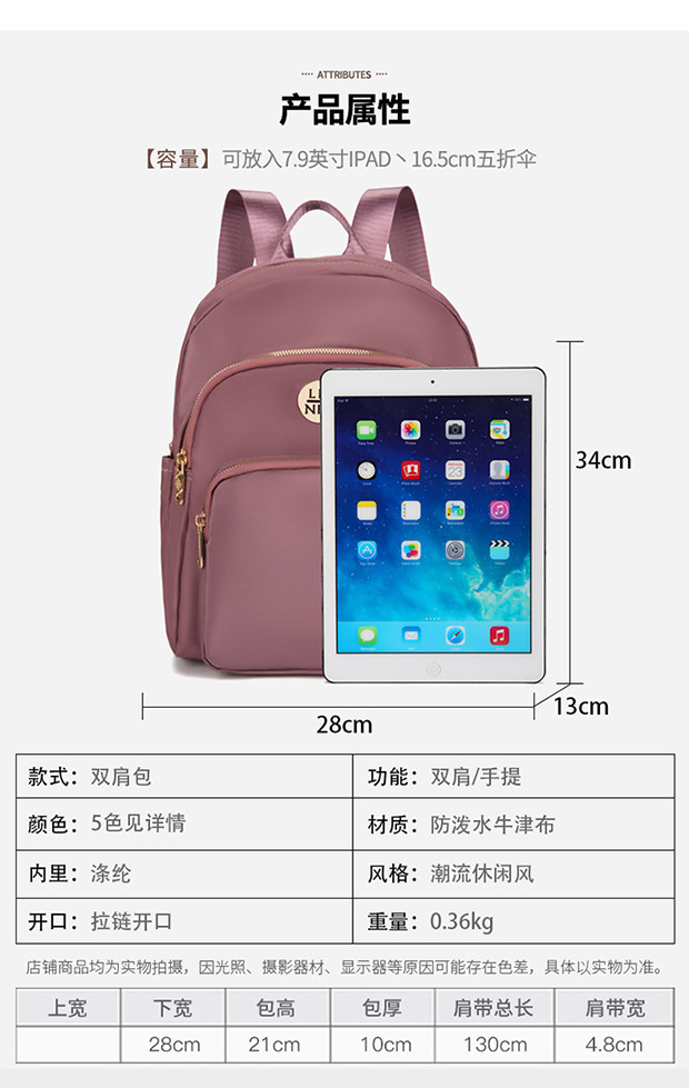 双肩背包潮流新款大容量纯色尼龙背包学生书包外贸一件批发
