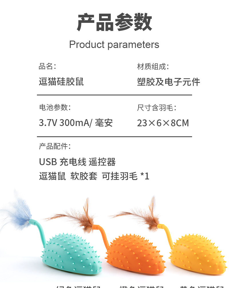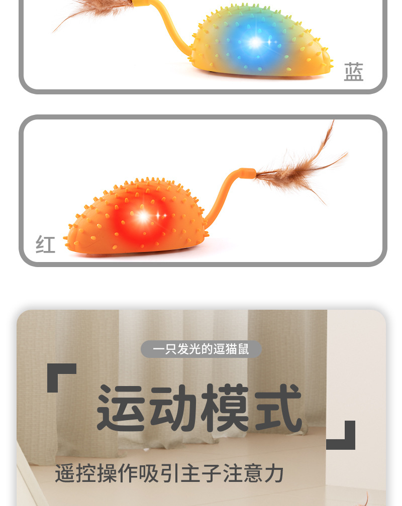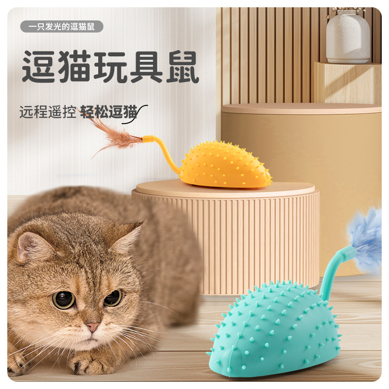 亚马逊爆款遥控智能充电硅胶老鼠猫咪追逐啃咬玩具灯光音效厂批发