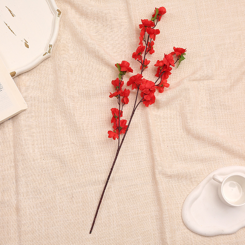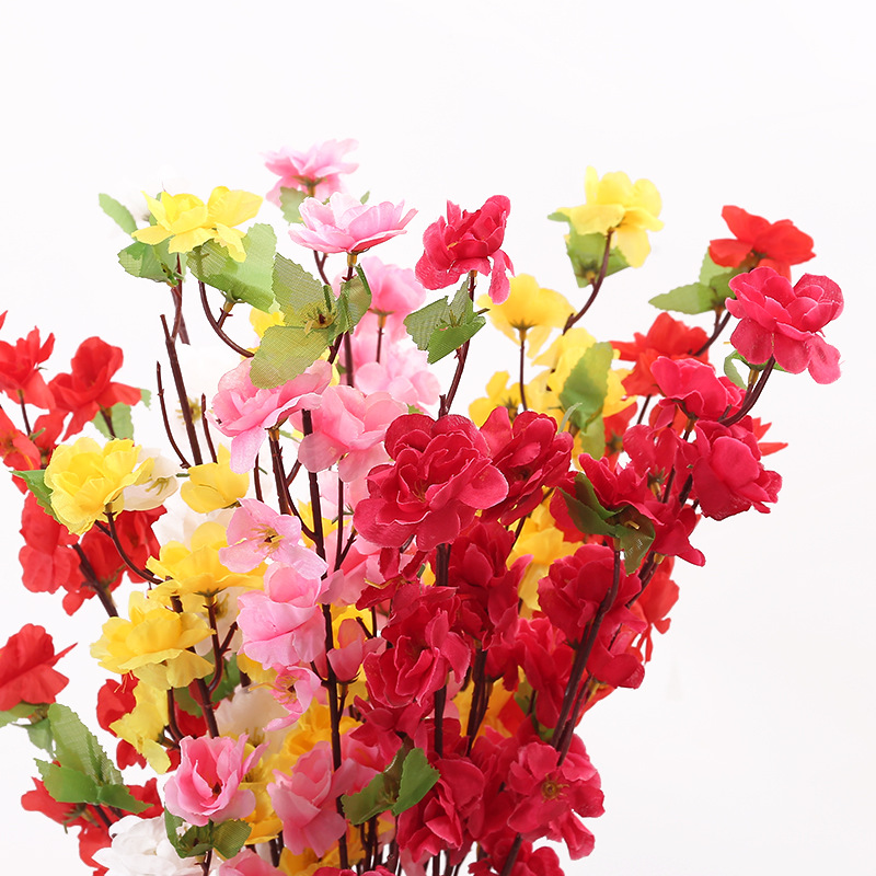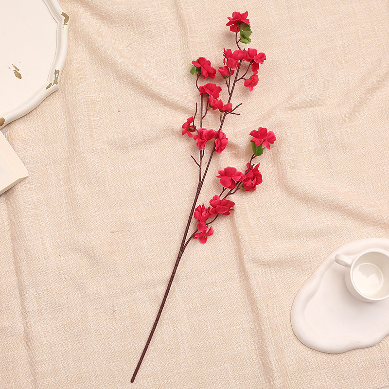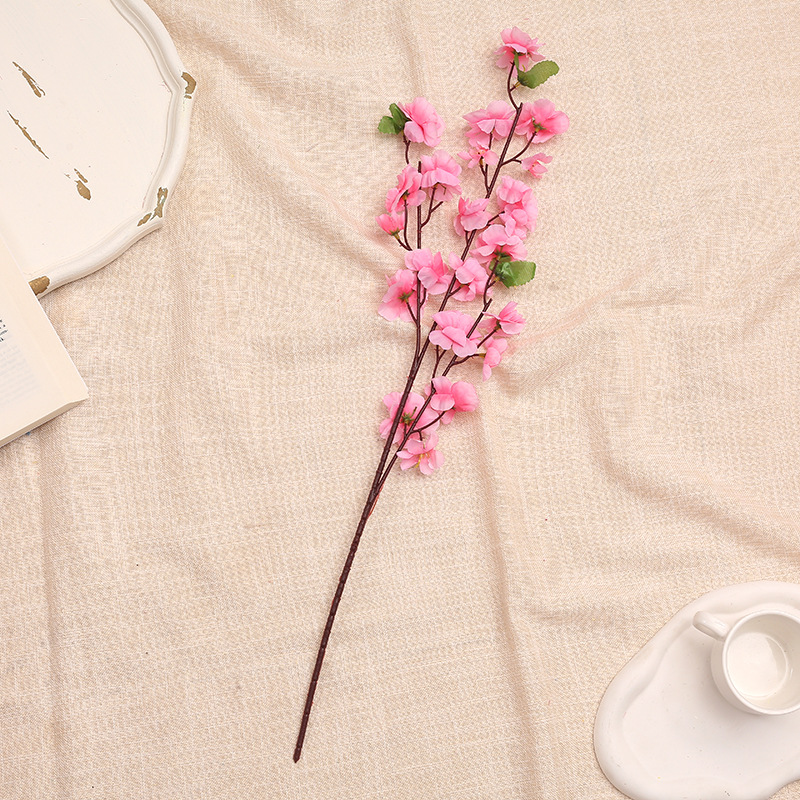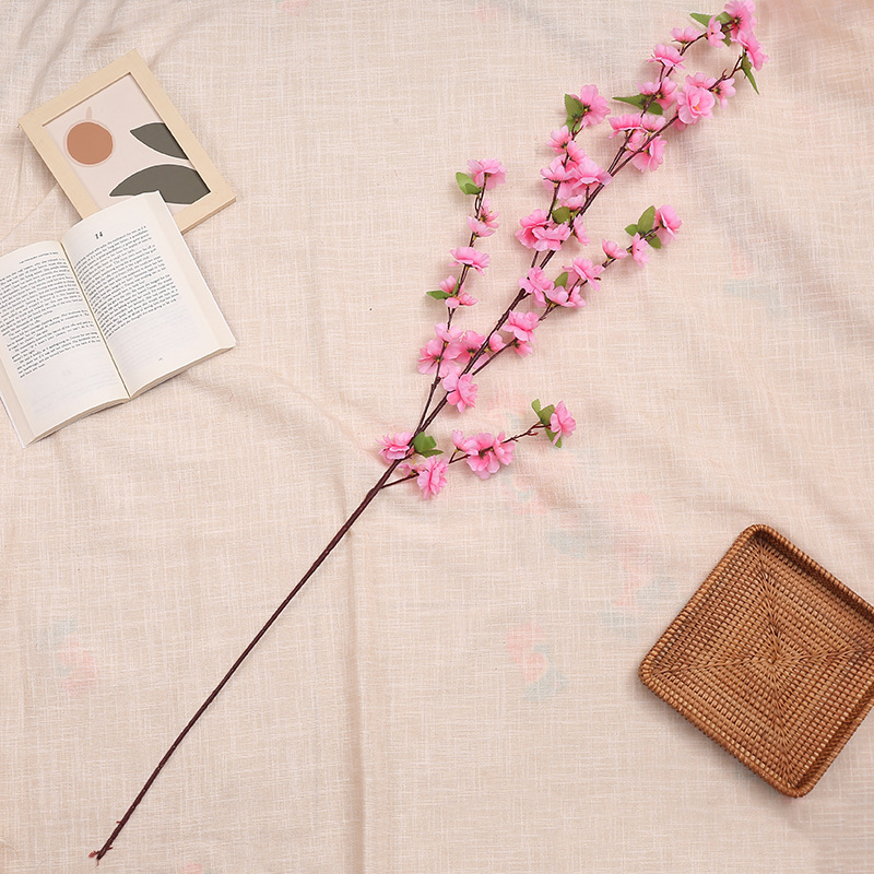 仿真桃花枝 假梅花树枝单支绢花干花婚庆装饰客厅落地塑料花批发