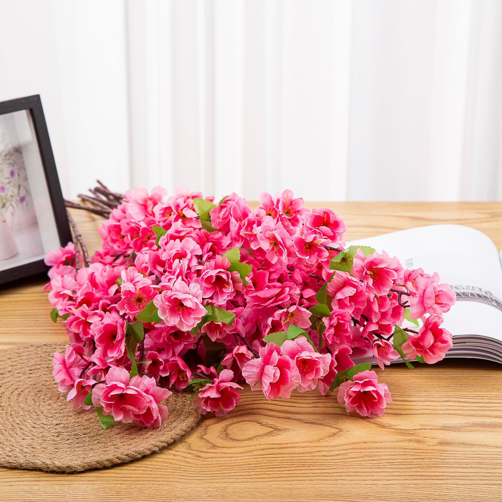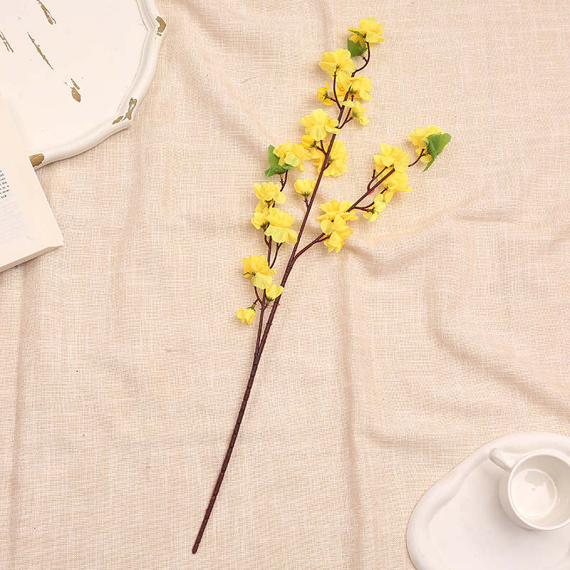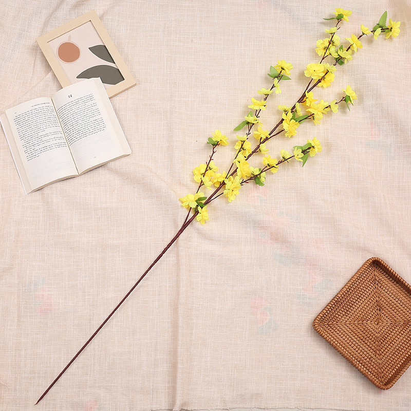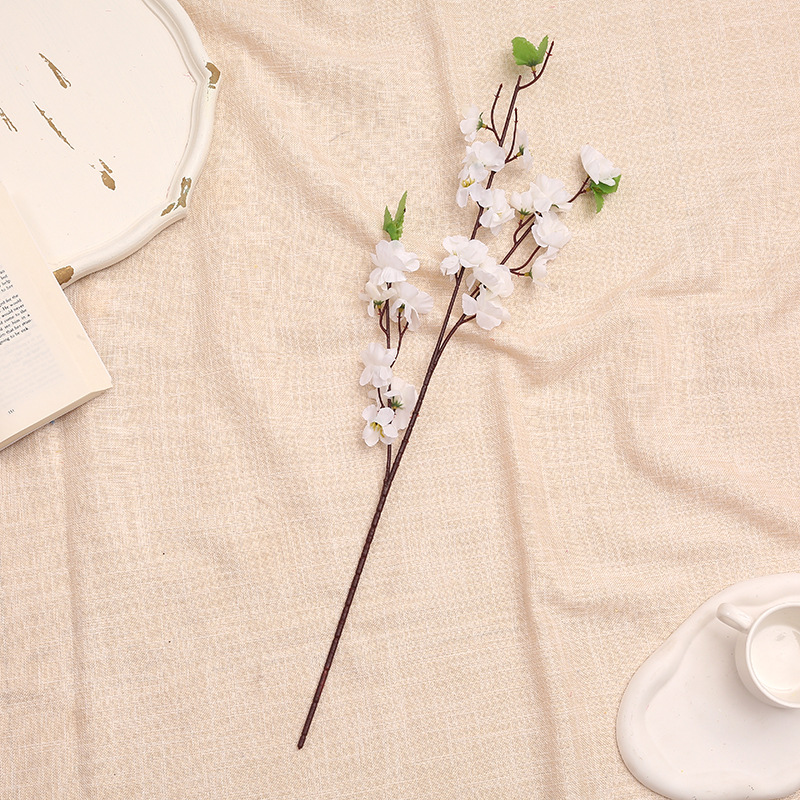 仿真桃花枝 假梅花树枝单支绢花干花婚庆装饰客厅落地塑料花批发