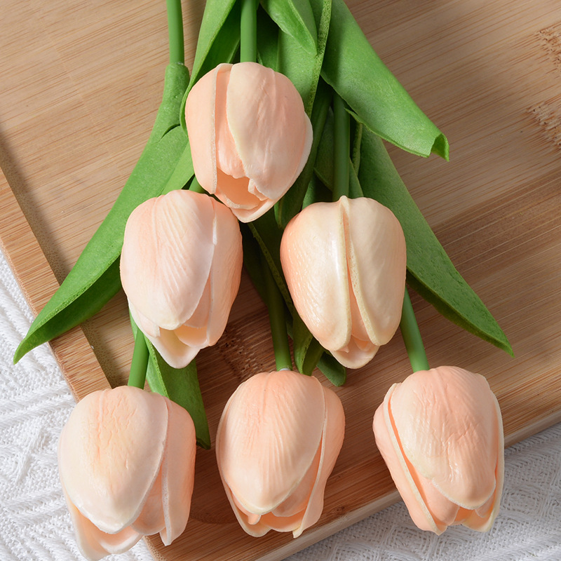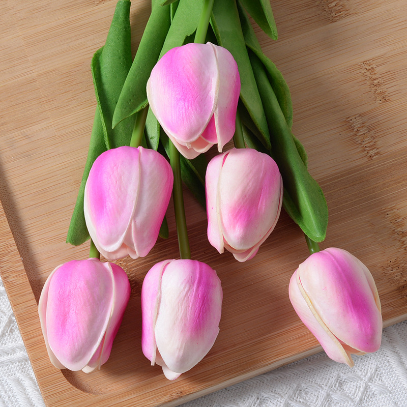 PU迷你郁金香仿真花假花 家居婚庆装饰跨境手感人造花塑料花批发