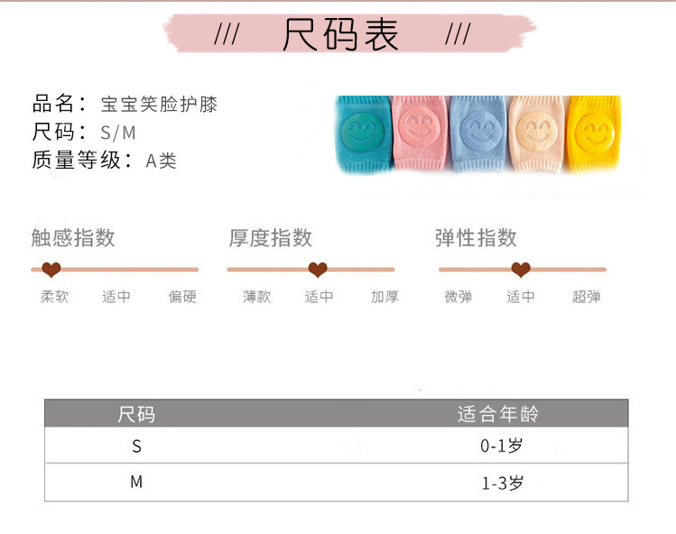 2024夏季毛圈宝宝袜套护肘学步爬行护膝婴儿童防滑a类笑脸护膝