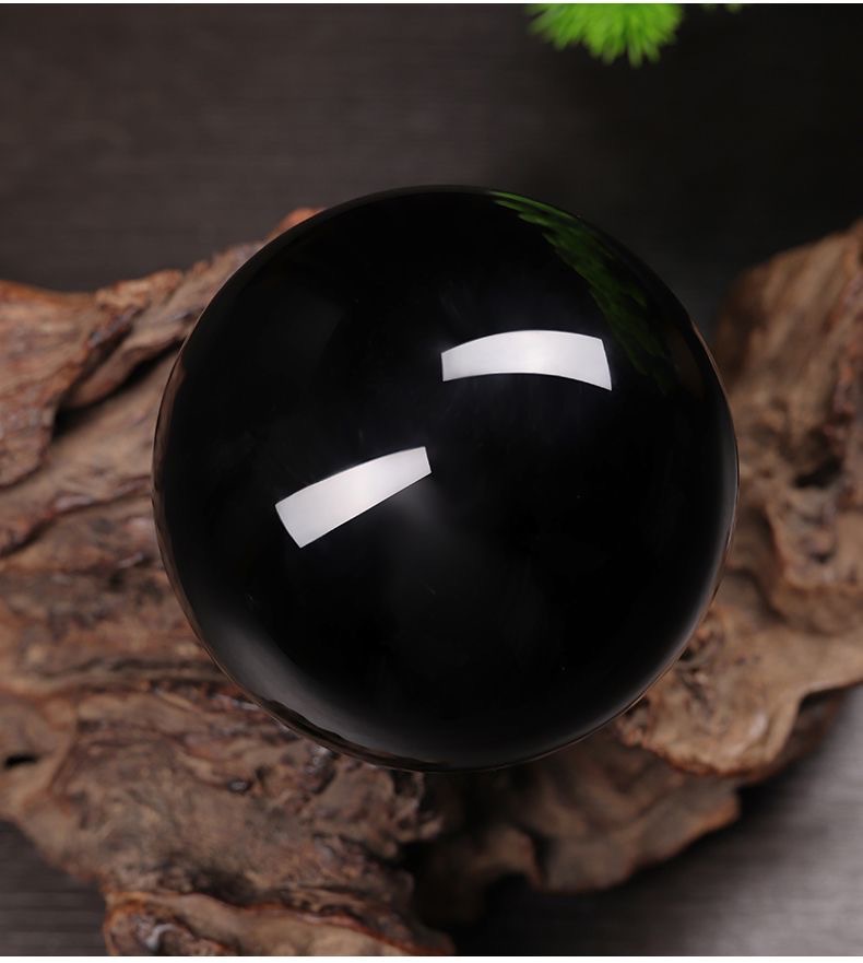 天然黑曜石水晶球摆件黑色黑曜石球黑石办公客厅送礼摆件