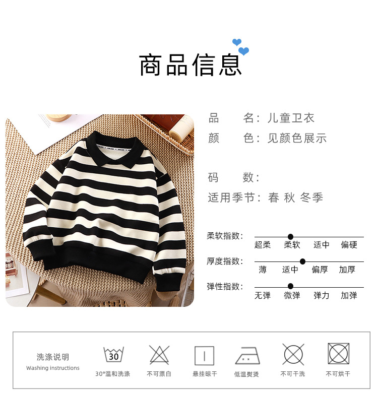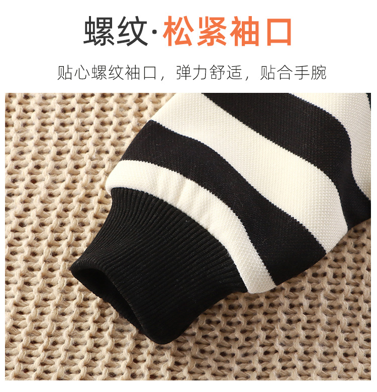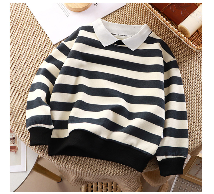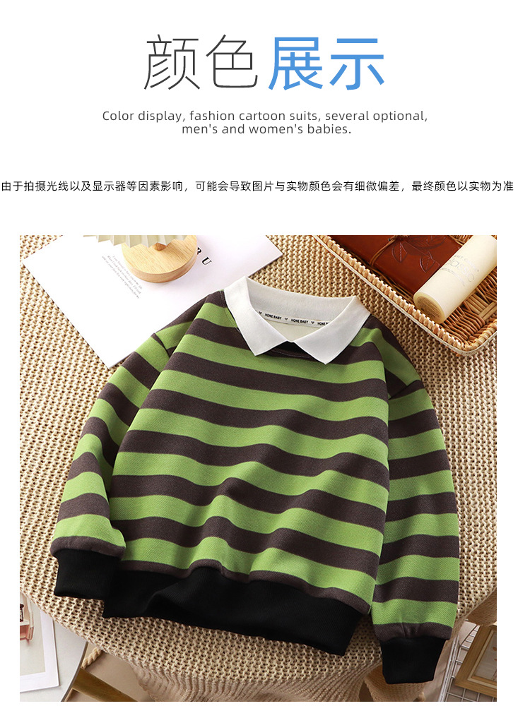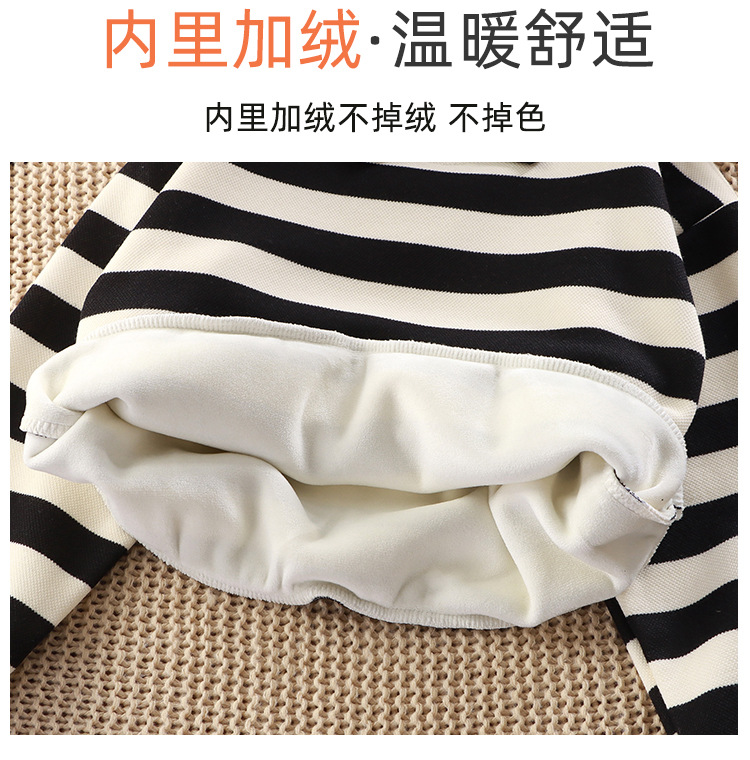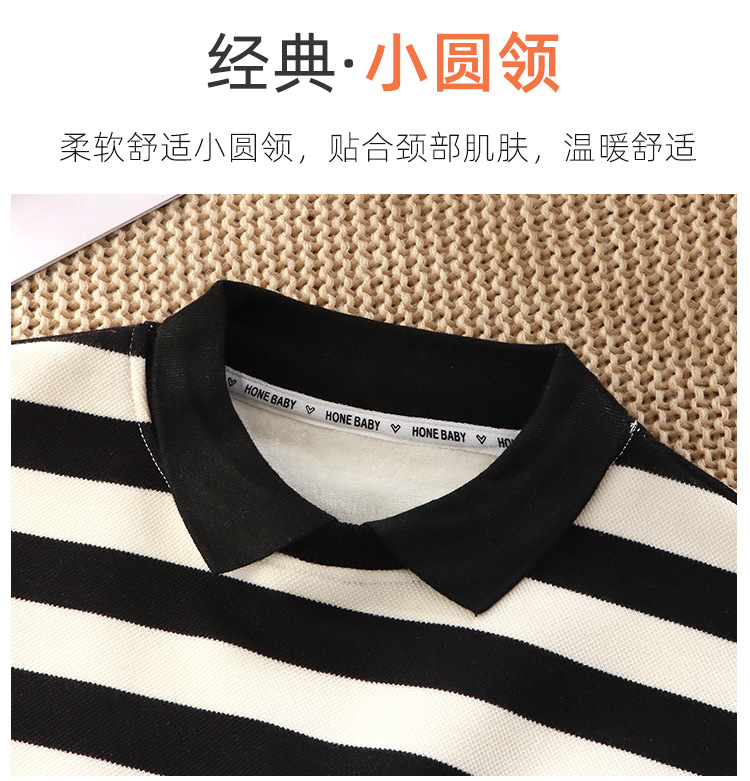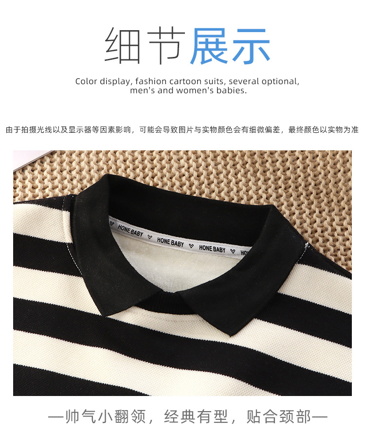 秋冬季新款儿童加绒卫衣男童翻领polo衫条纹卫衣时尚保暖童装上衣