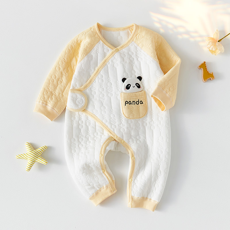 新生婴儿连体衣纯棉秋冬夹棉保暖和尚服初生无骨睡衣宝宝哈衣春装