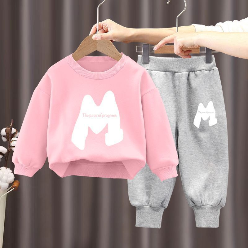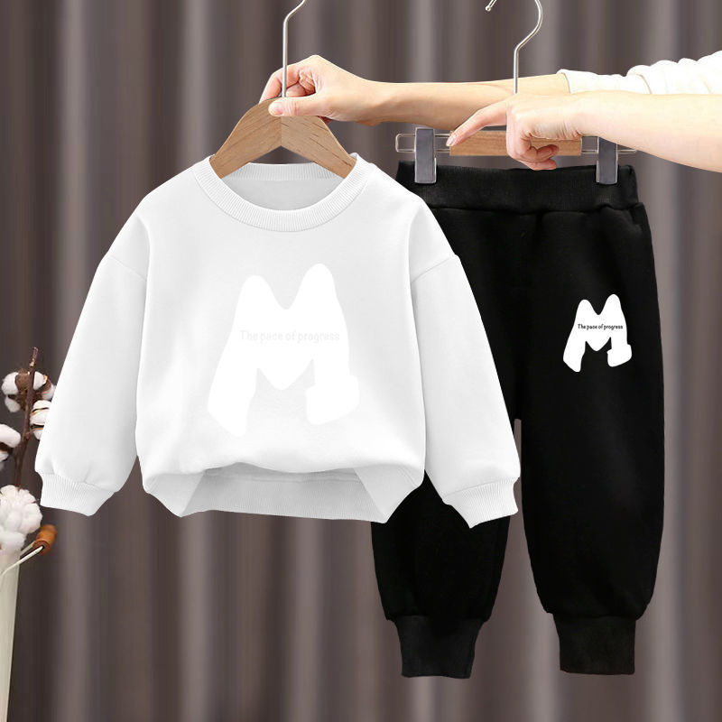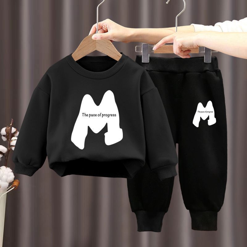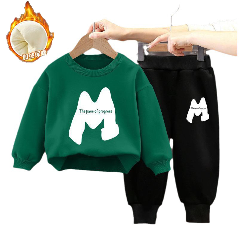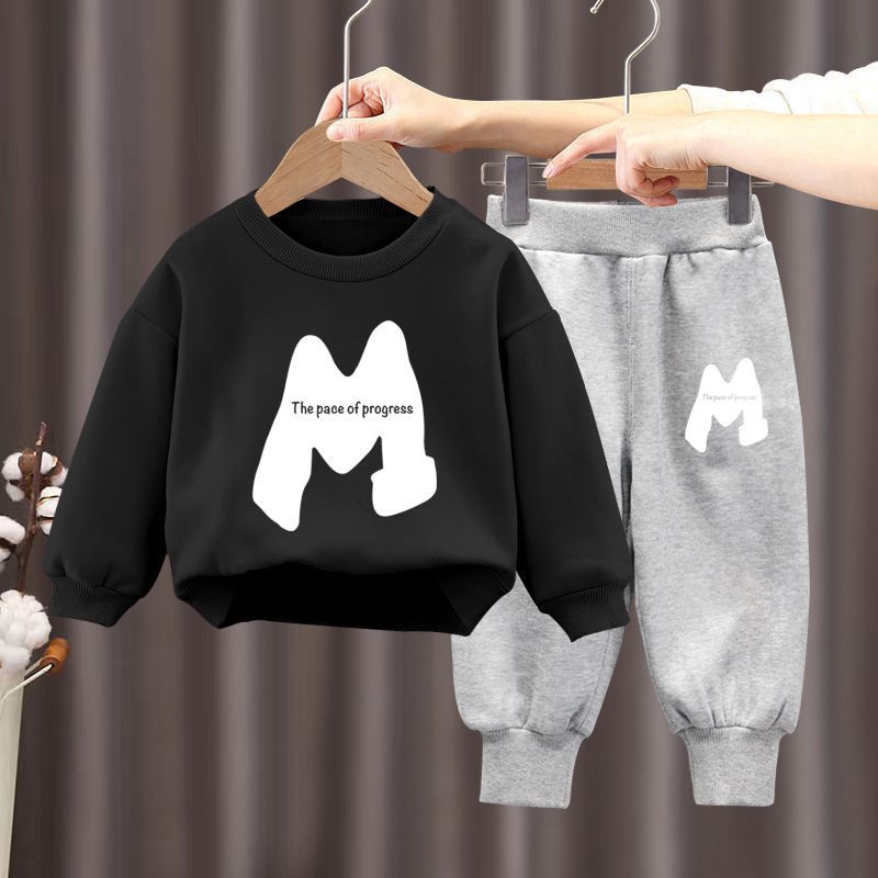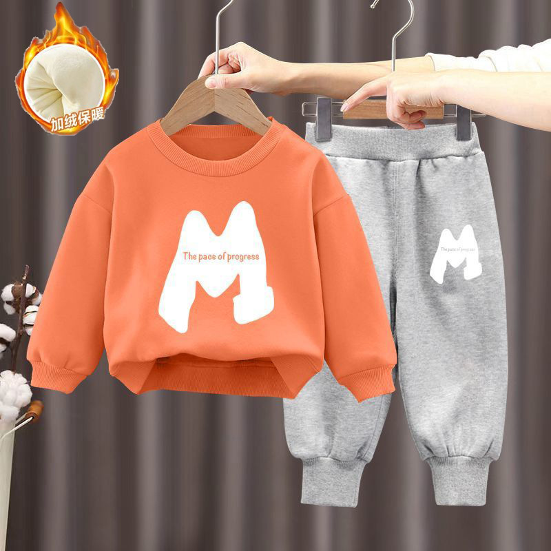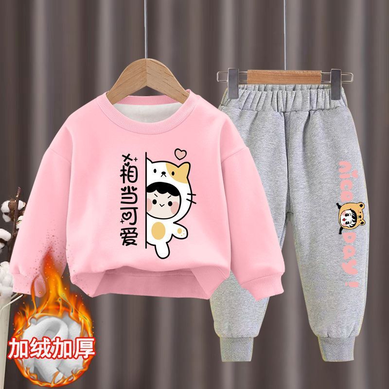 2023新款童装男童女童秋冬套装儿童加绒卫衣两件套春秋季童套装