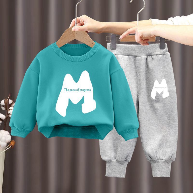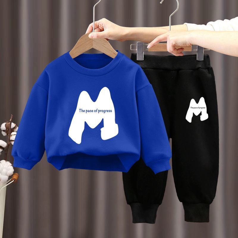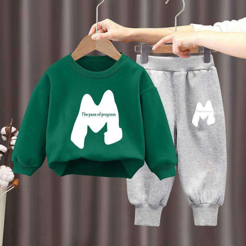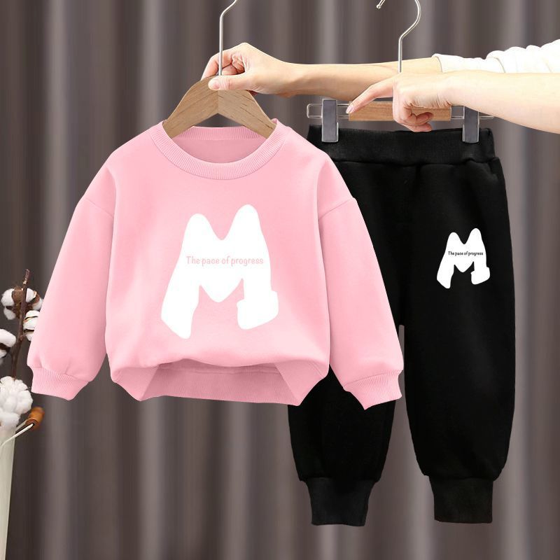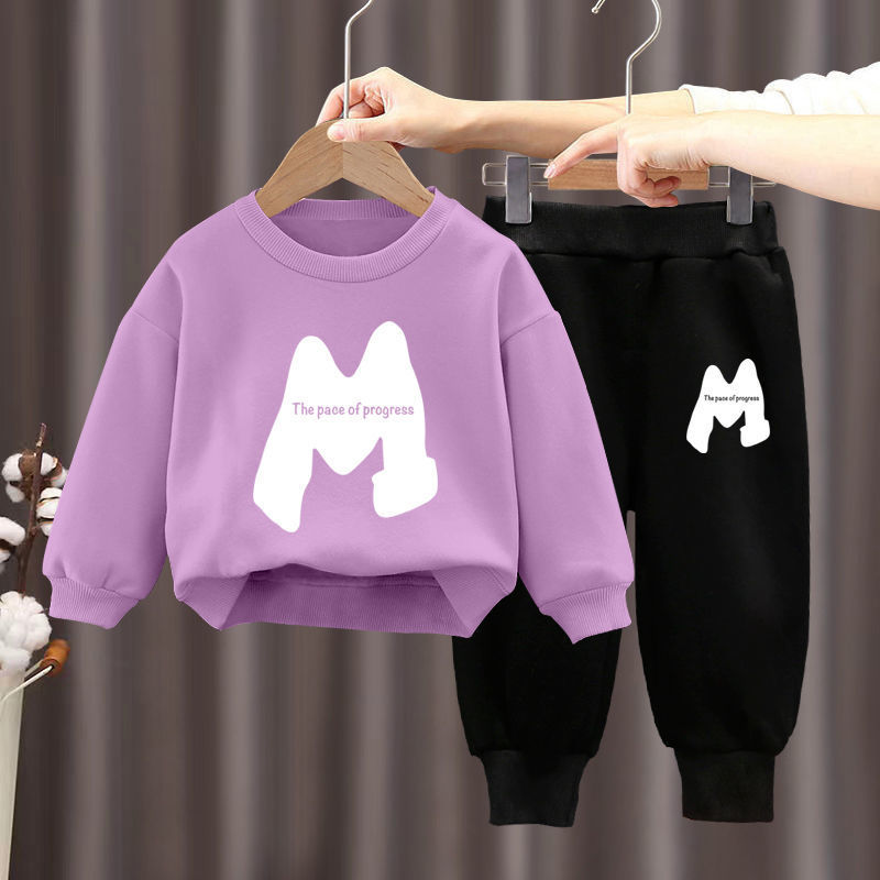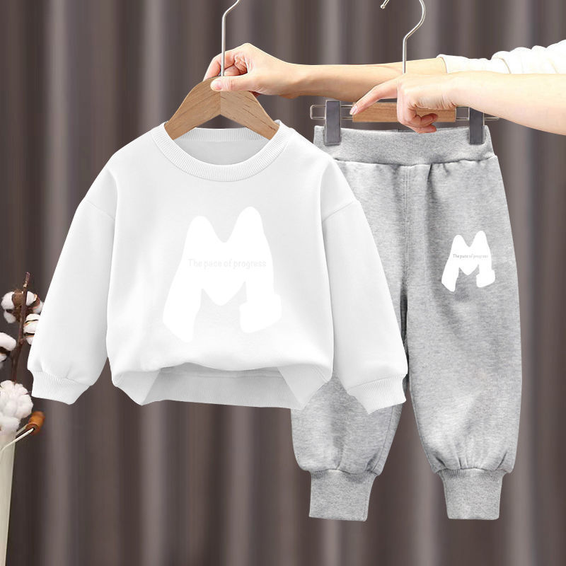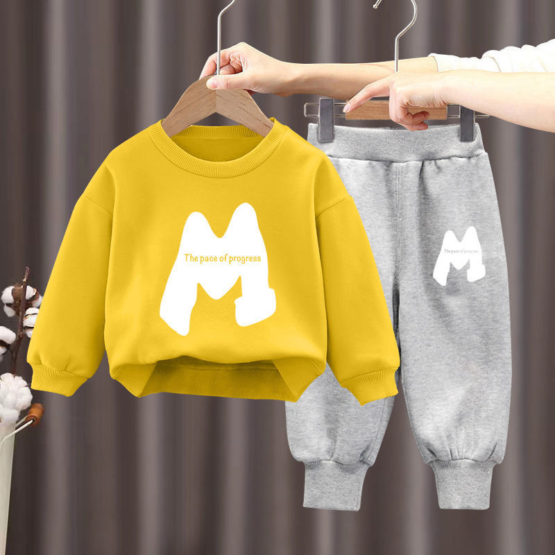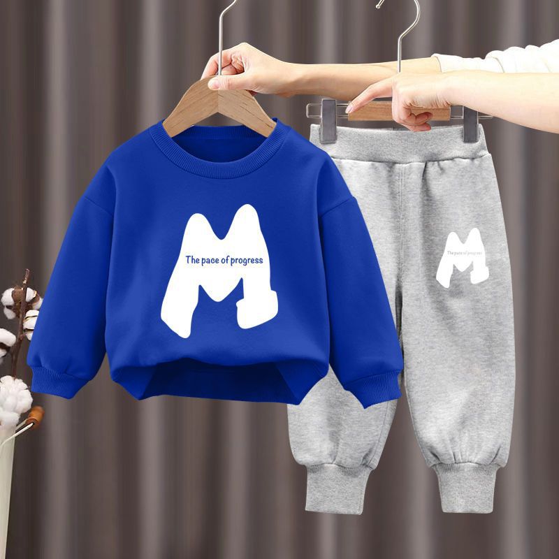 2023新款童装男童女童秋冬套装儿童加绒卫衣两件套春秋季童套装