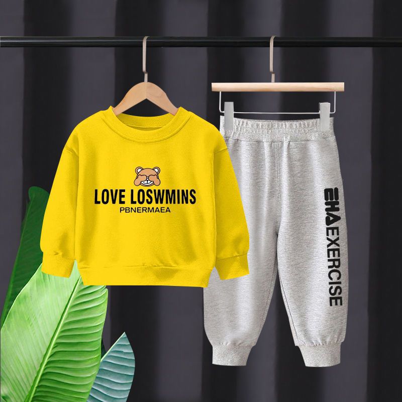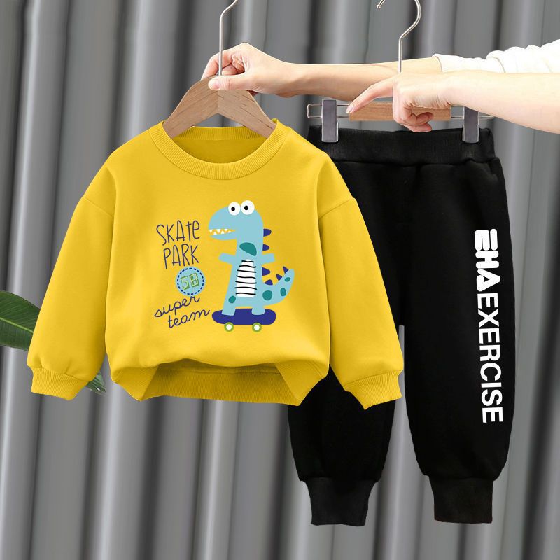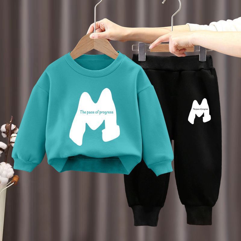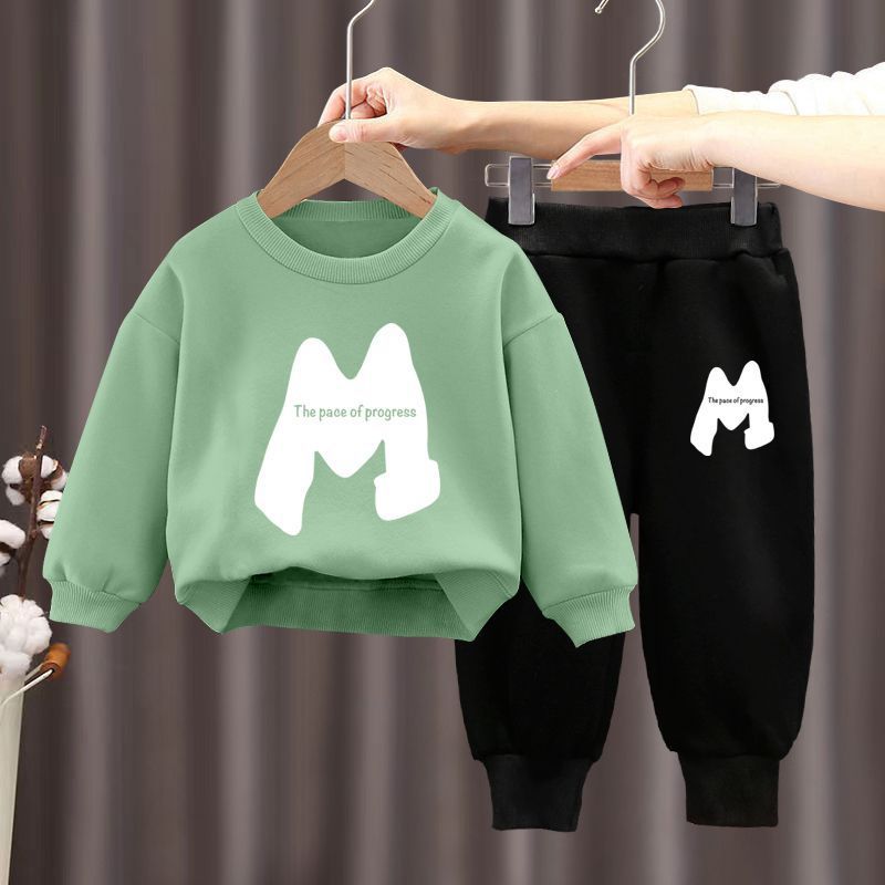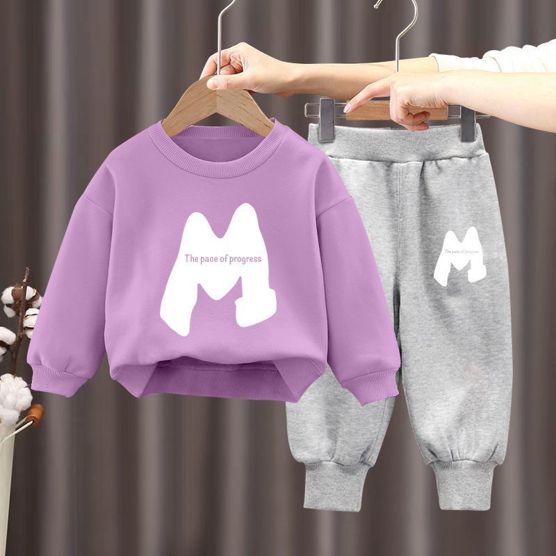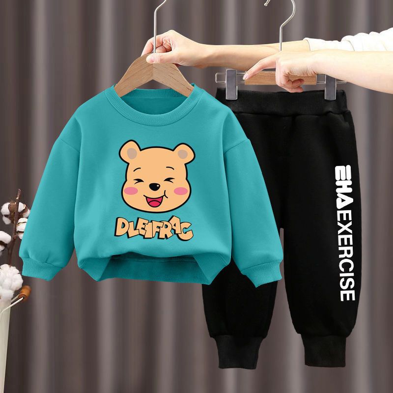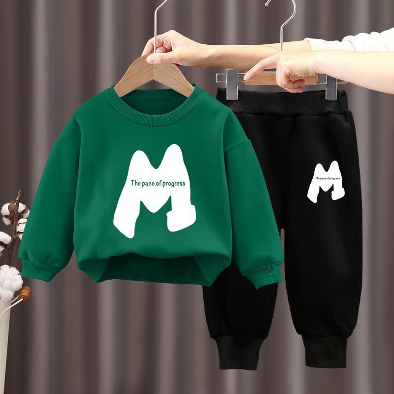 2023新款童装男童女童秋冬套装儿童加绒卫衣两件套春秋季童套装