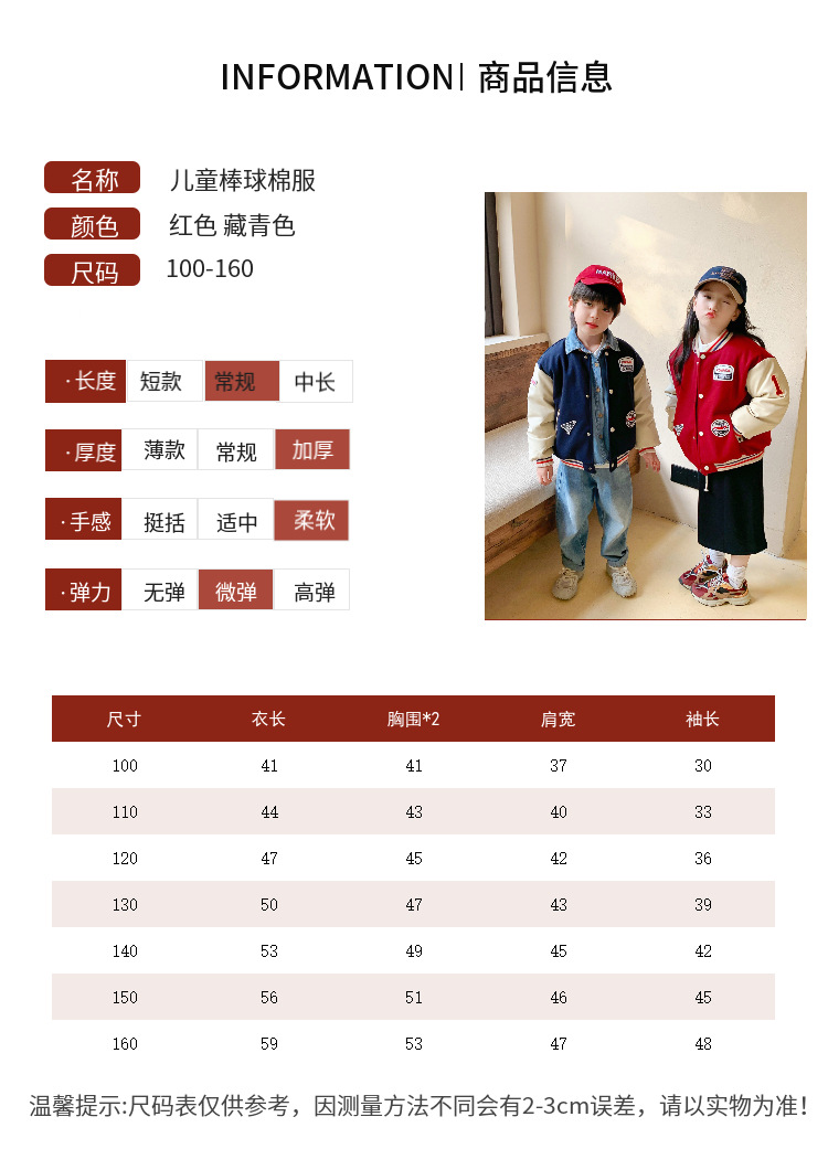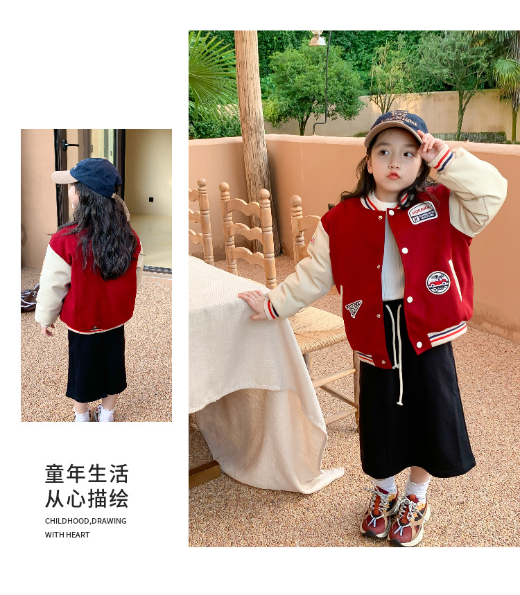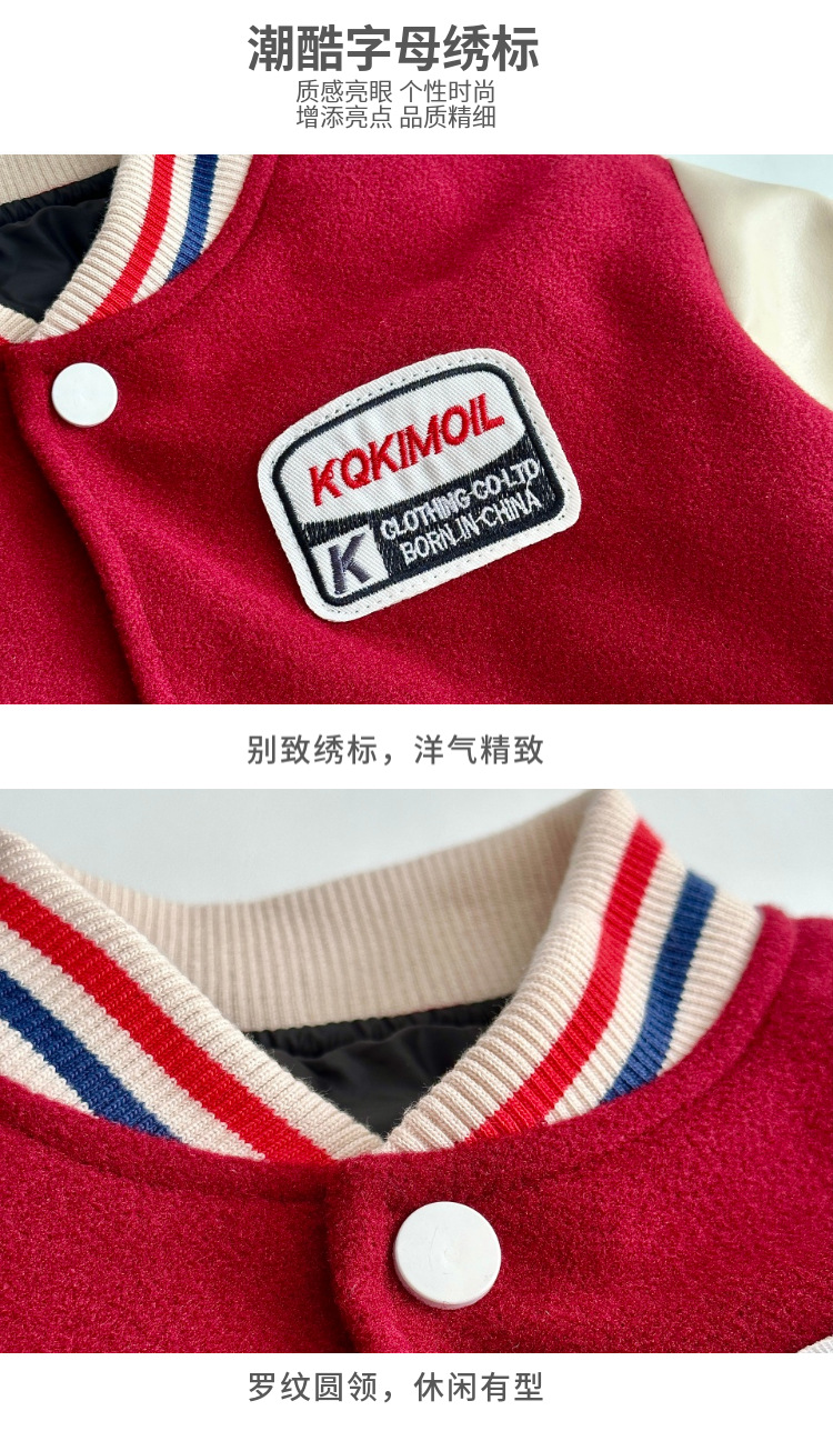 2023新款儿童棒球服男女童加棉外套小中大童秋冬洋气棉服宝宝冬装