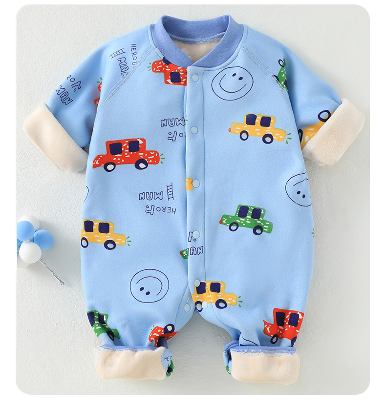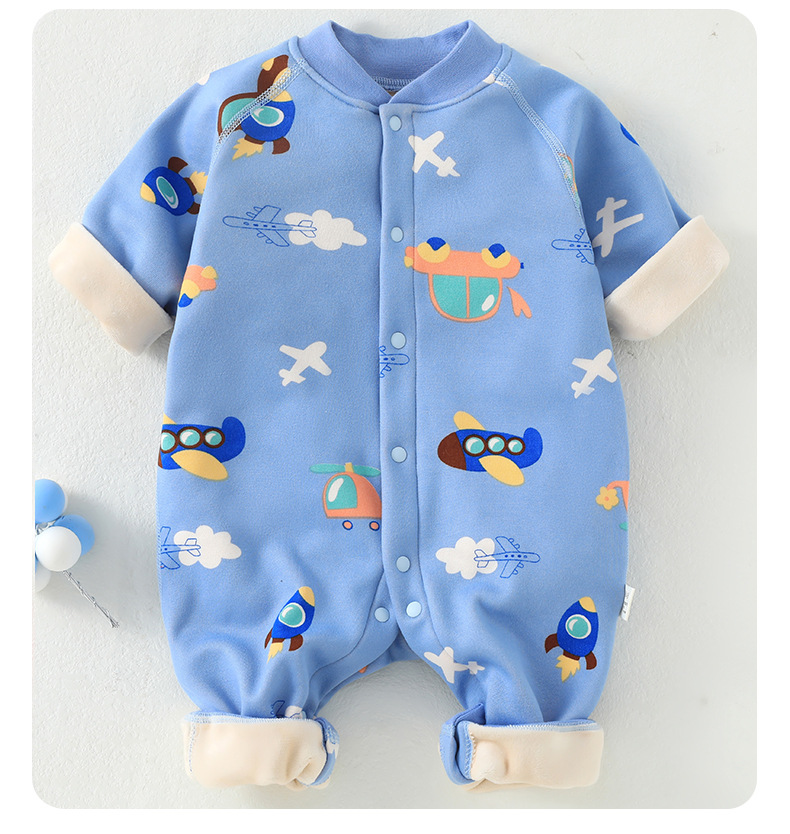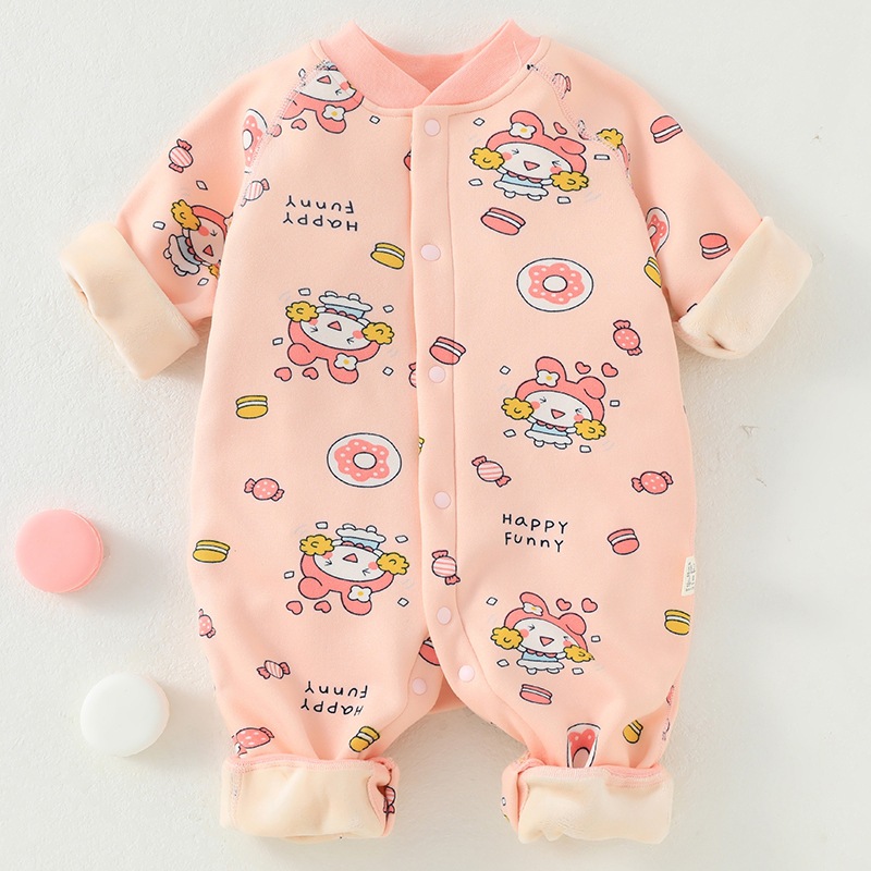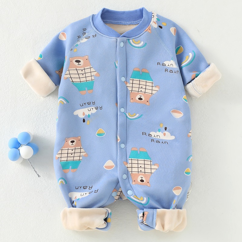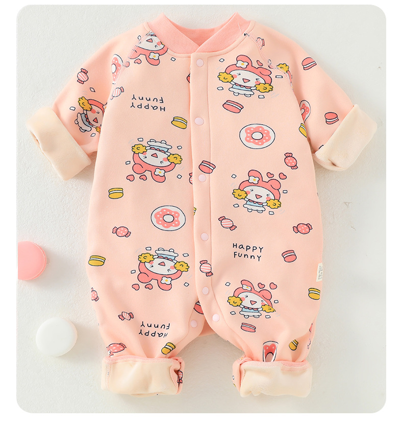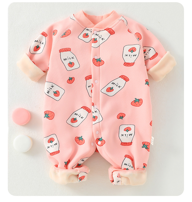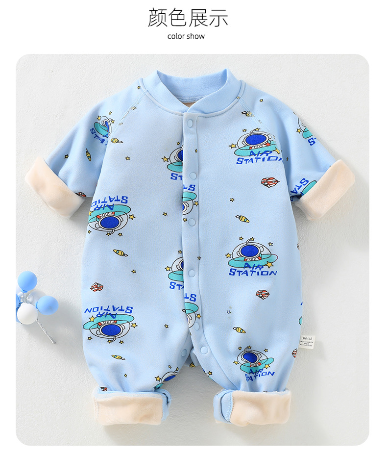 婴儿加绒连体衣加厚牛奶绒保暖新生儿衣服秋冬季服装宝宝哈衣爬服