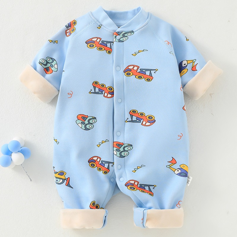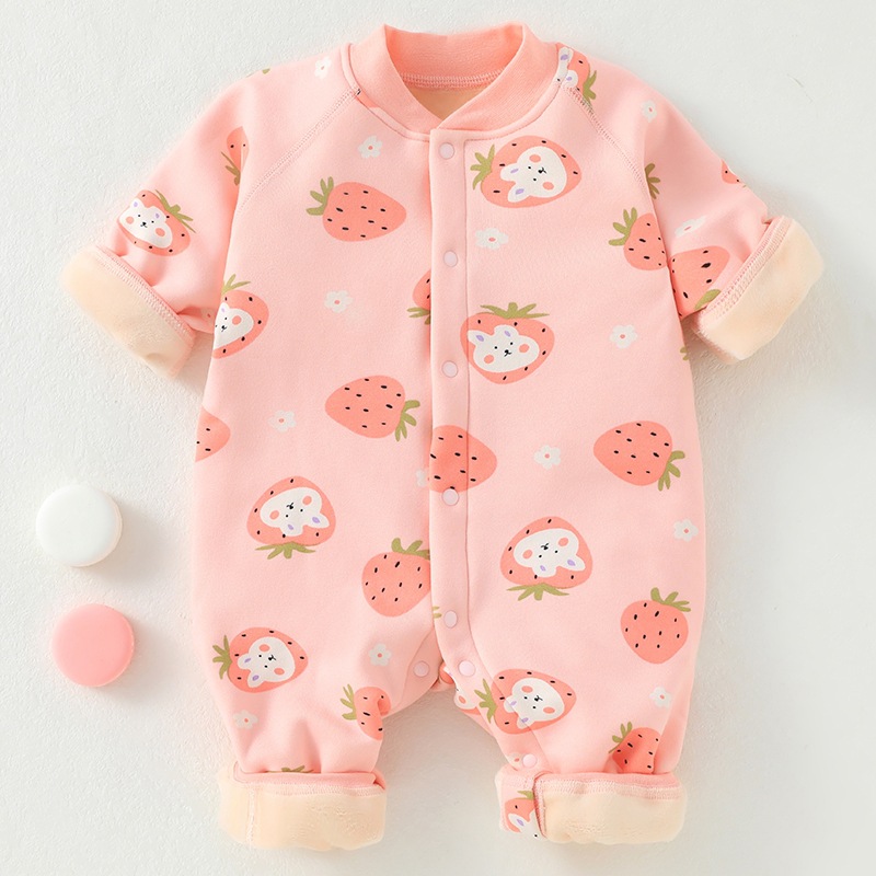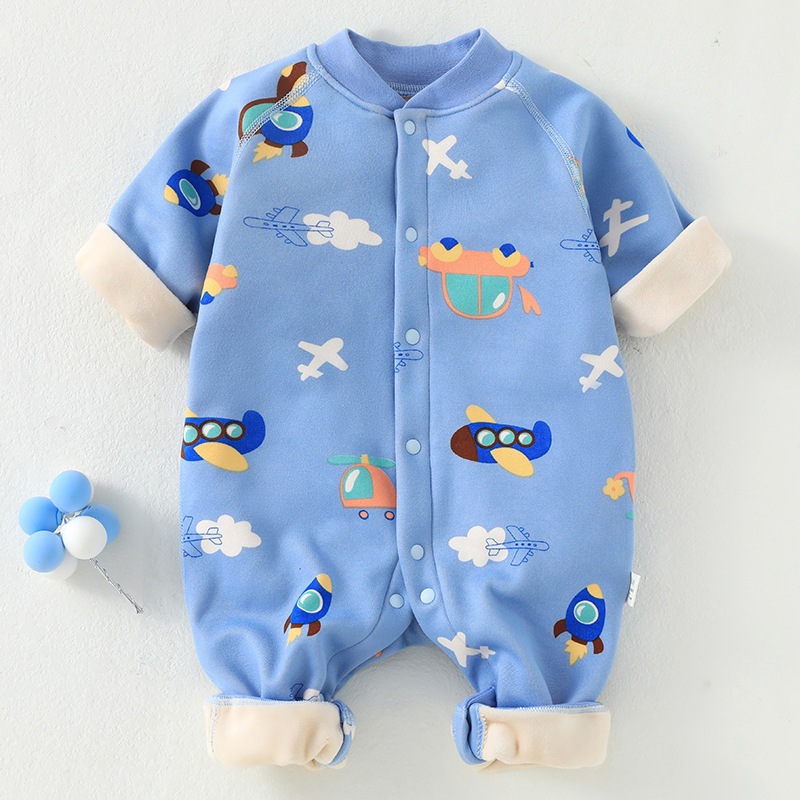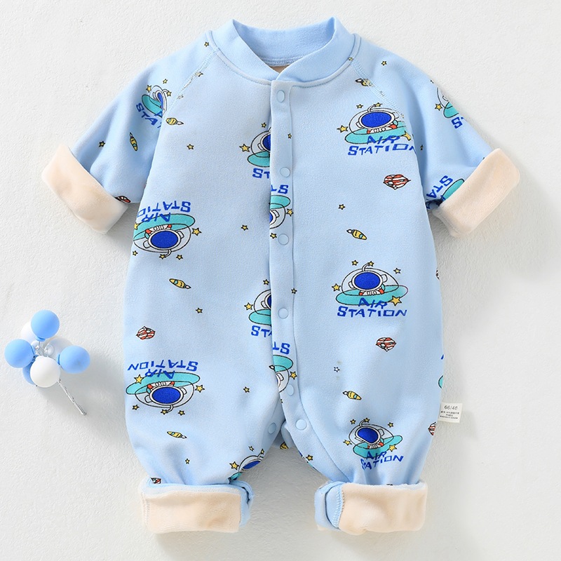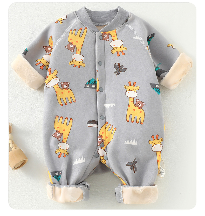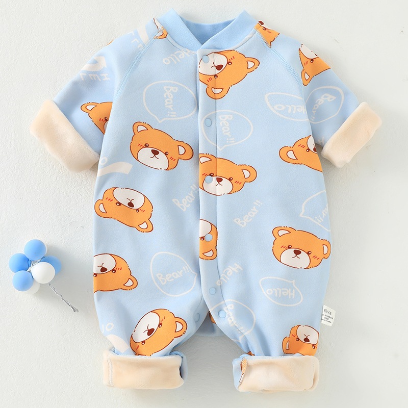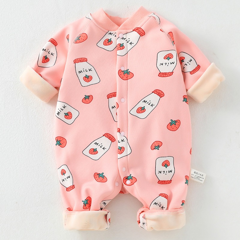 婴儿加绒连体衣加厚牛奶绒保暖新生儿衣服秋冬季服装宝宝哈衣爬服