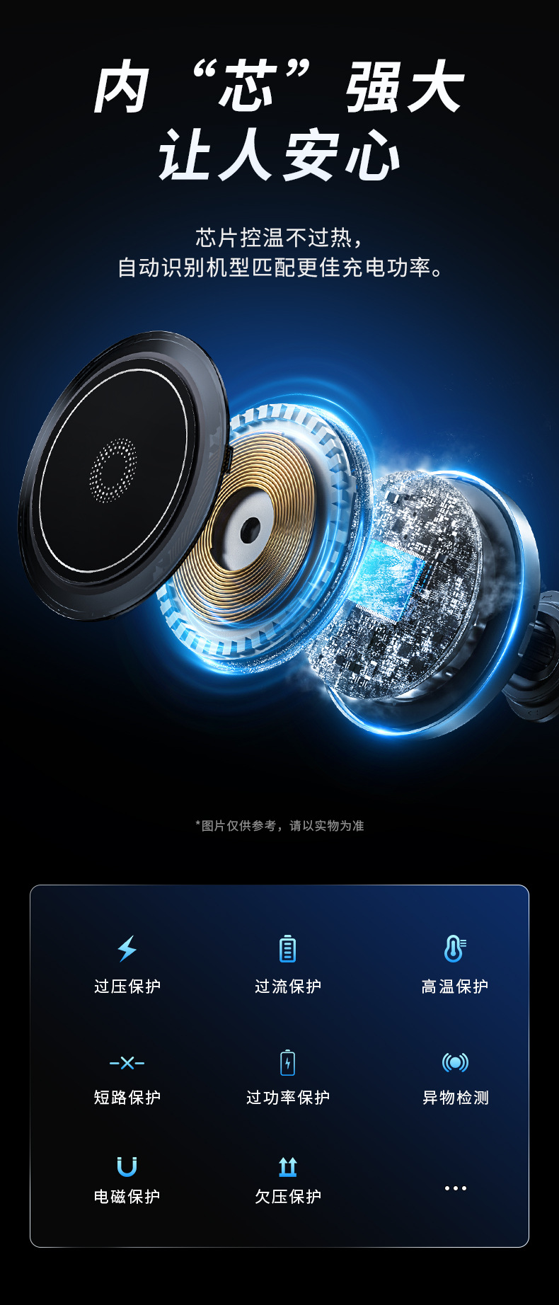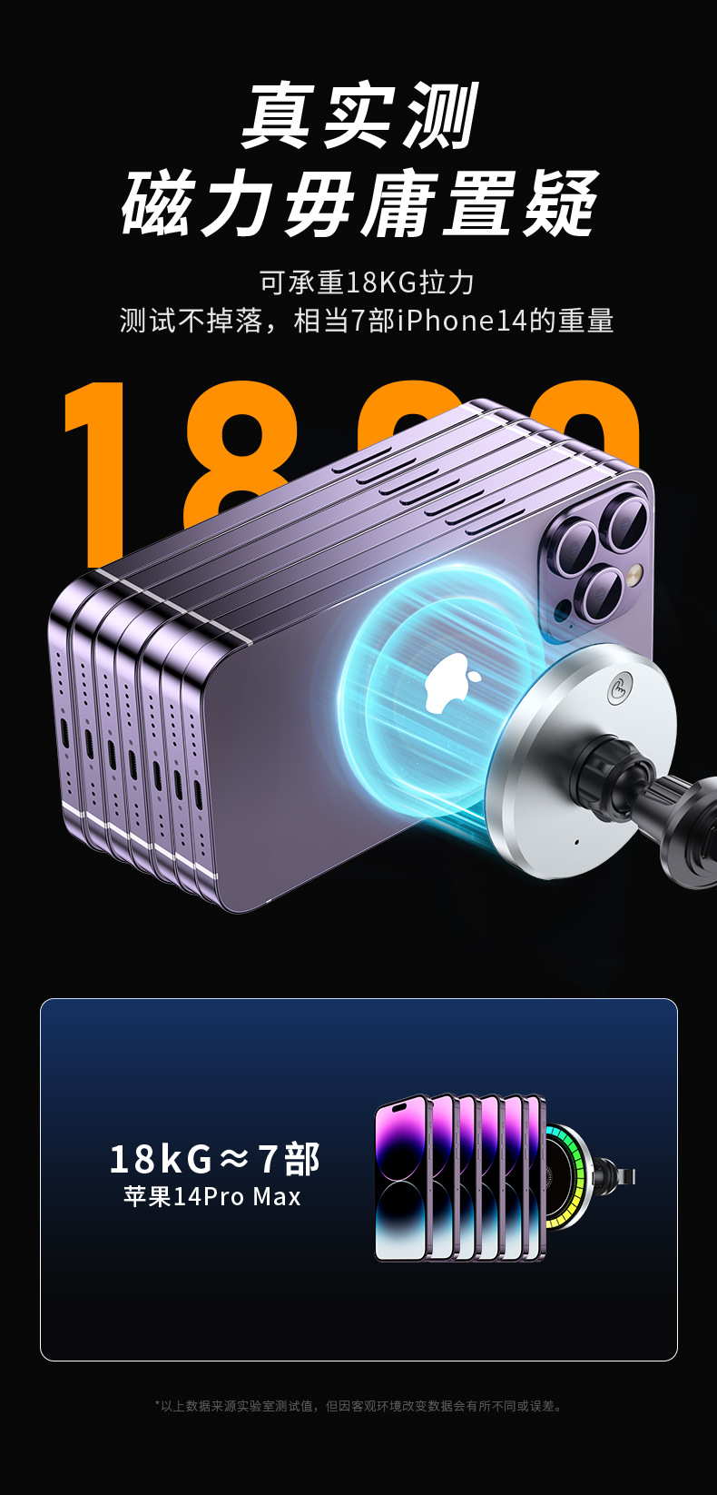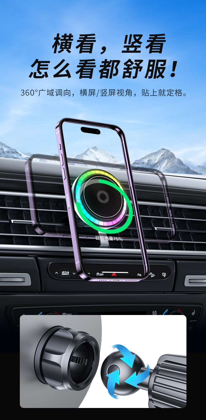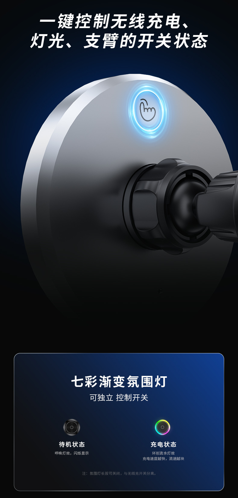 汽车用品无线充磁吸车载手机支架七彩声音律动快充出风口