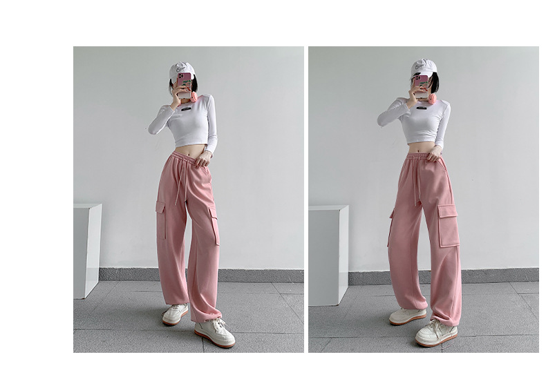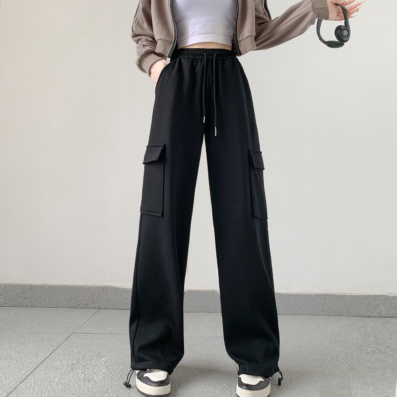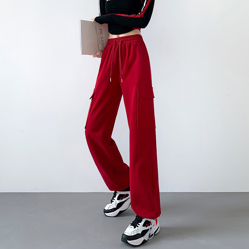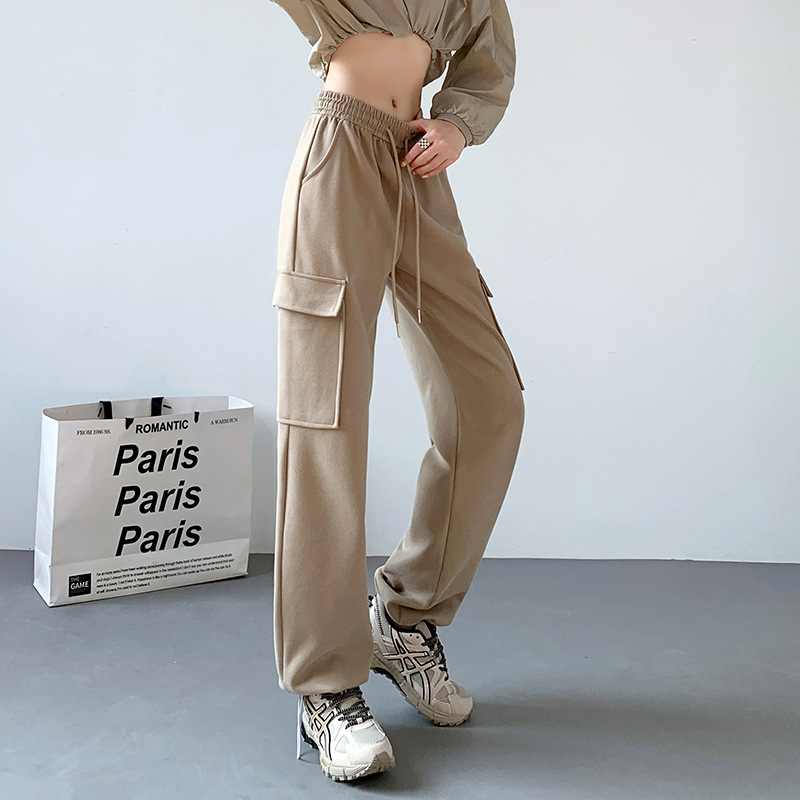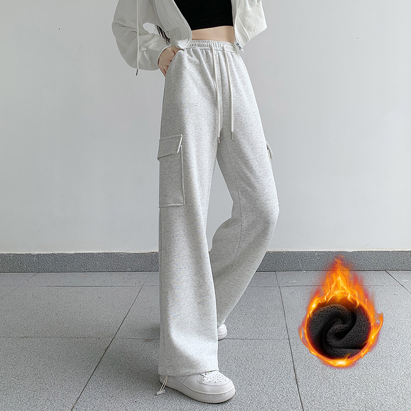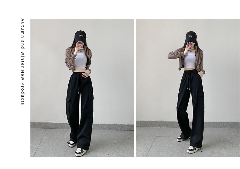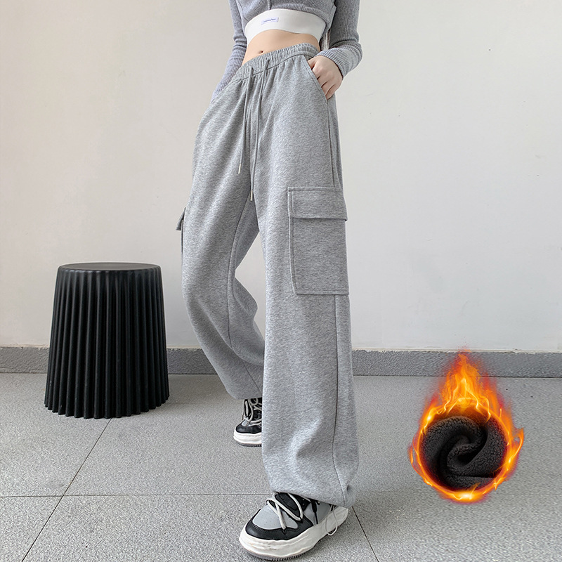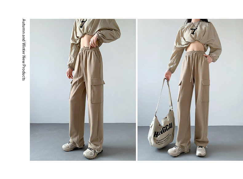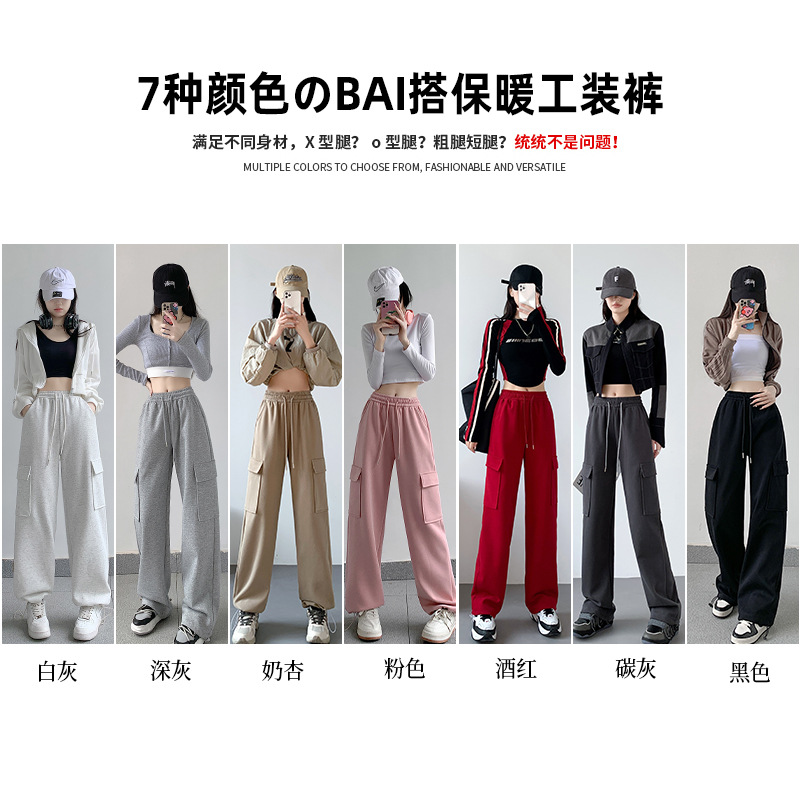 工装裤女美式加绒休闲运动裤子秋冬新款高腰显瘦束脚裤直筒阔腿裤