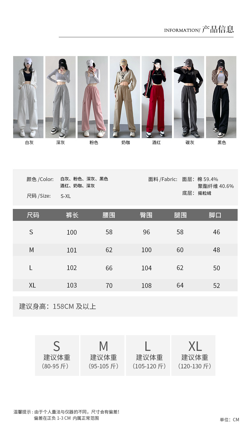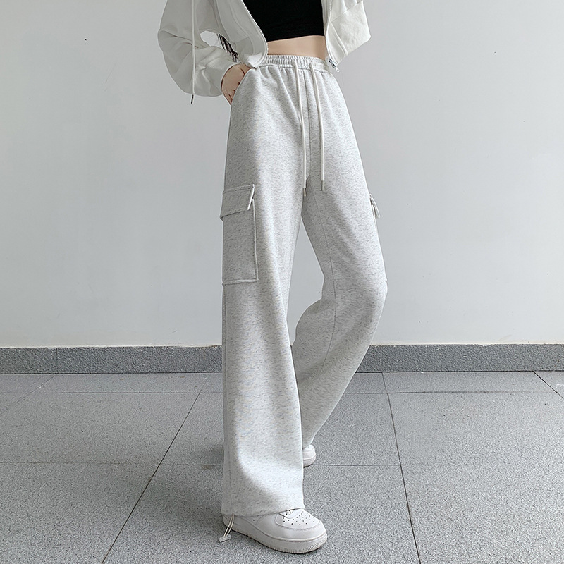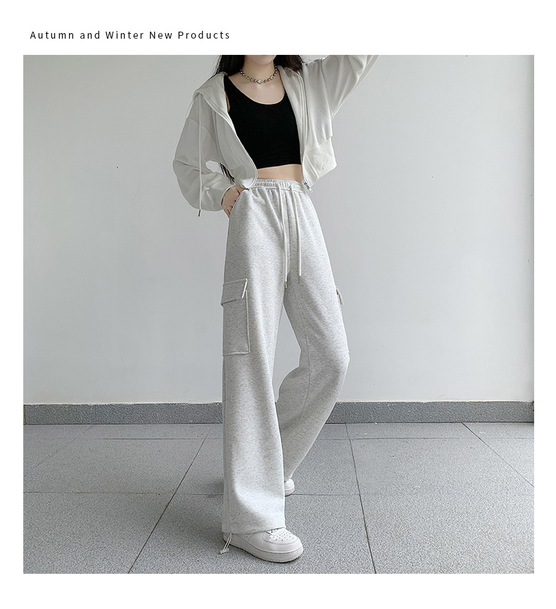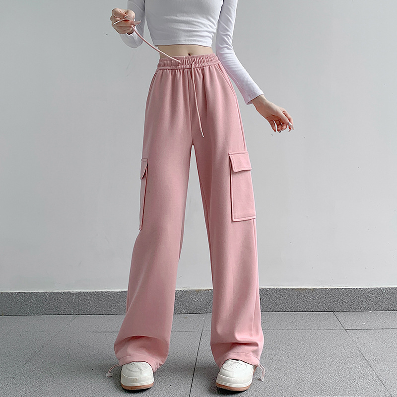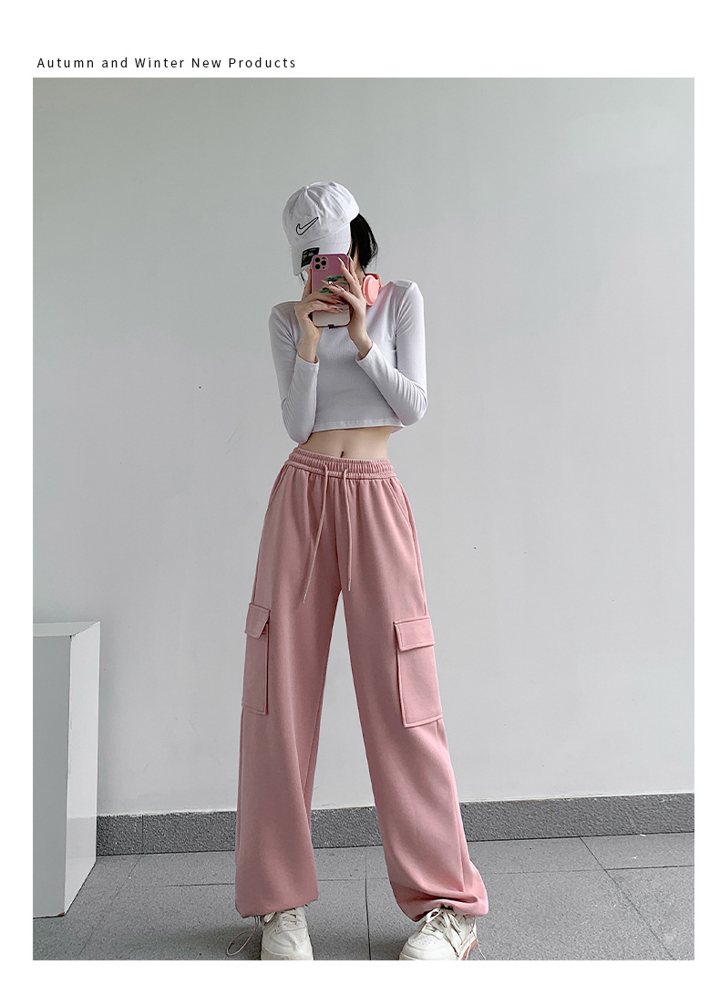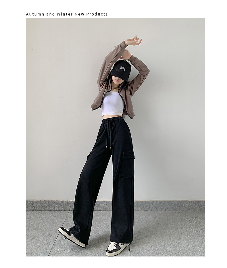 工装裤女美式加绒休闲运动裤子秋冬新款高腰显瘦束脚裤直筒阔腿裤