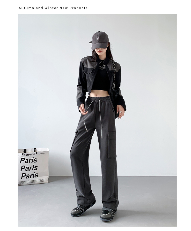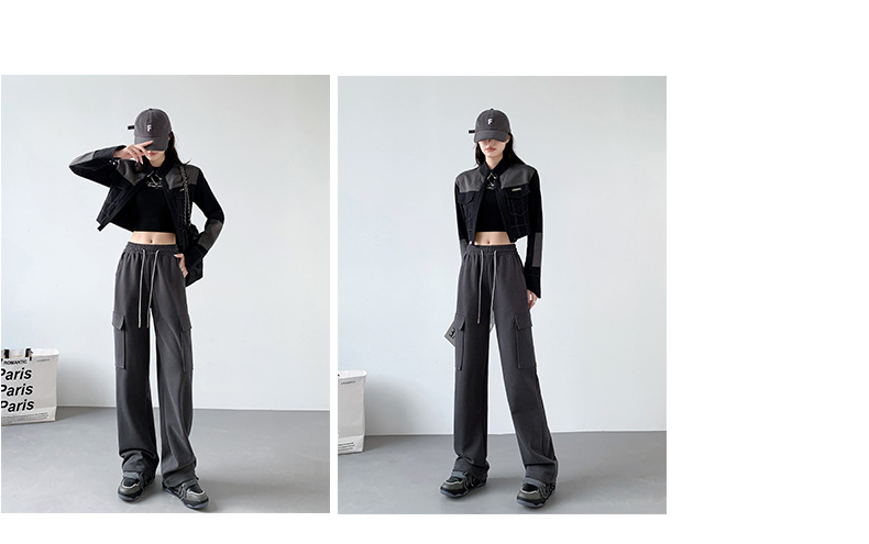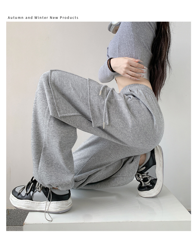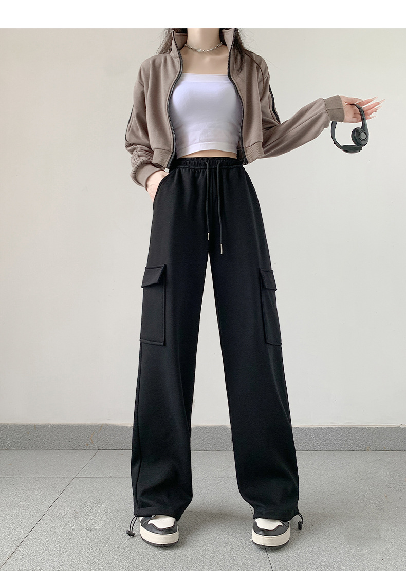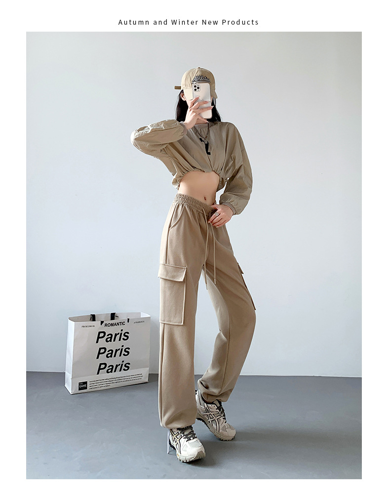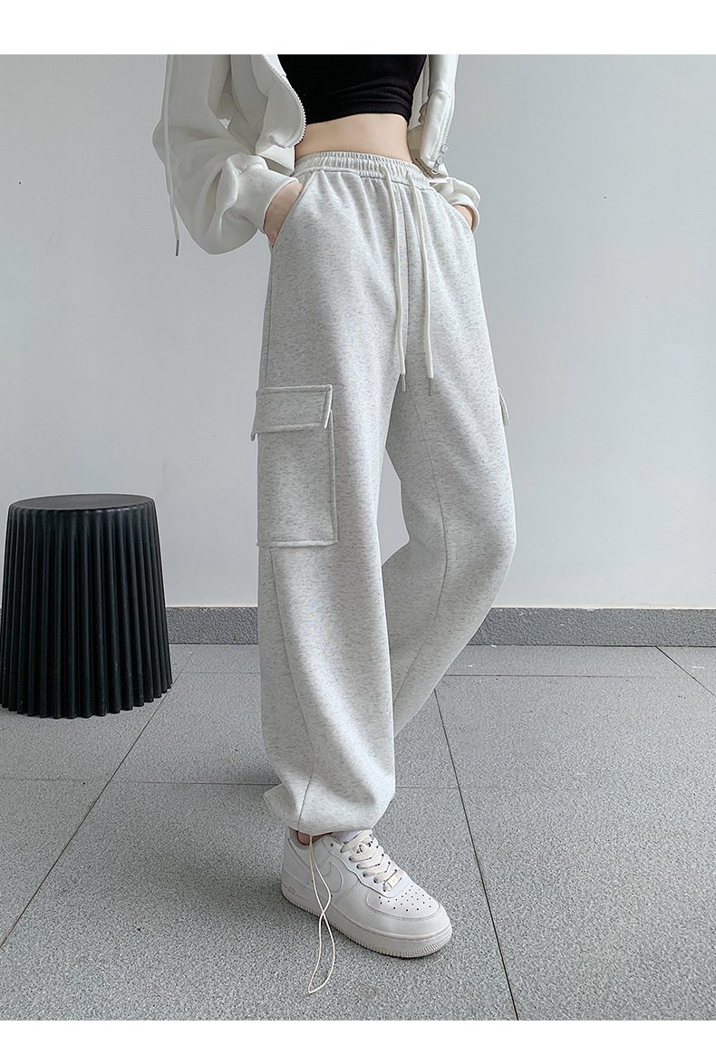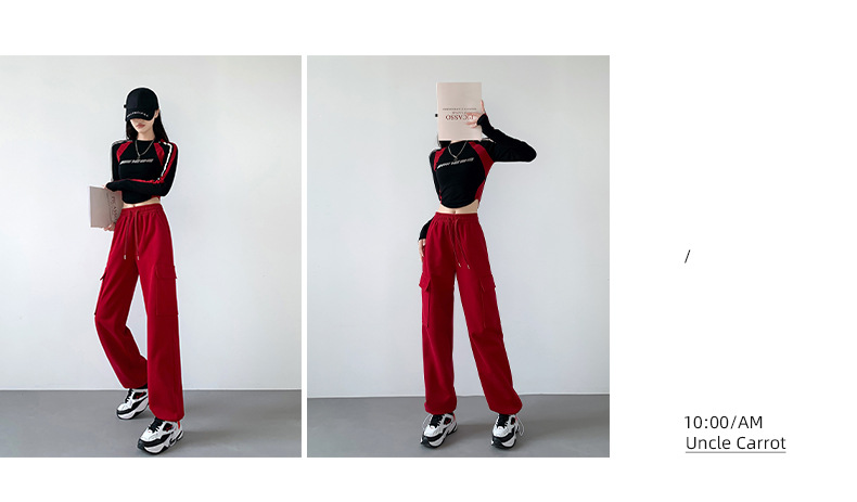 工装裤女美式加绒休闲运动裤子秋冬新款高腰显瘦束脚裤直筒阔腿裤