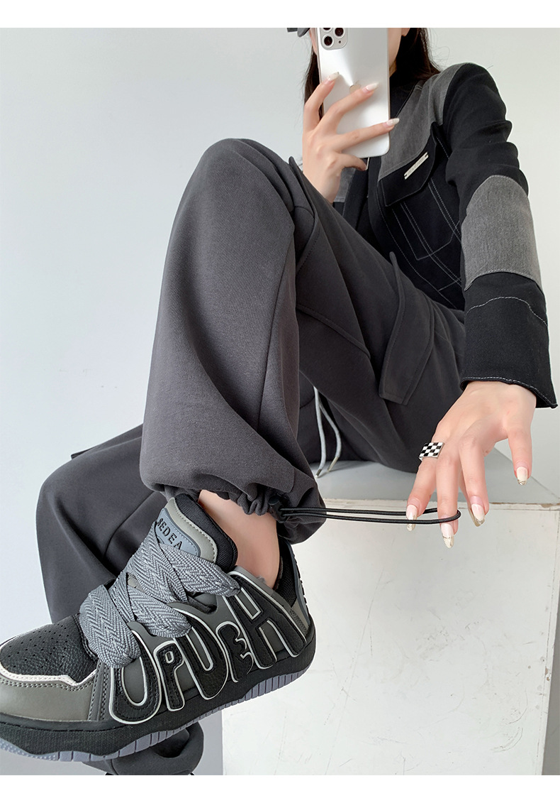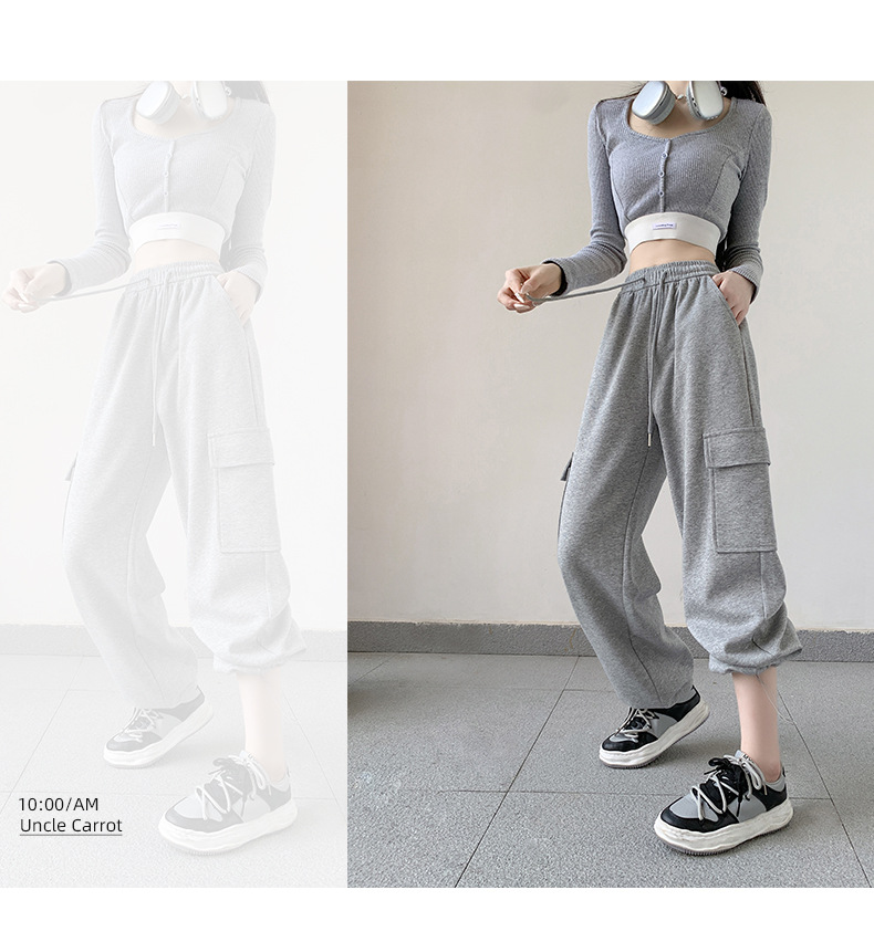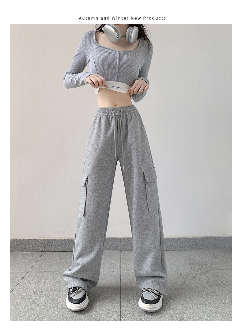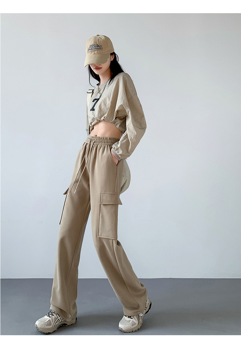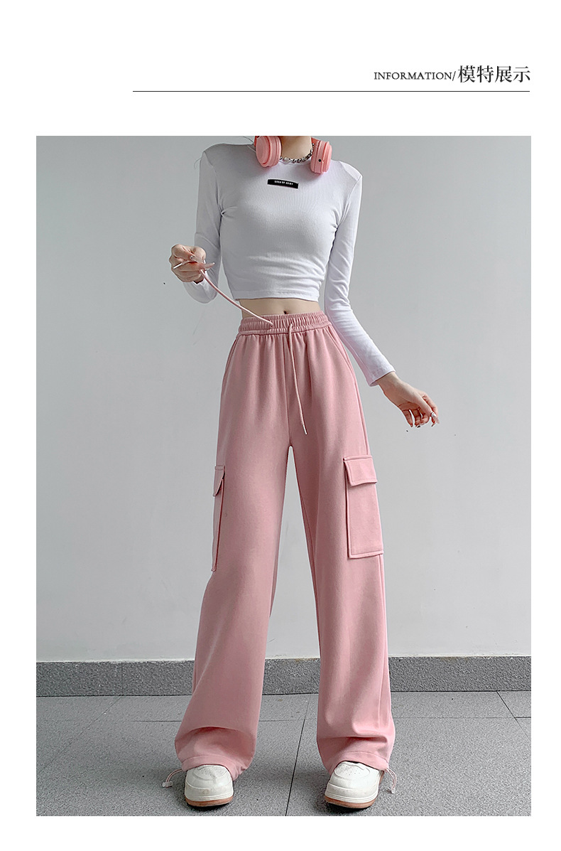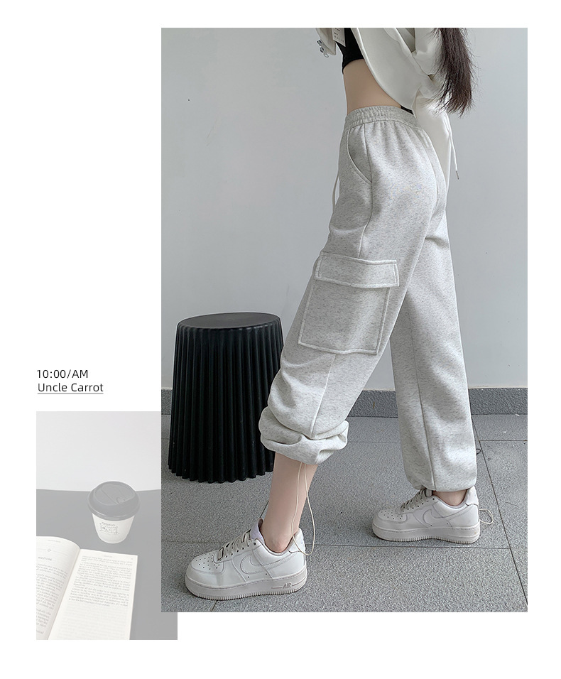 工装裤女美式加绒休闲运动裤子秋冬新款高腰显瘦束脚裤直筒阔腿裤