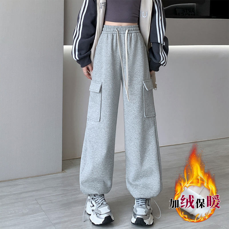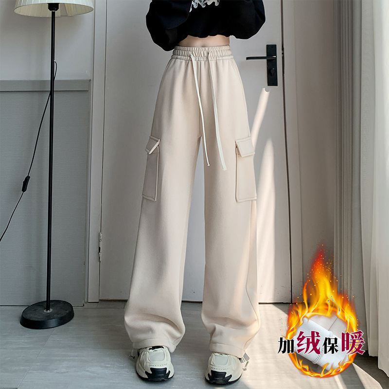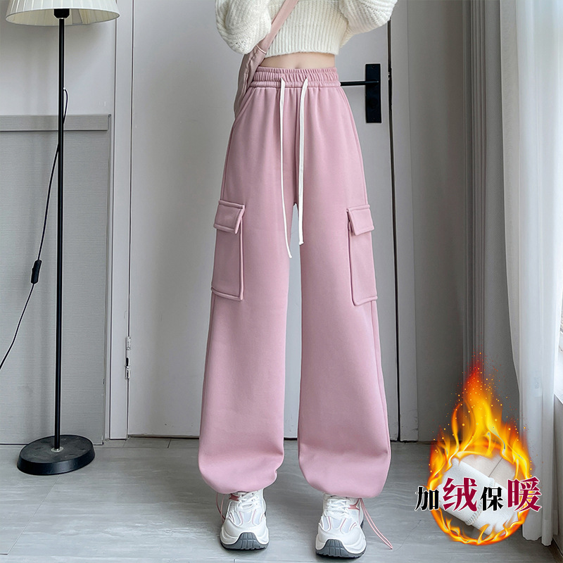 华棉工装裤女秋冬新款加绒加厚休闲裤阔腿百搭卫裤小个子保暖裤子