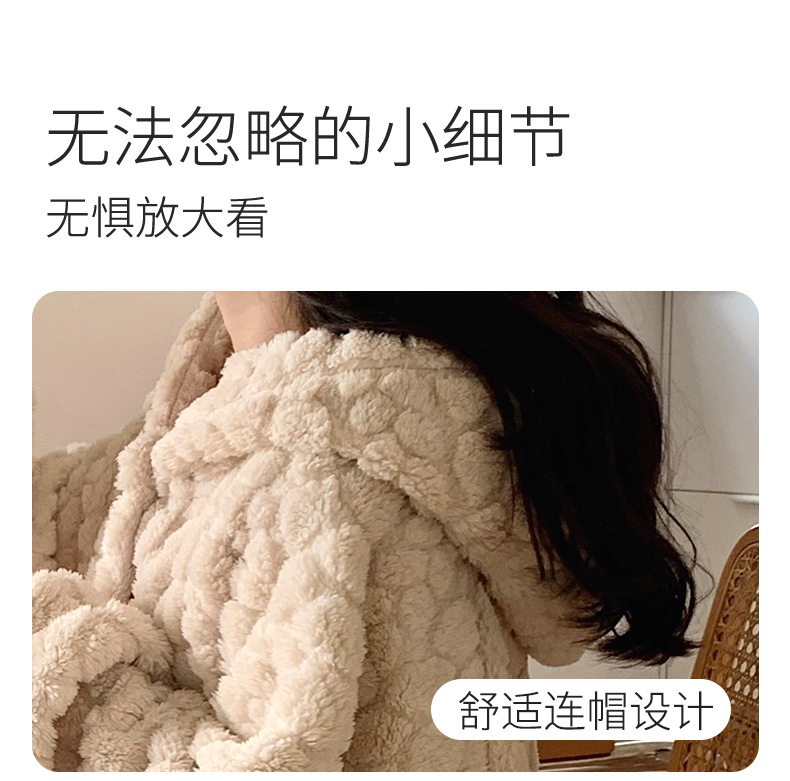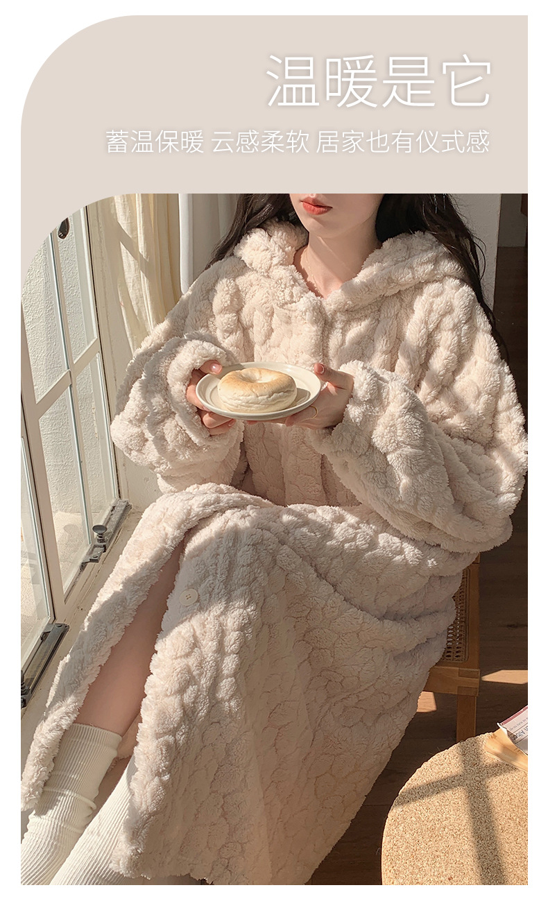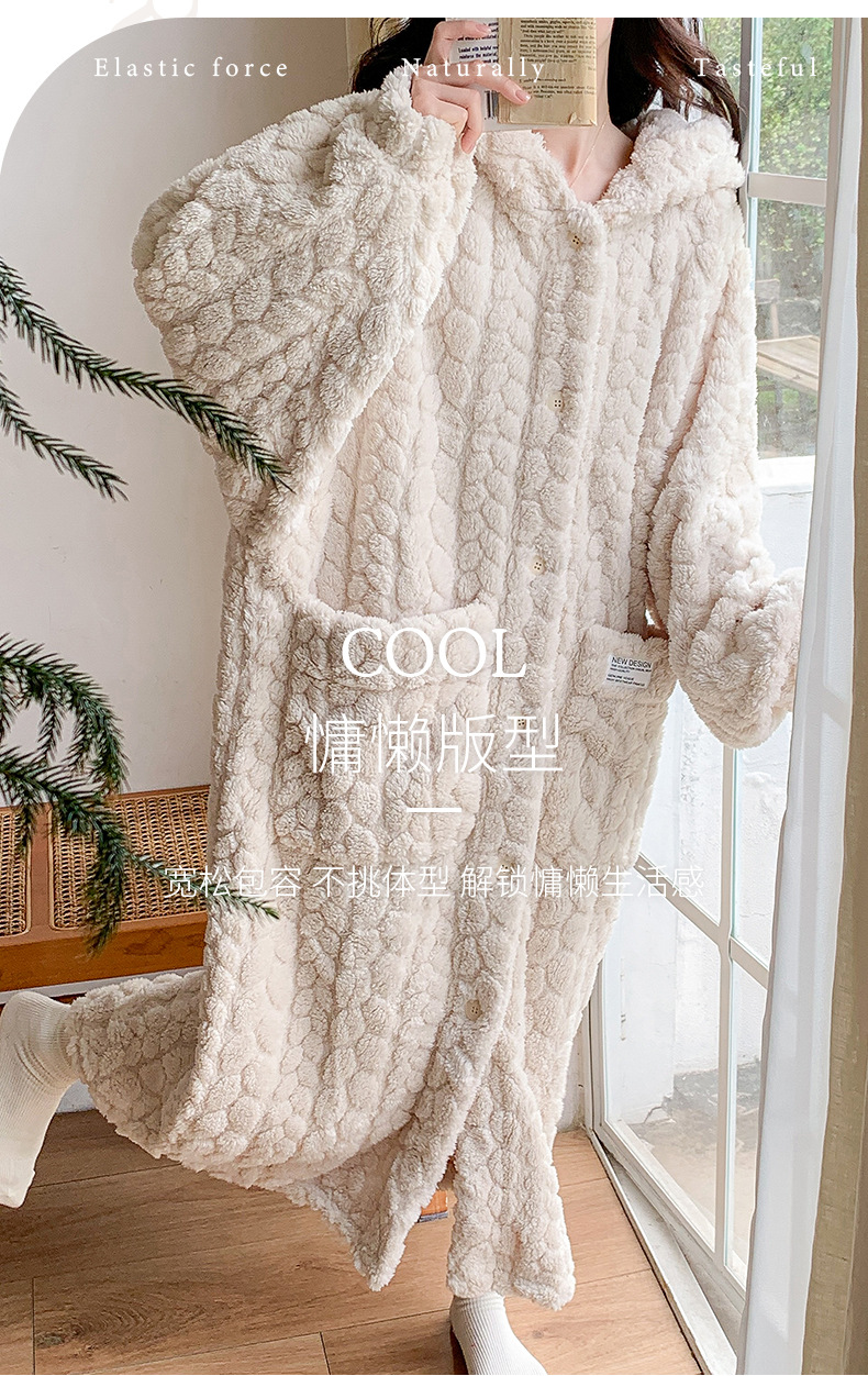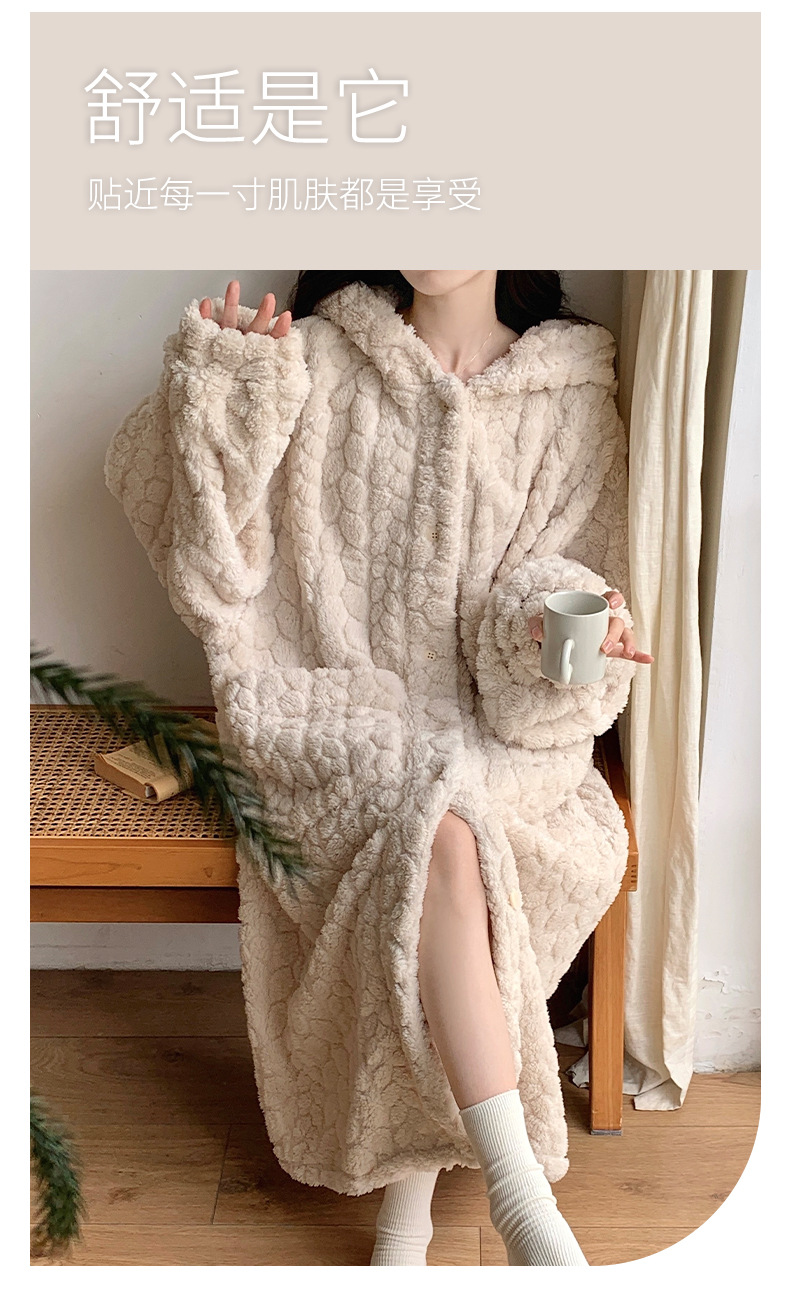 人气慵懒风睡袍女法兰绒开衫连帽睡衣长袍冬季宽松舒适珊瑚绒睡袍