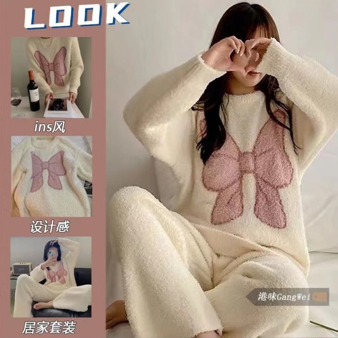 秋冬季ins睡衣女加厚保暖小香风长毛绒开衫休闲简约家居服两件套