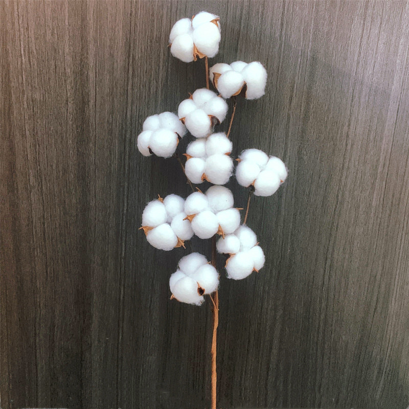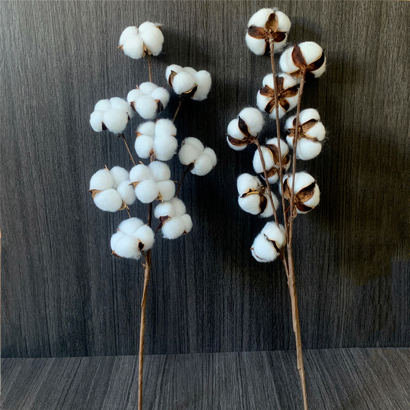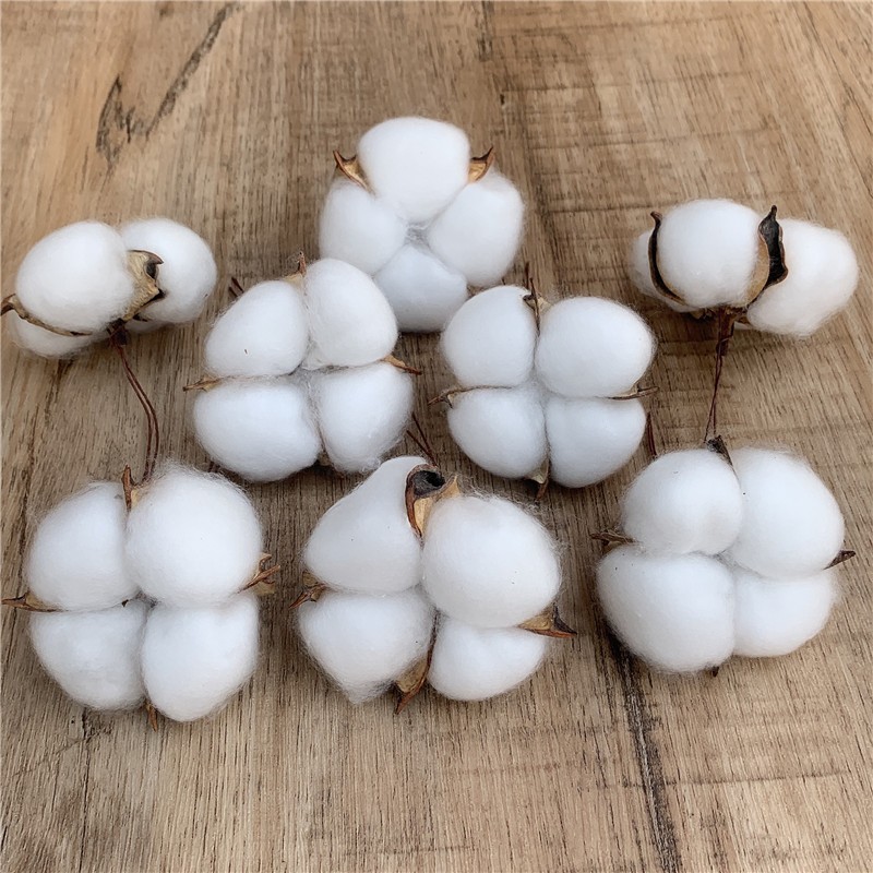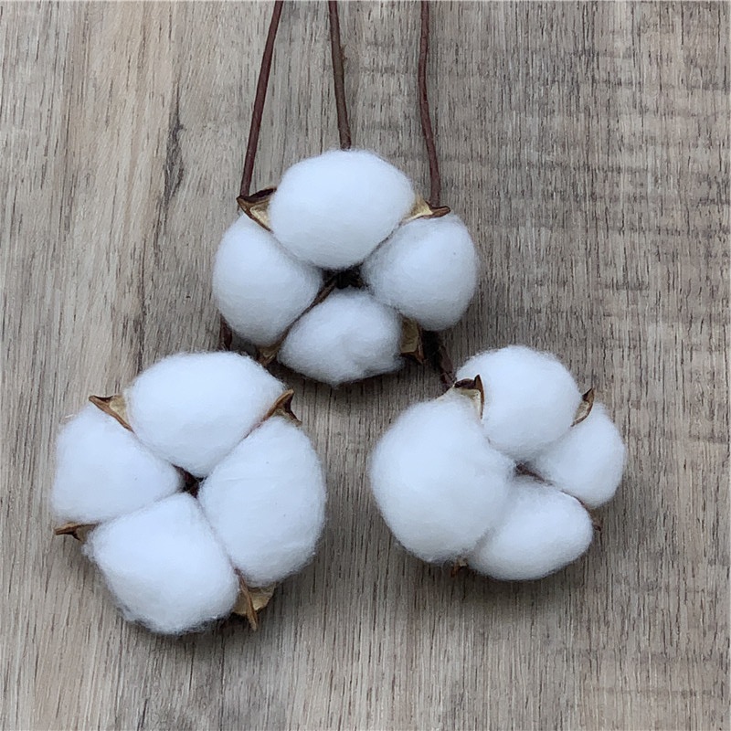 带铁丝棉头和无铁丝棉头(花朵直径约5cm),包装(25朵/包);单支棉带杆子长分别(25cm,40cm,60cm左右),包装(10支/包);棉花束:3头棉花(长40cm),6头棉花(长45cm),9头棉花(长55cm),10头棉花(长55cm),12头棉花(长68cm);4头尤加利棉(长45cm);棉花束系列款式(单支包装)
