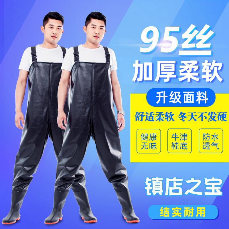 下水裤半身雨裤防水衣服男抓捕鱼连体全身渔皮叉水衩裤子加厚雨鞋
