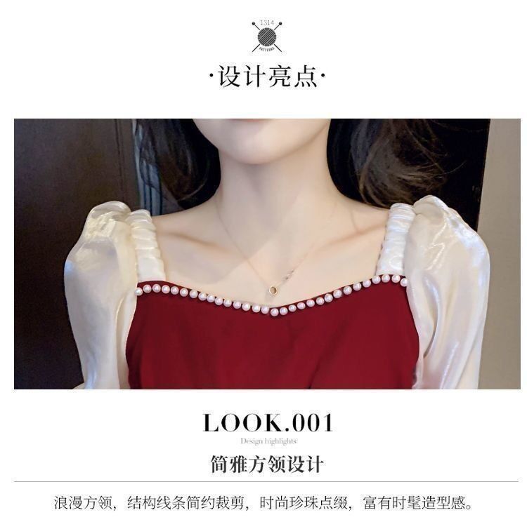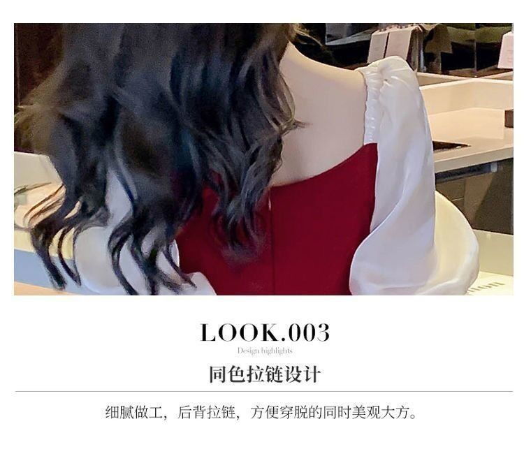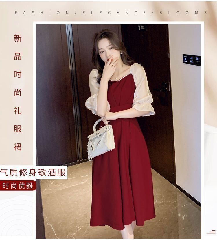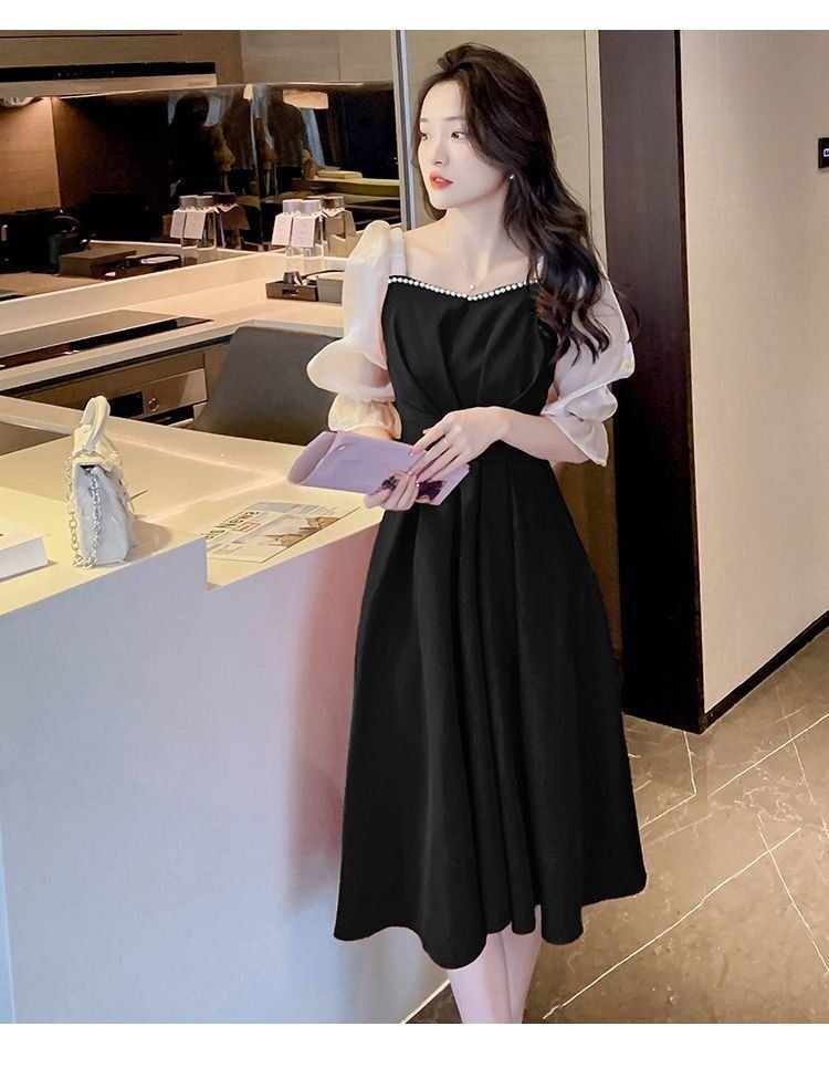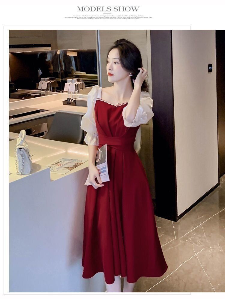 码五分袖连衣裙2024新款系带胖mm显瘦遮肉法式方领长款拼接裙子