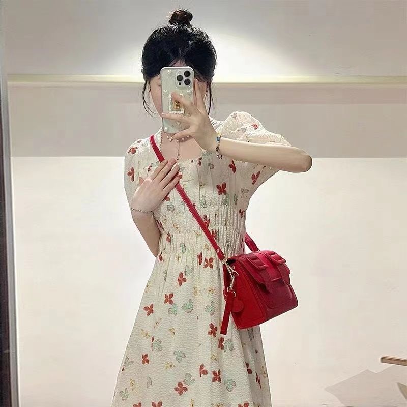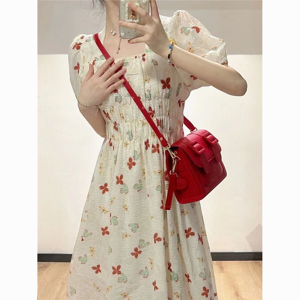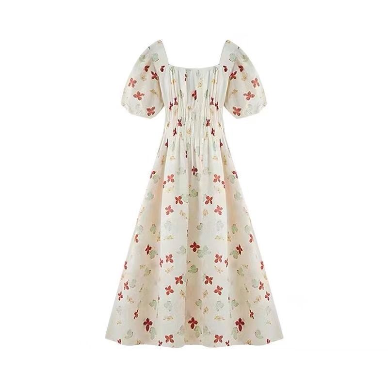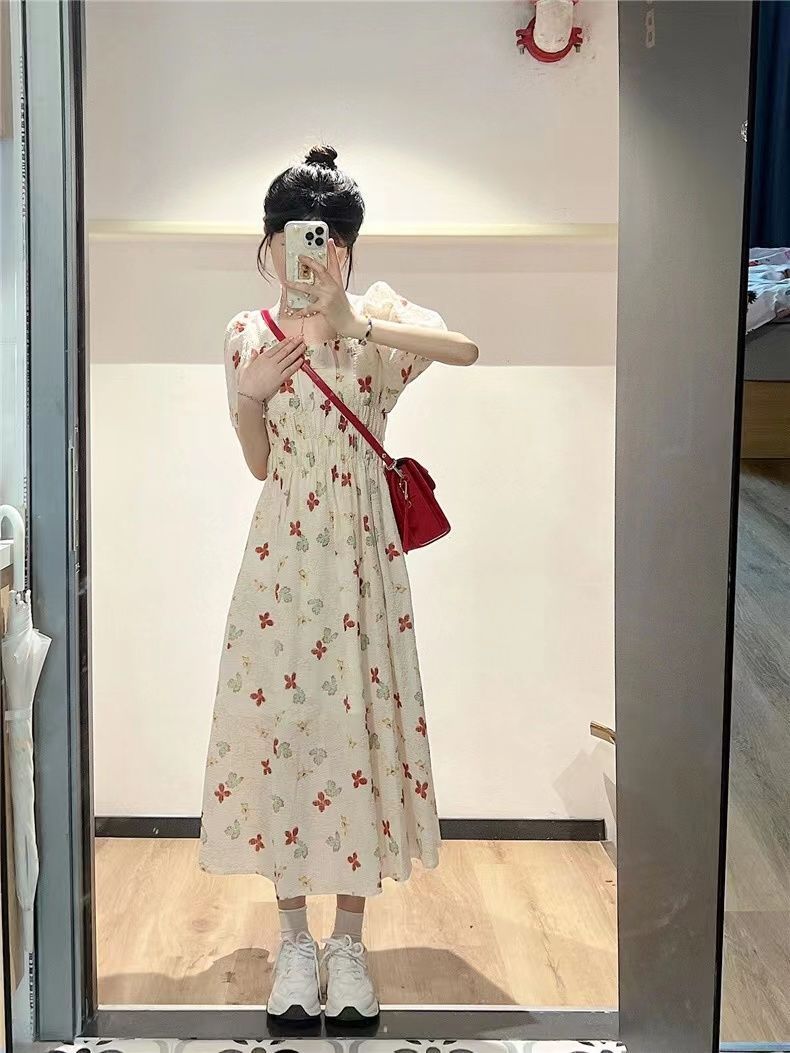 2024年新款小个子高级感别致绝美漂亮收腰长裙碎花连衣裙子女夏季