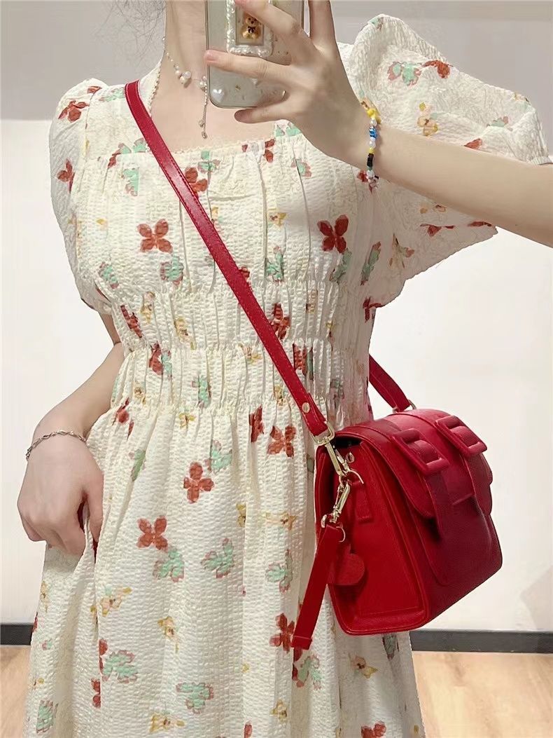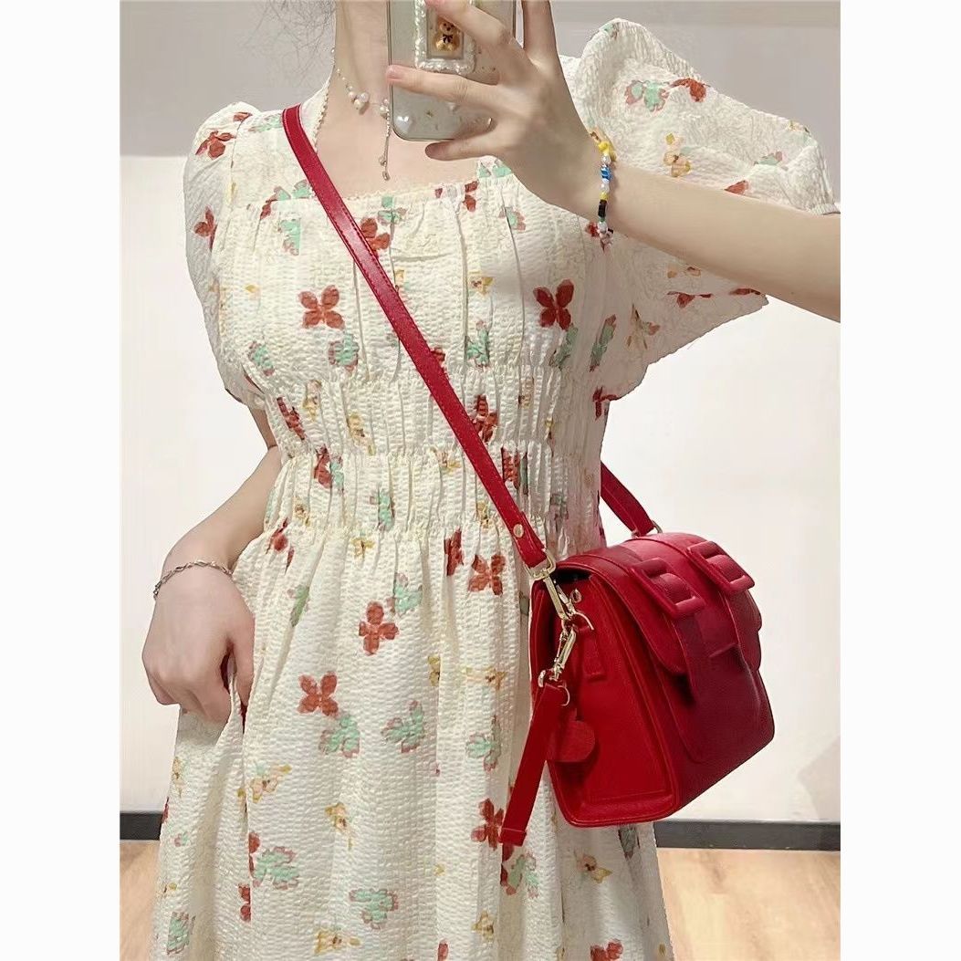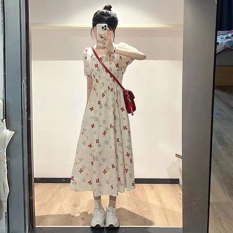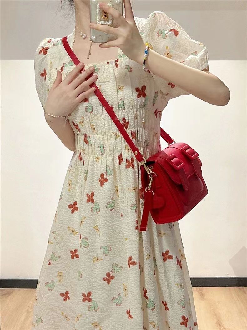 2024年新款小个子高级感别致绝美漂亮收腰长裙碎花连衣裙子女夏季