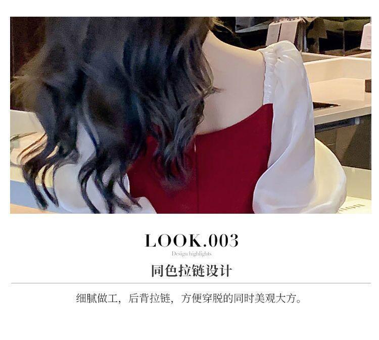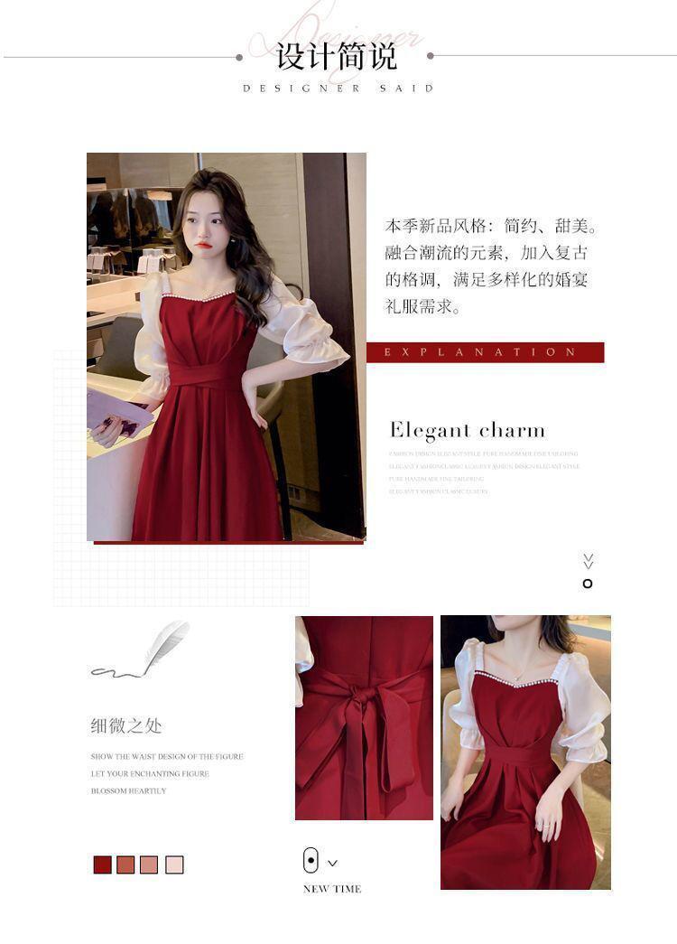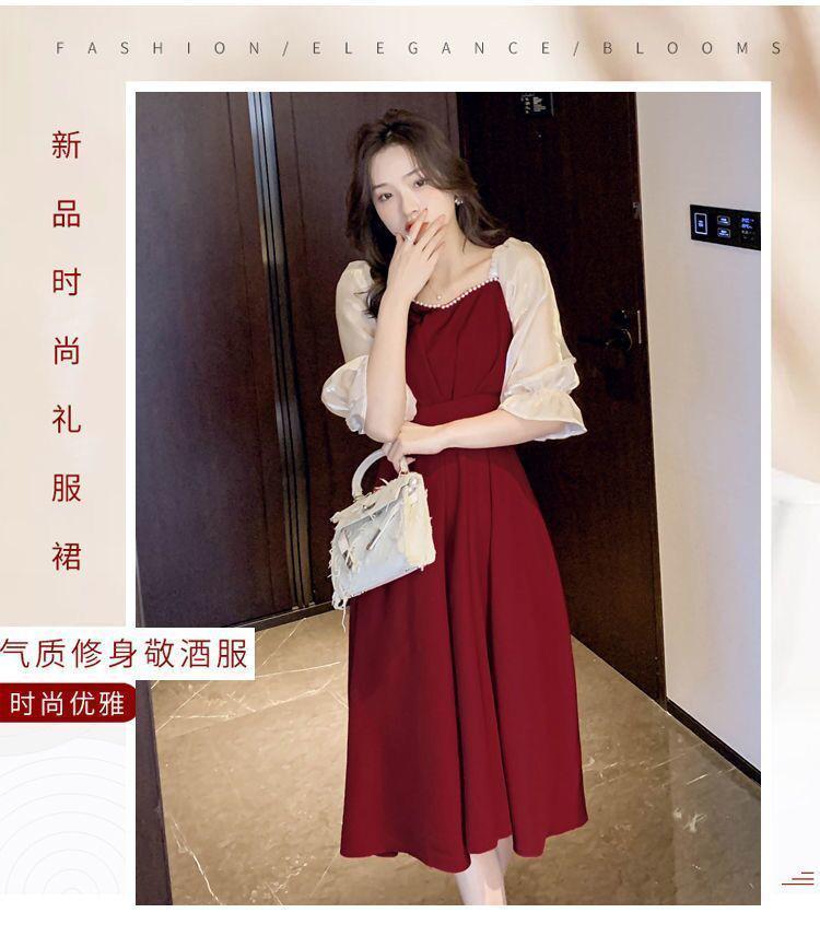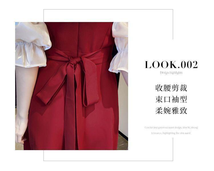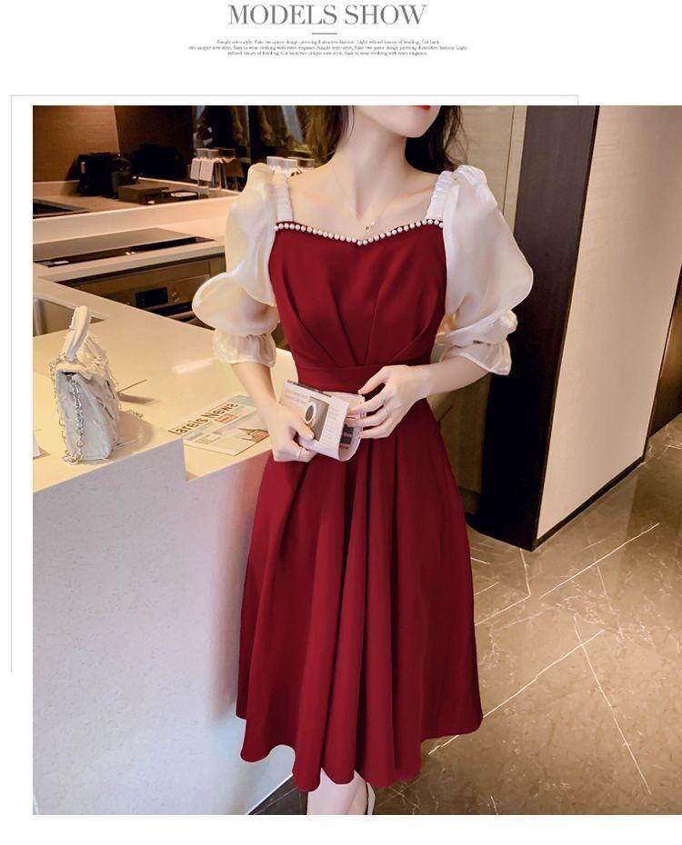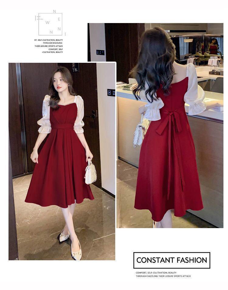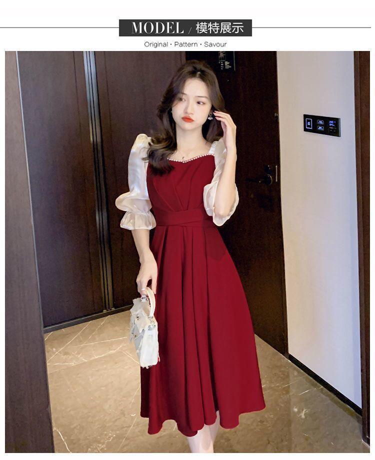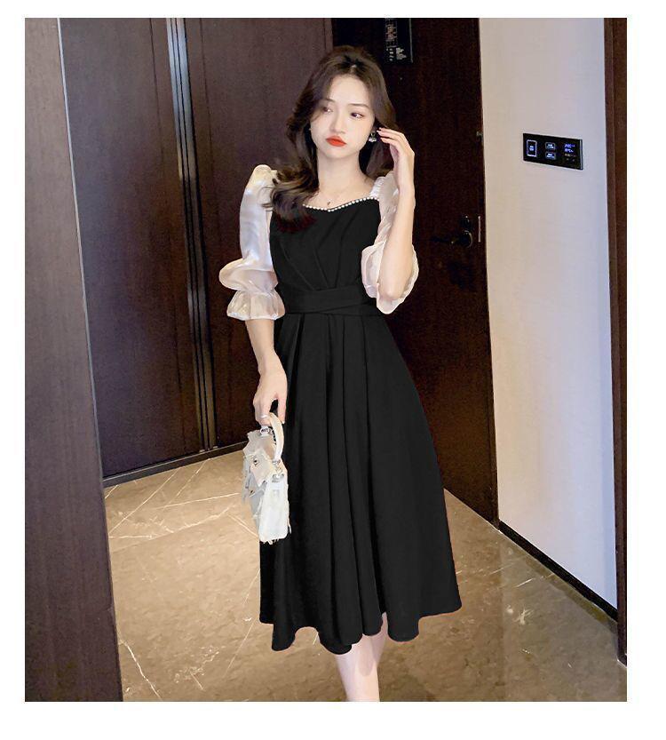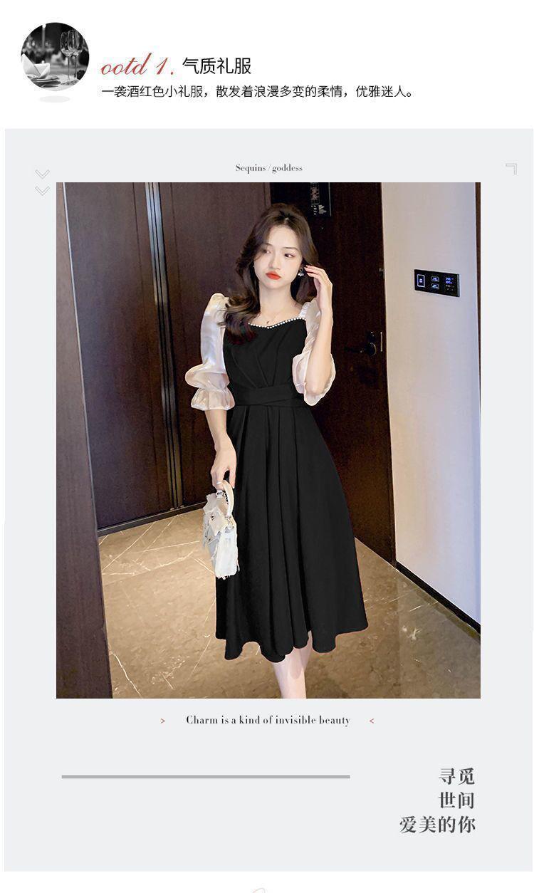 大码五分袖连衣裙2024新款系带胖mm显瘦遮肉法式方领长款拼接裙子
