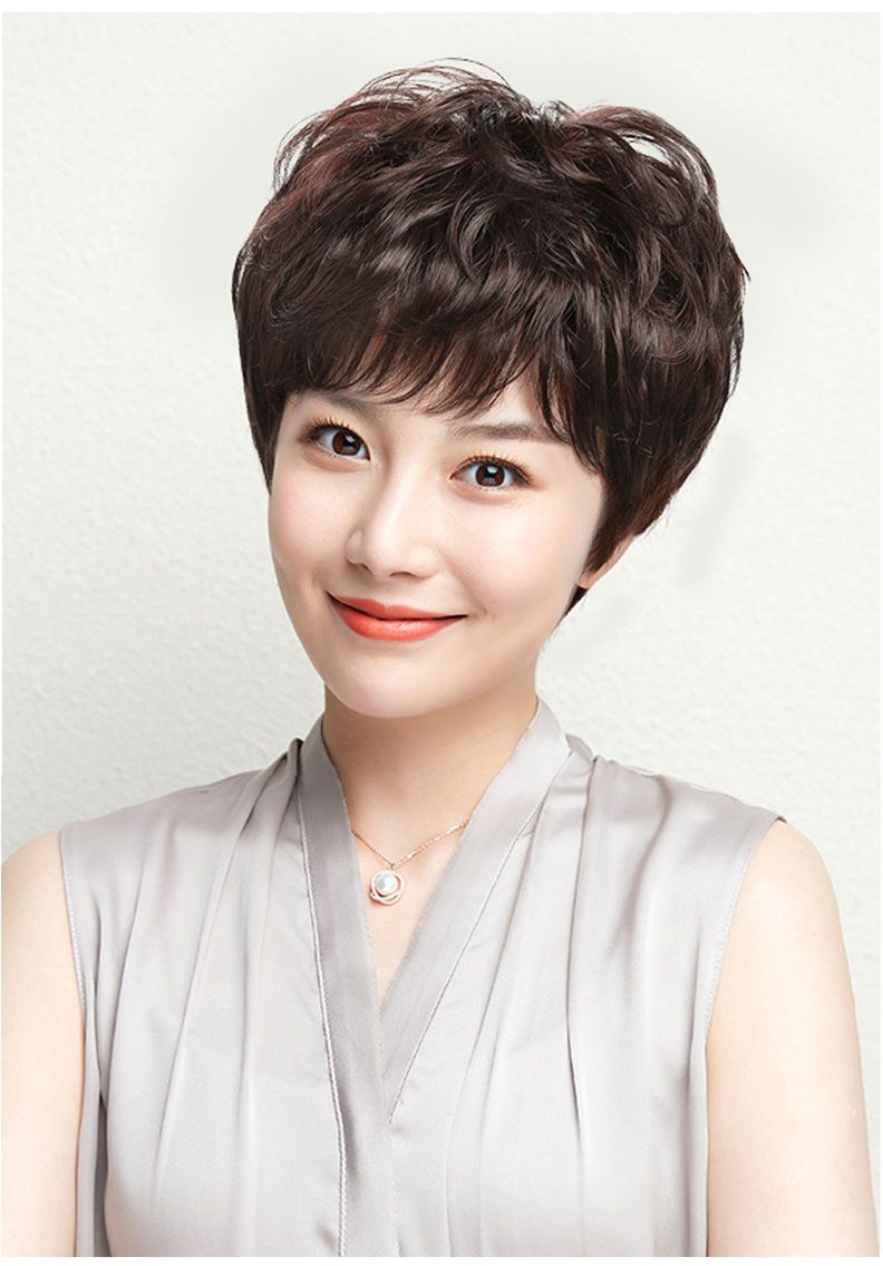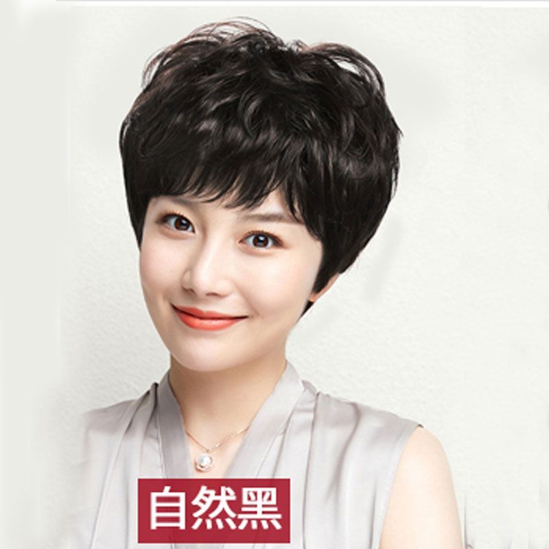 假发女全头套短卷发超自然整顶中老年短发真头发遮白发40到50岁60