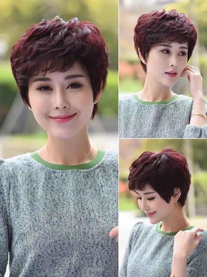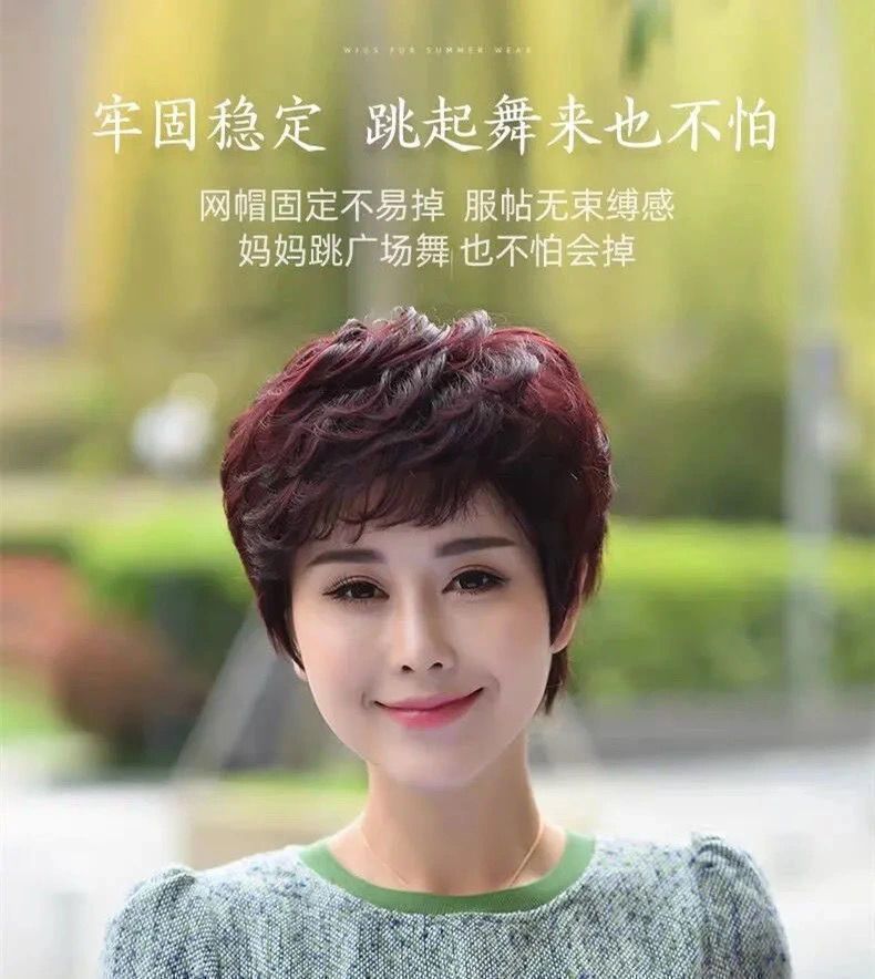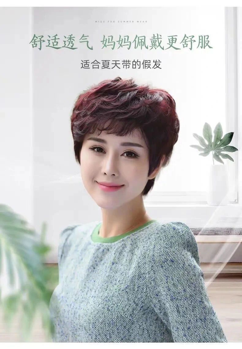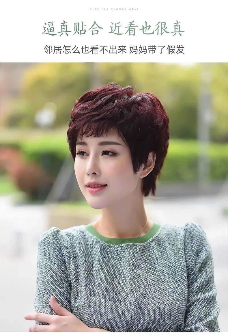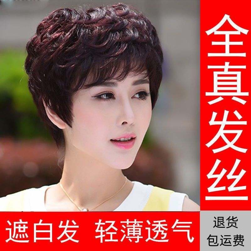假发女短发短卷发真发中老年蓬松自然真人发丝妈妈时尚全cos真发