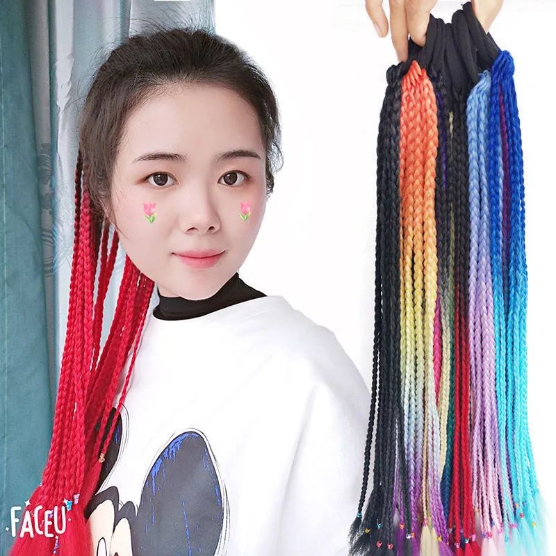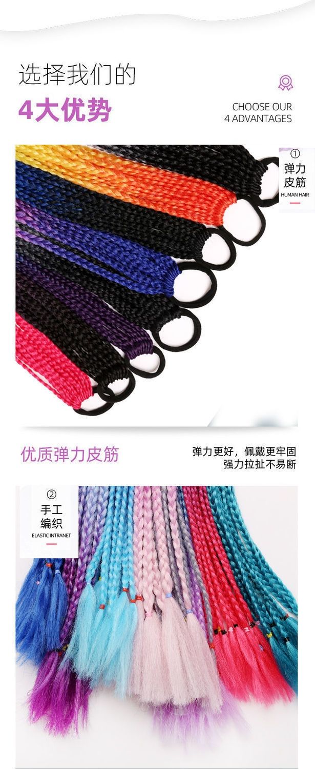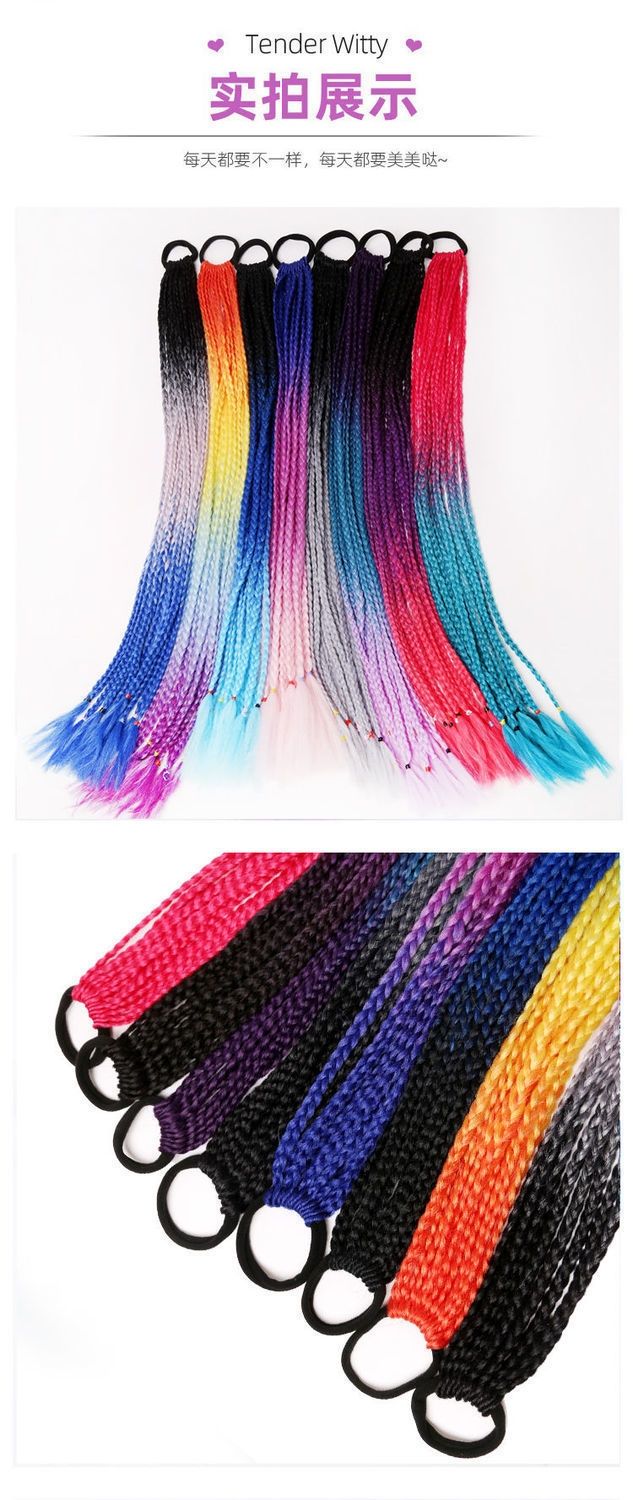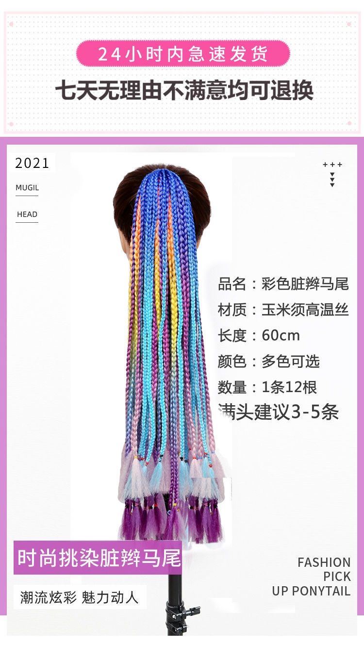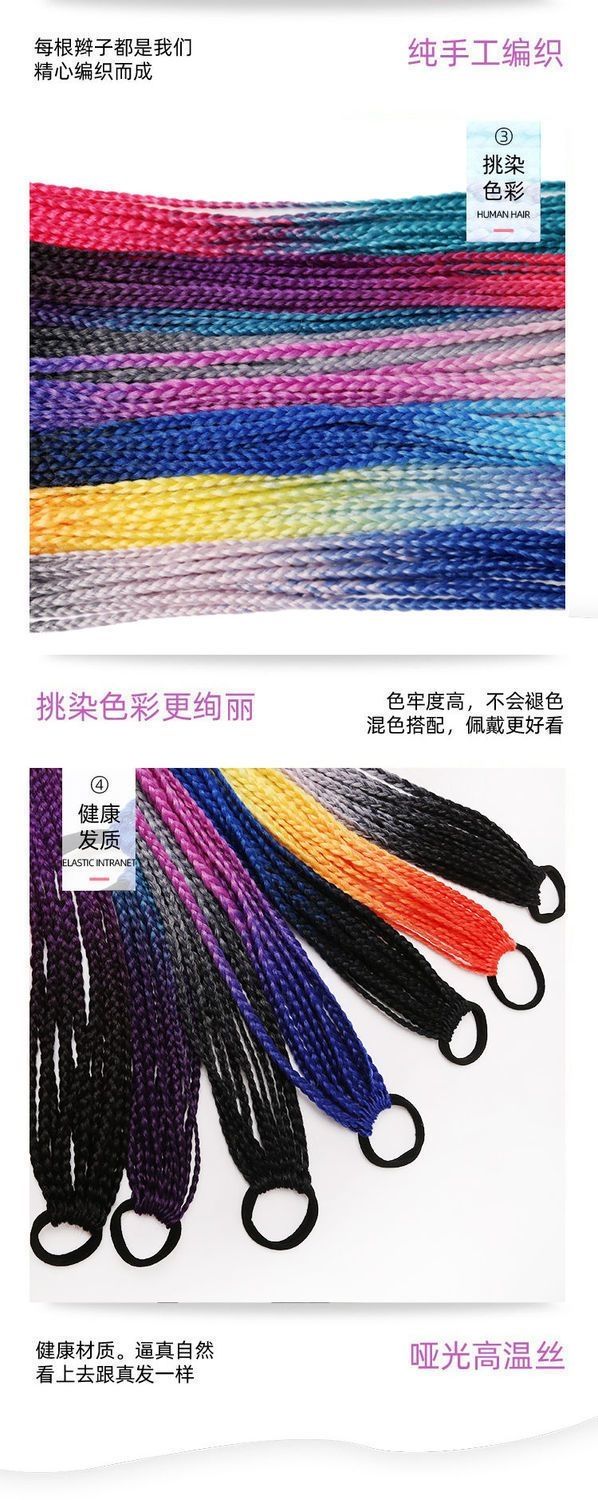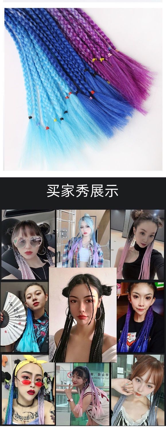 辫子假发女长发彩色小辫子嘻哈麻花渐变色民族风三股欧美脏辫马尾