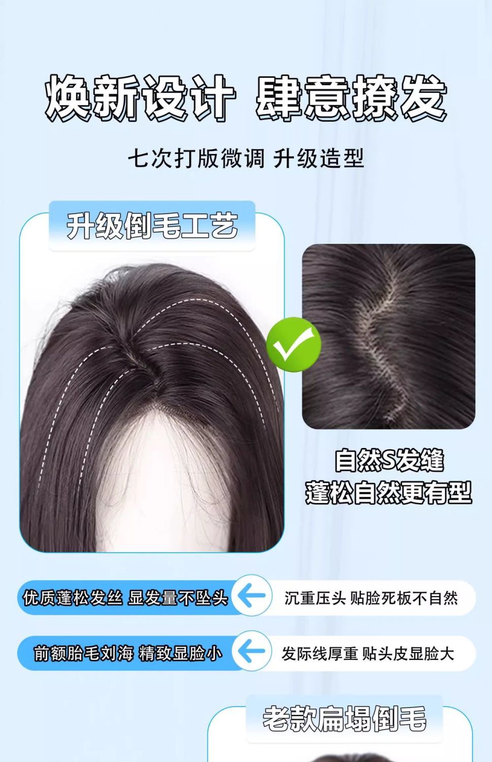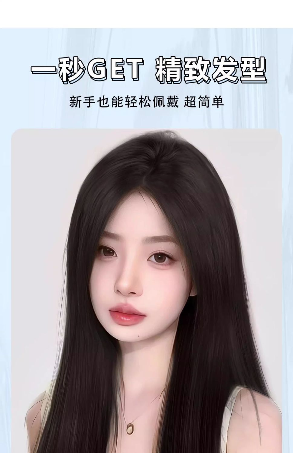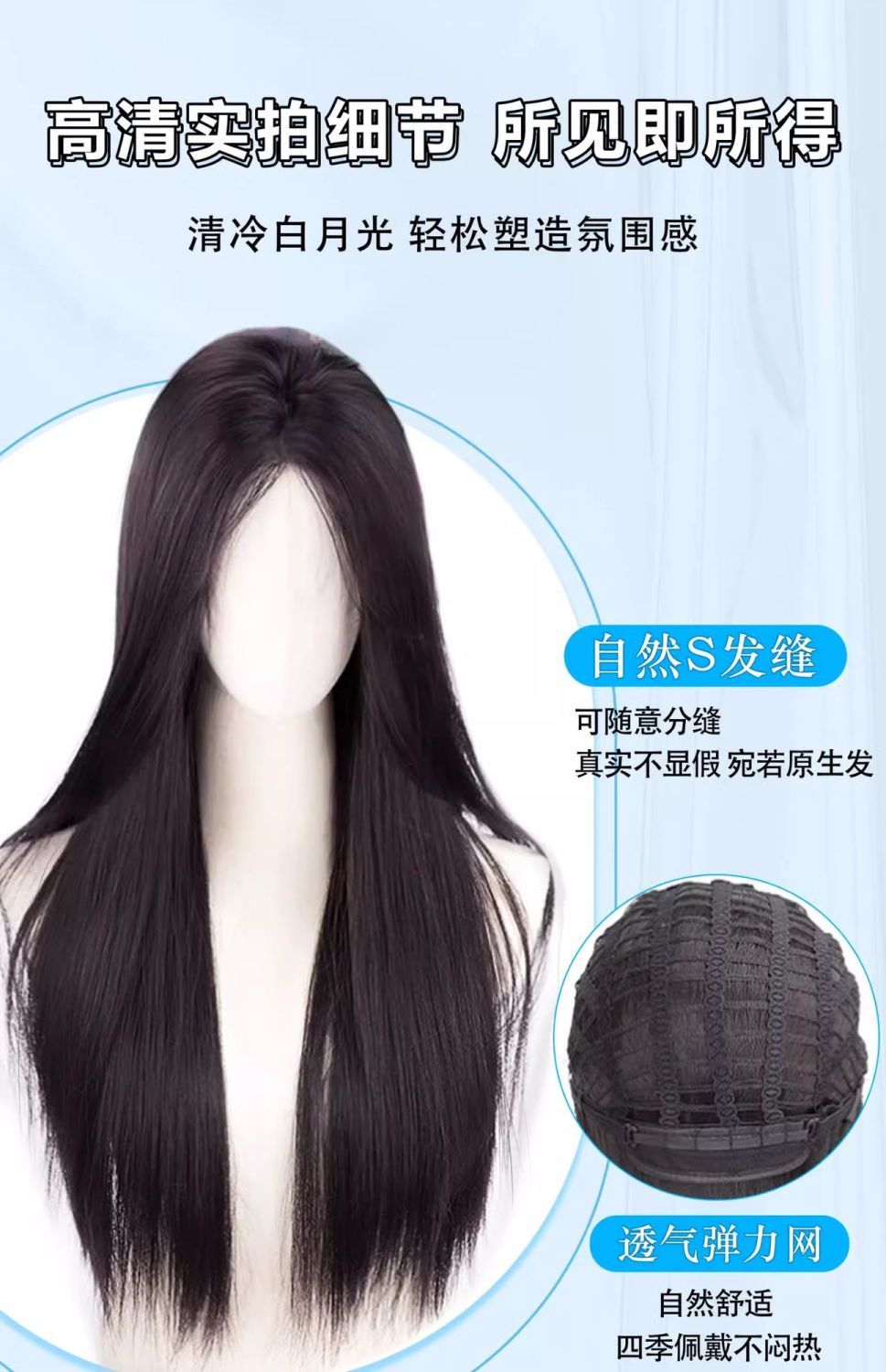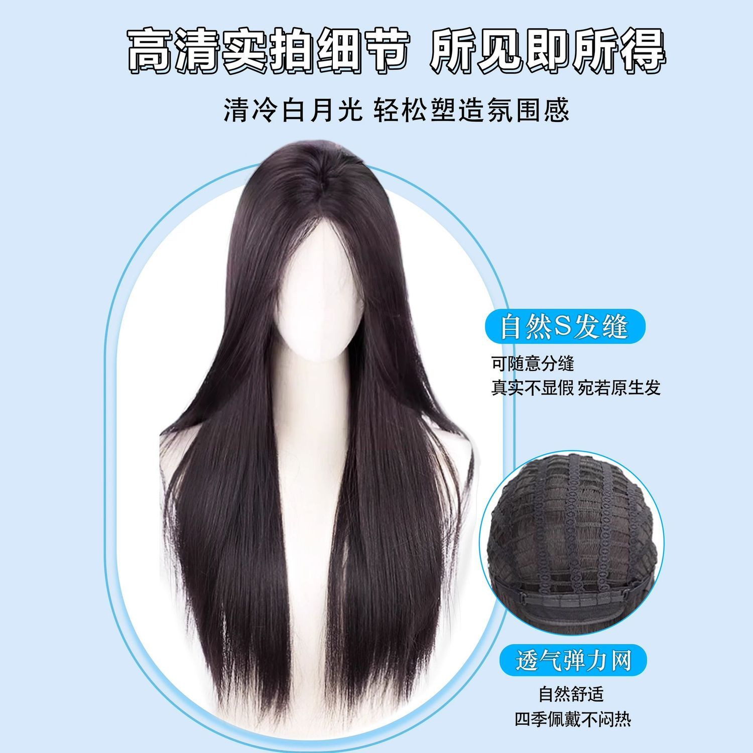 全头套女黑长直发自然减龄仿真发时尚新款四季头顶中分整顶假头套