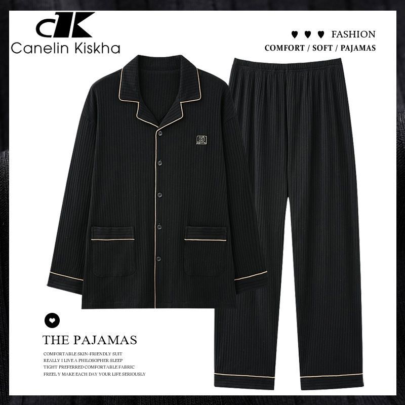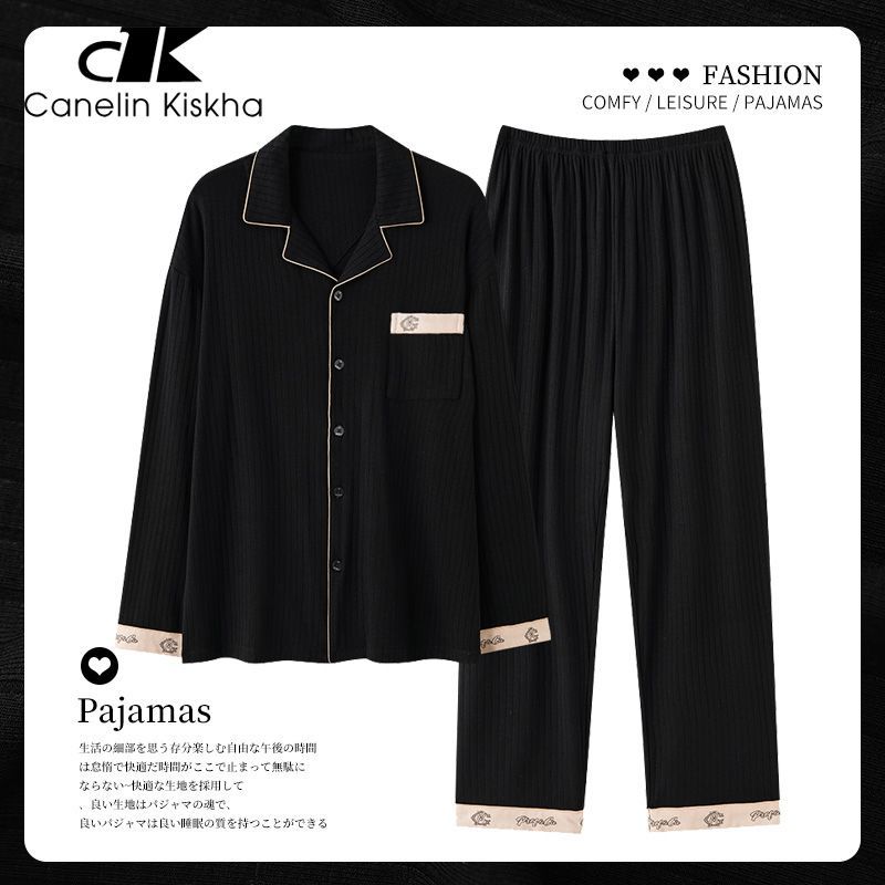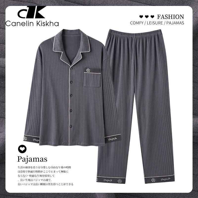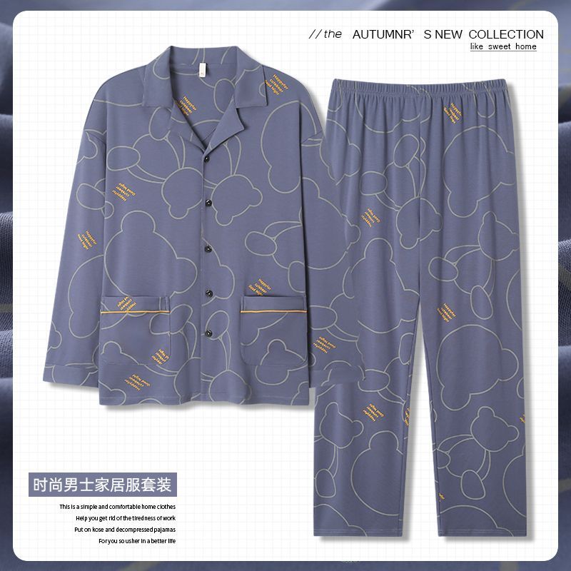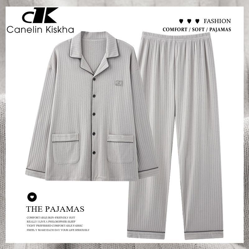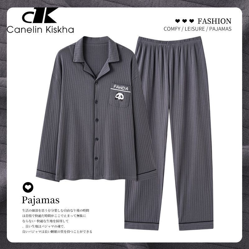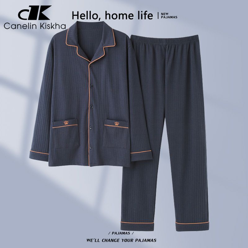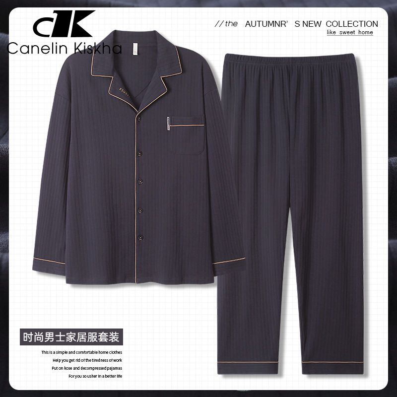 CanelinKiskha纯棉长袖睡衣男士秋季大码男款休闲秋冬家居服套装