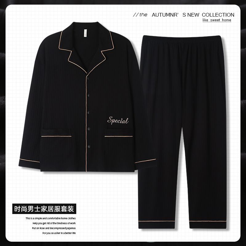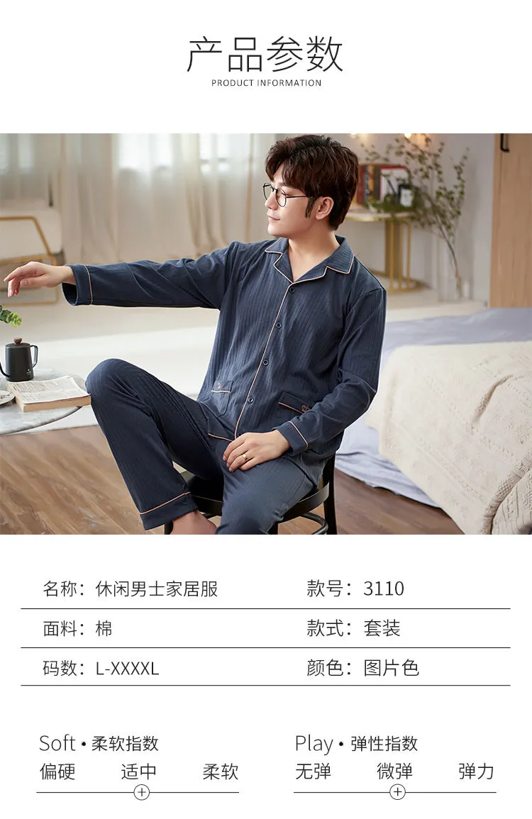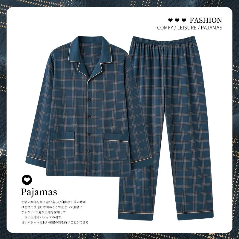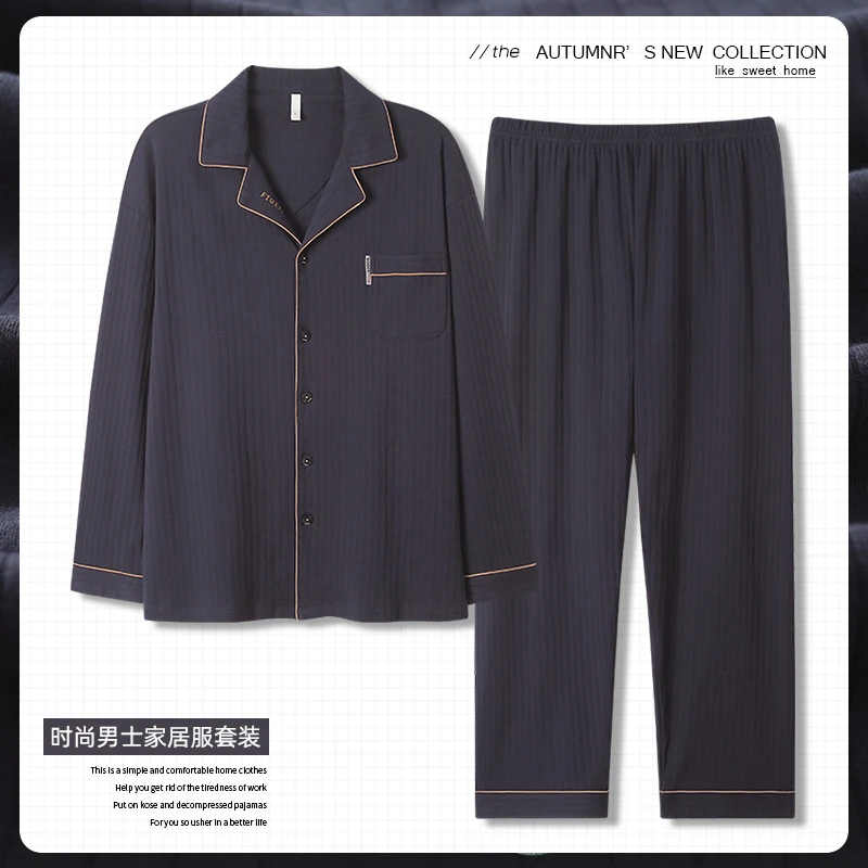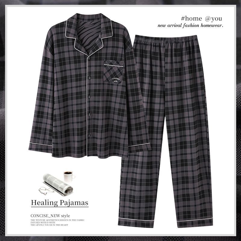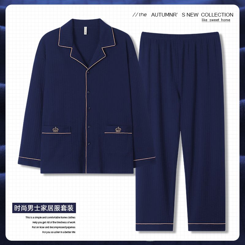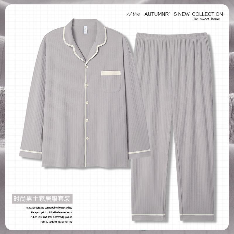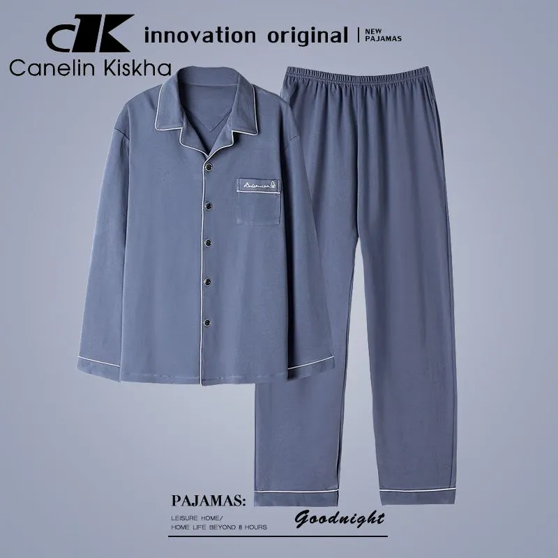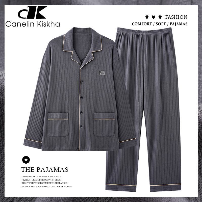 CanelinKiskha纯棉长袖睡衣男士秋季大码男款休闲秋冬家居服套装