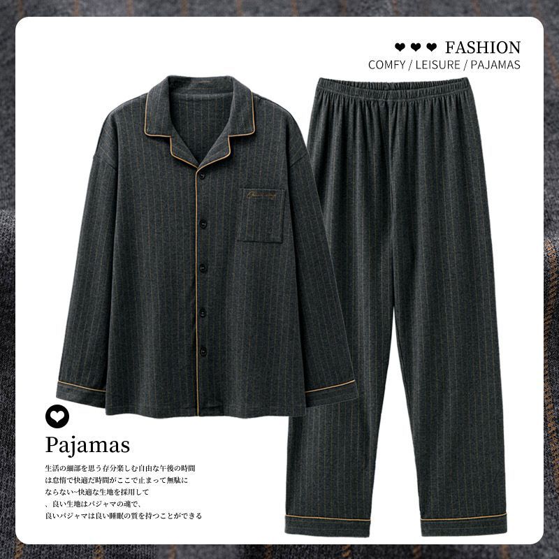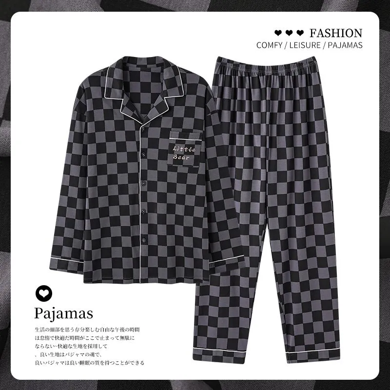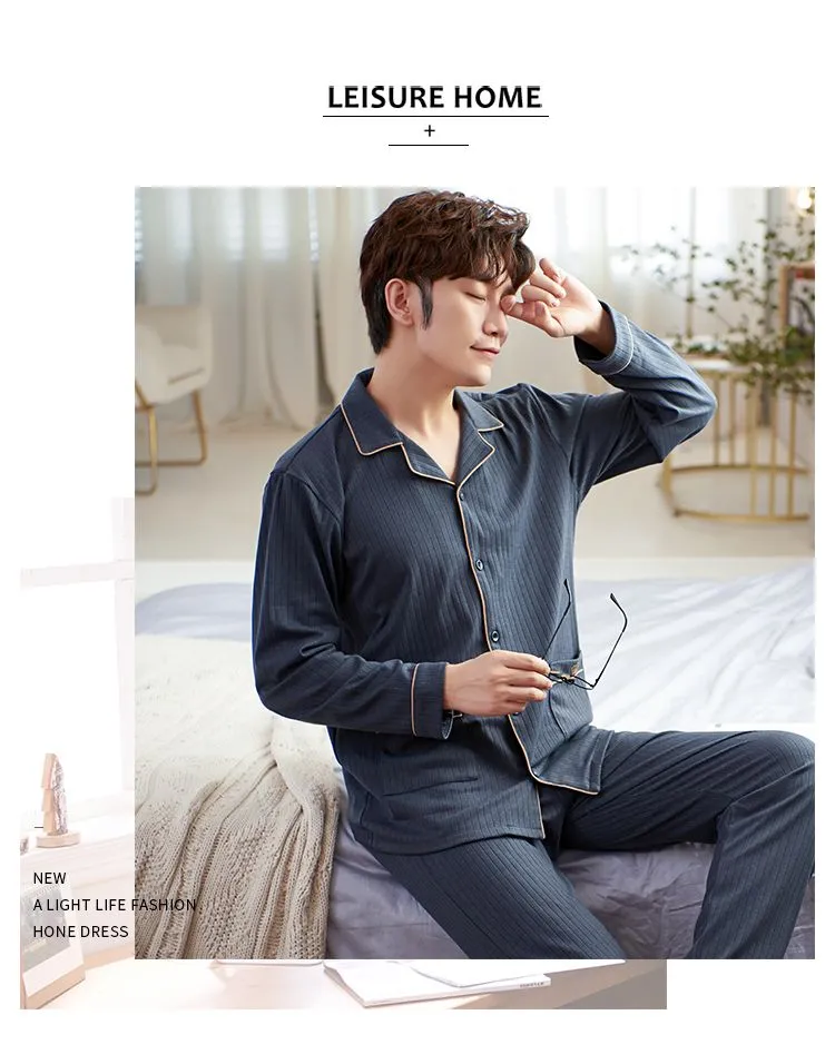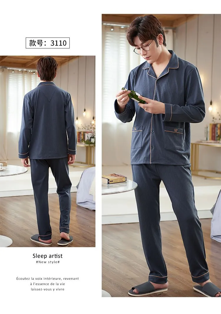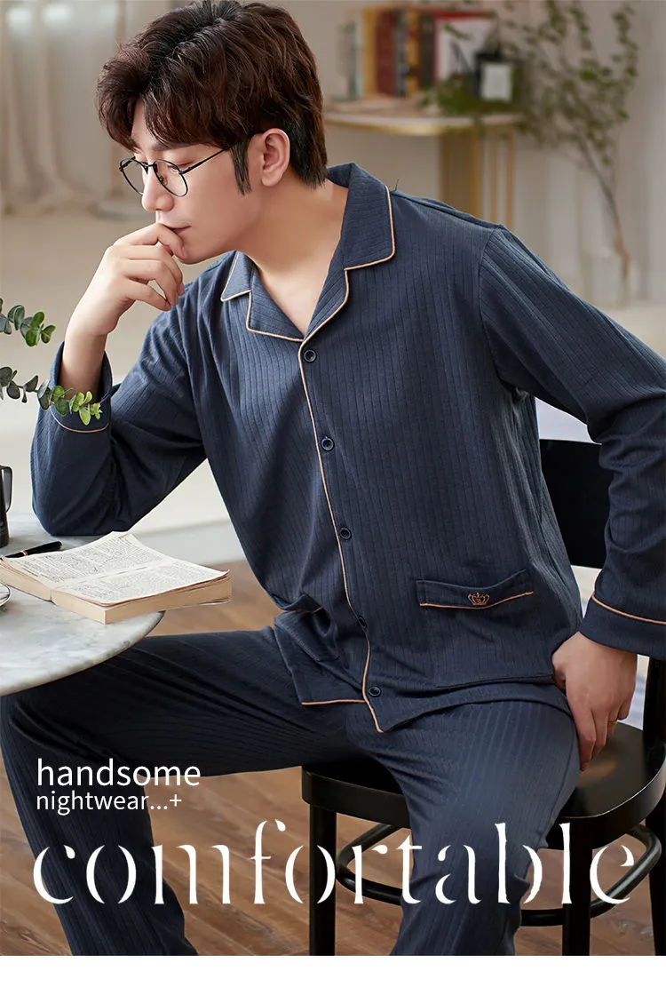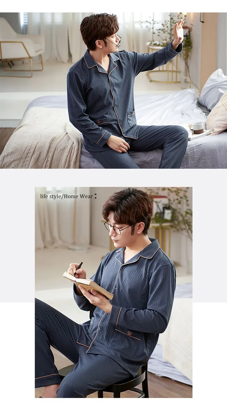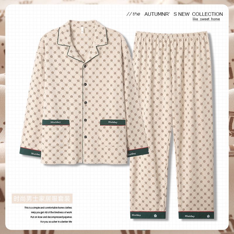 CanelinKiskha纯棉长袖睡衣男士秋季大码男款休闲秋冬家居服套装