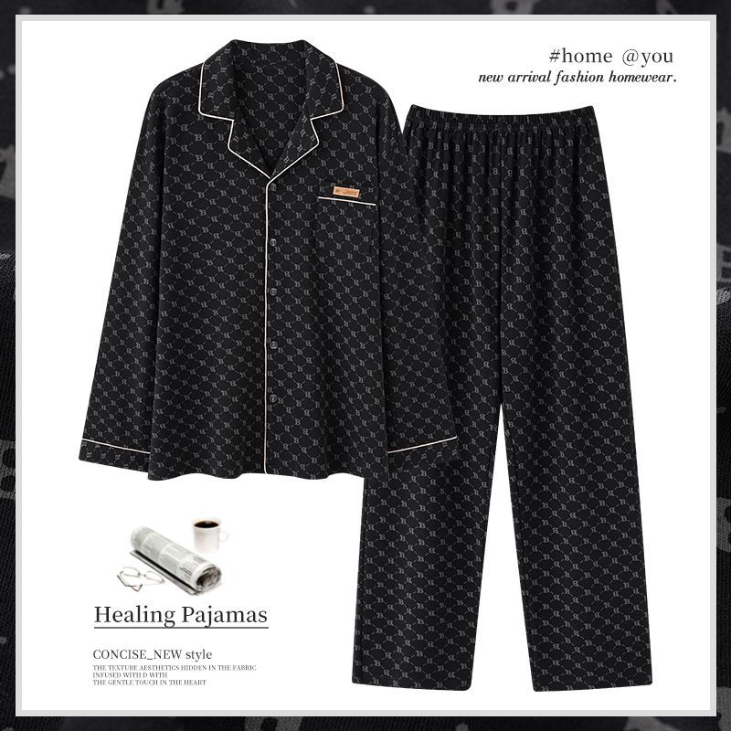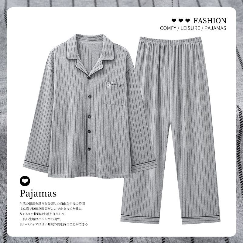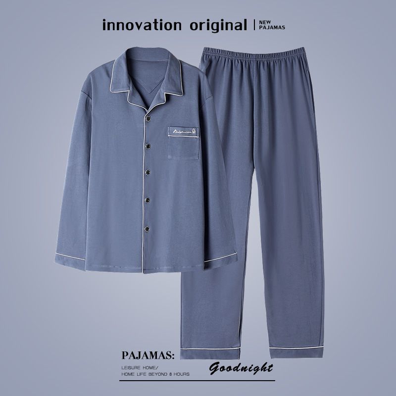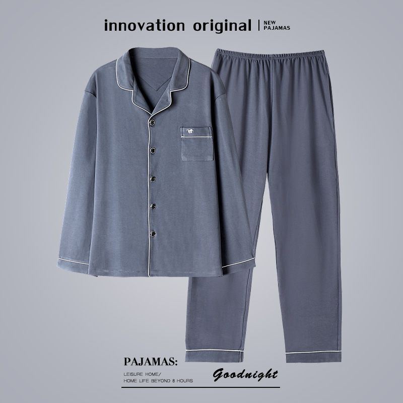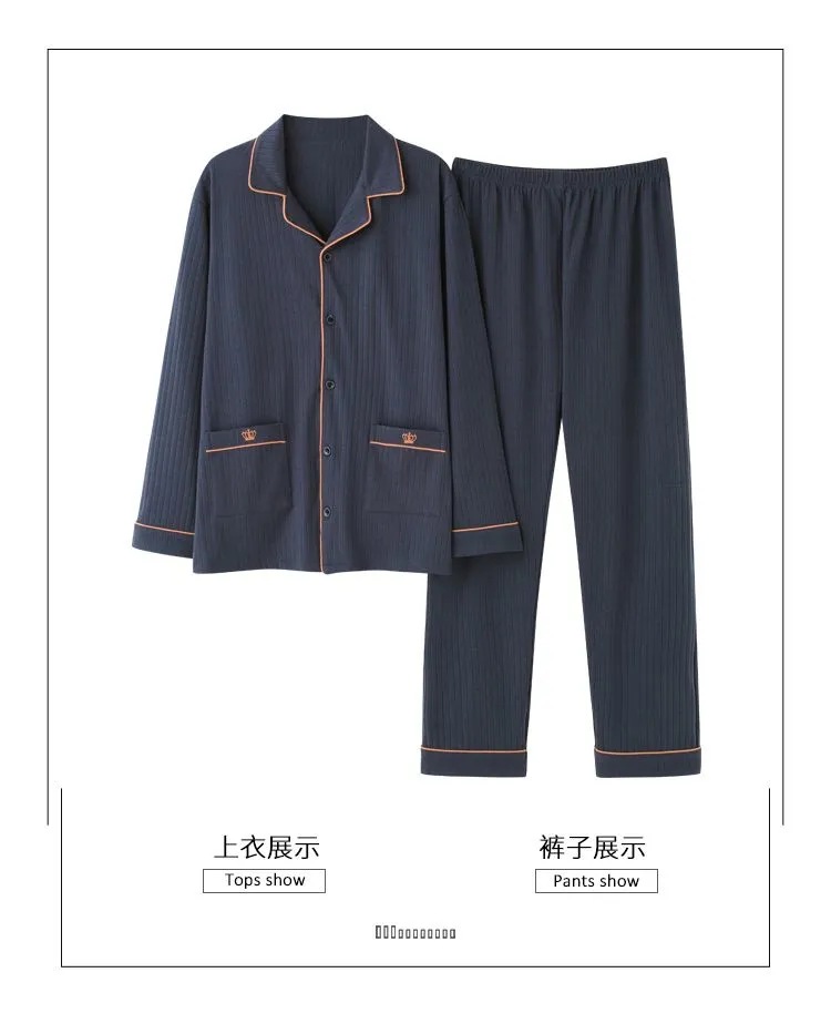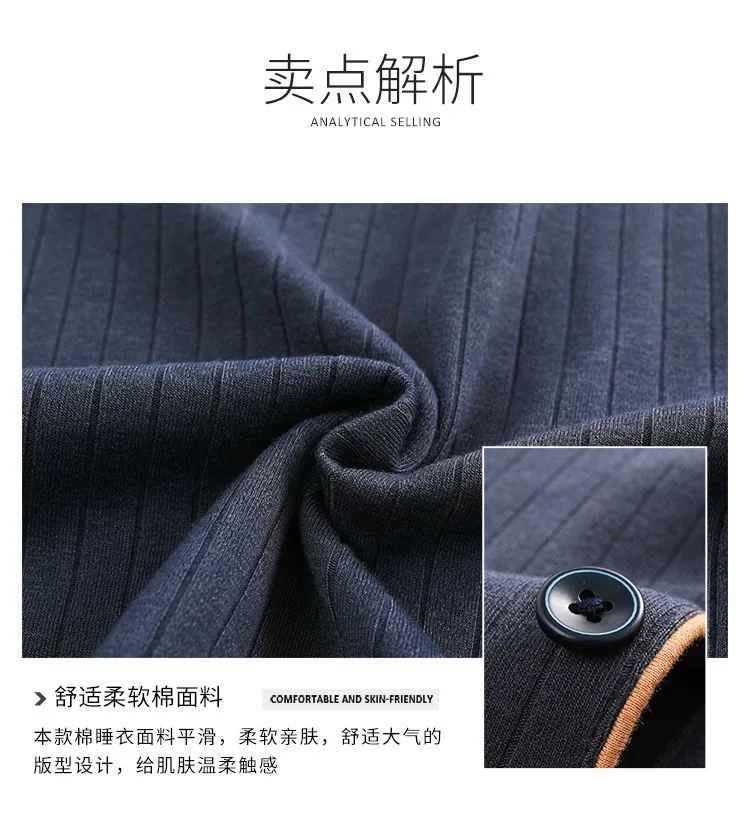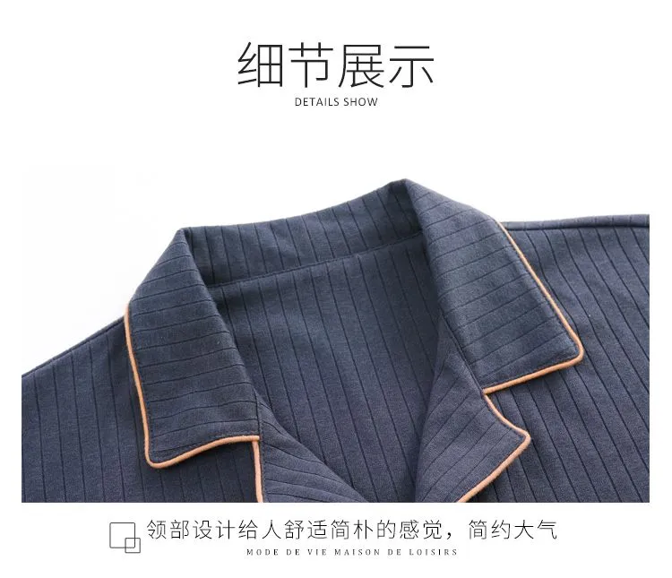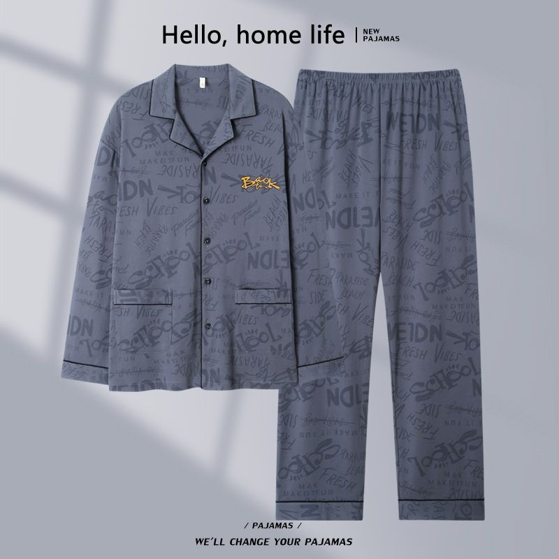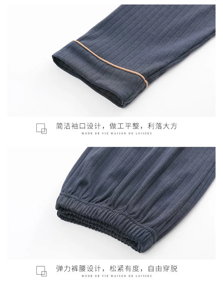 CanelinKiskha纯棉长袖睡衣男士秋季大码男款休闲秋冬家居服套装