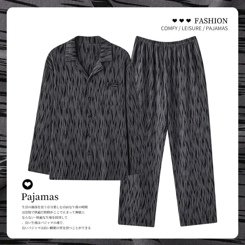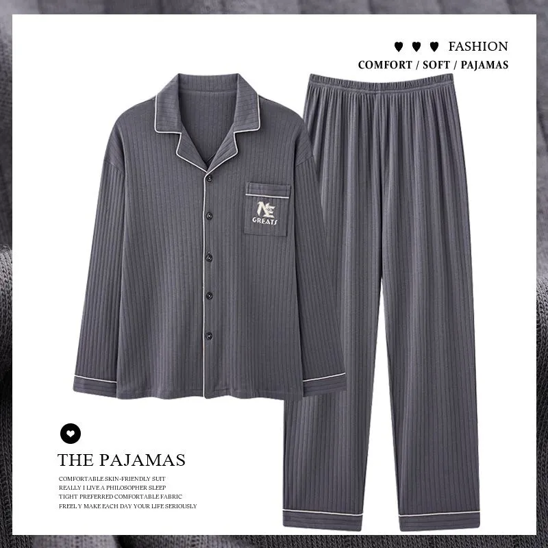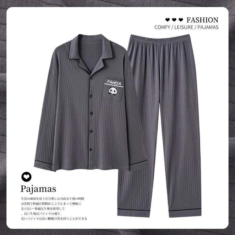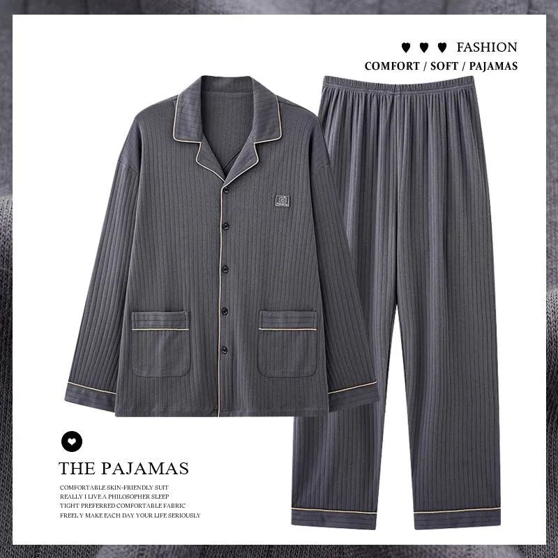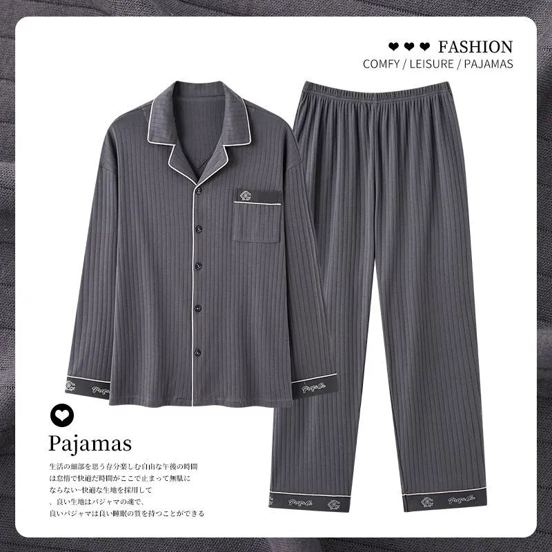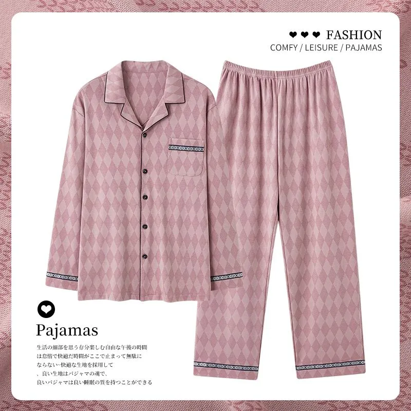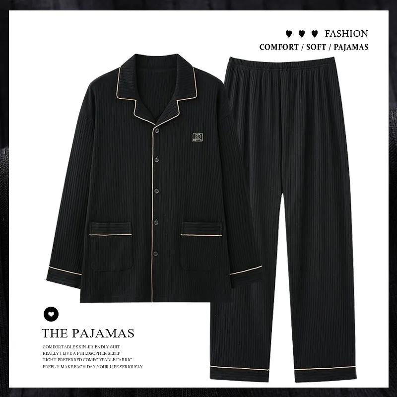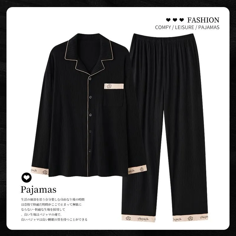 CanelinKiskha纯棉长袖睡衣男士秋季大码男款休闲秋冬家居服套装