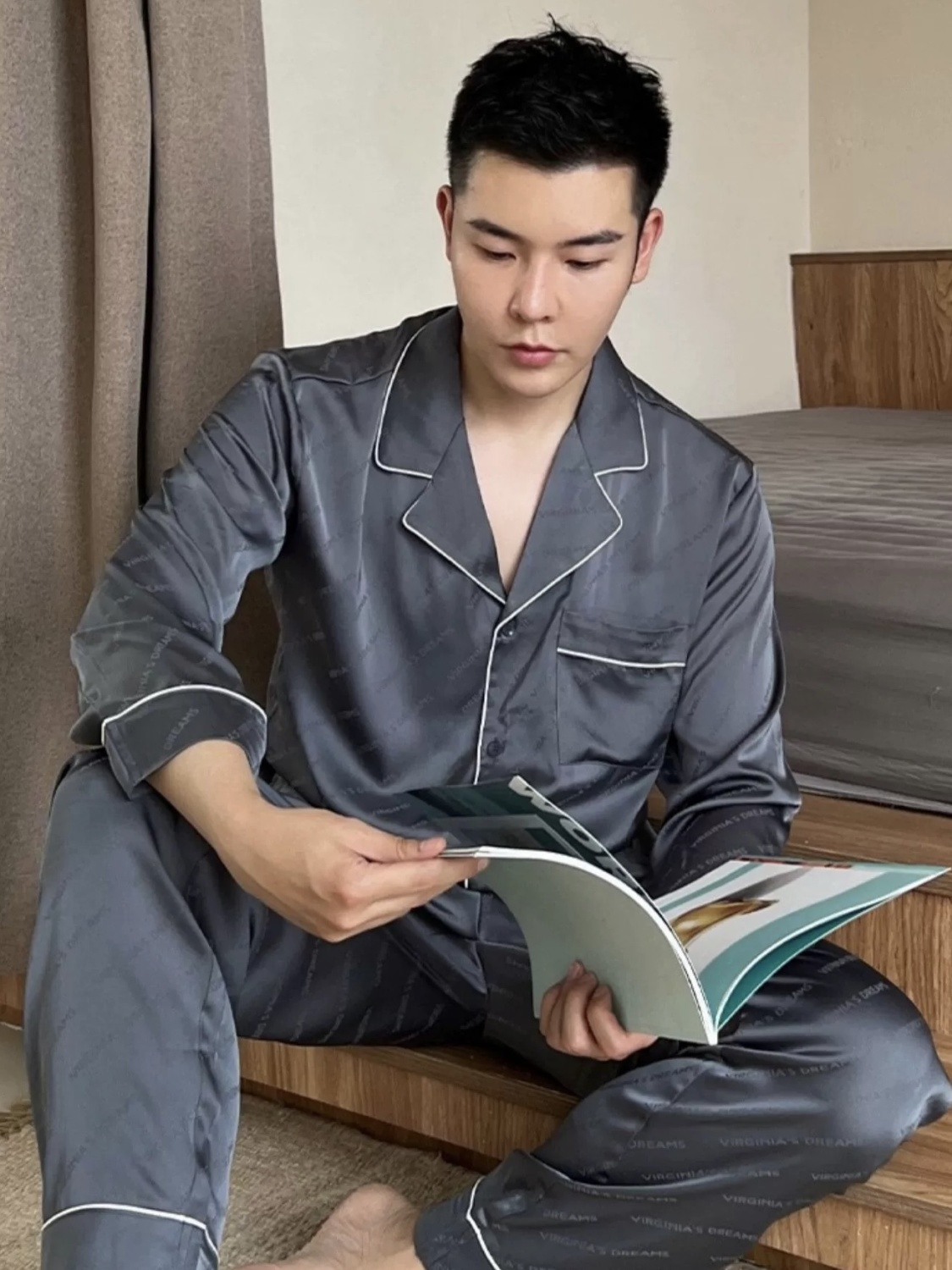 冰丝睡衣男新款春秋季长袖长裤男士薄款宽松大码青少年家居服套装